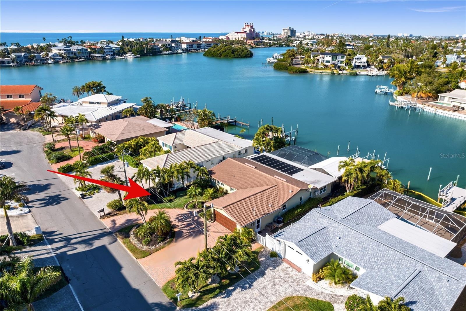 Welcome to the pinnacle of waterfront living on Vina Del Mar Island—graciously positioned on one of the island’s most coveted streets with sweeping water views toward the iconic Don CeSar Hotel. This exceptional 3-bedroom, 2-bath residence captures the essence of relaxed coastal luxury and timeless Florida charm. Inside, generously proportioned bedrooms, abundant closet space, beautifully appointed baths, and seamless bamboo flooring create an inviting and comfortable retreat. Floor-to-ceiling windows frame one of the most captivating waterfront vistas on the island, filling the home with natural light and an ever-changing coastal backdrop. The open, airy layout is ideal for hosting everything from intimate dinner parties to lively family gatherings, complemented by ample guest parking and effortless indoor-outdoor flow—perfect for creating lifelong memories. Step outside to your private tropical oasis, where expansive outdoor living space invites morning coffee by the water, sunset cocktails, and evenings under the stars. Adding to its appeal is a rare advantage seldom found on the barrier islands—an exceptional combination of location, lifestyle, and elevation. Just moments away, Historic Pass-a-Grille offers irresistible charm with boutique shops, waterfront restaurants happy to prepare your fresh catch, and a warm, welcoming community vibe. This golf-cart-friendly neighborhood places white sandy beaches, the Gulf inlet, and island living at your fingertips. Location. Location. Elevation. With easy access to Downtown St. Petersburg for world-renowned museums, vibrant dining, and sporting events—and only 30 minutes to Tampa International Airport—this is a once-in-a-lifetime opportunity to own one of the most enviable waterfront homes on Vina Del Mar Island.