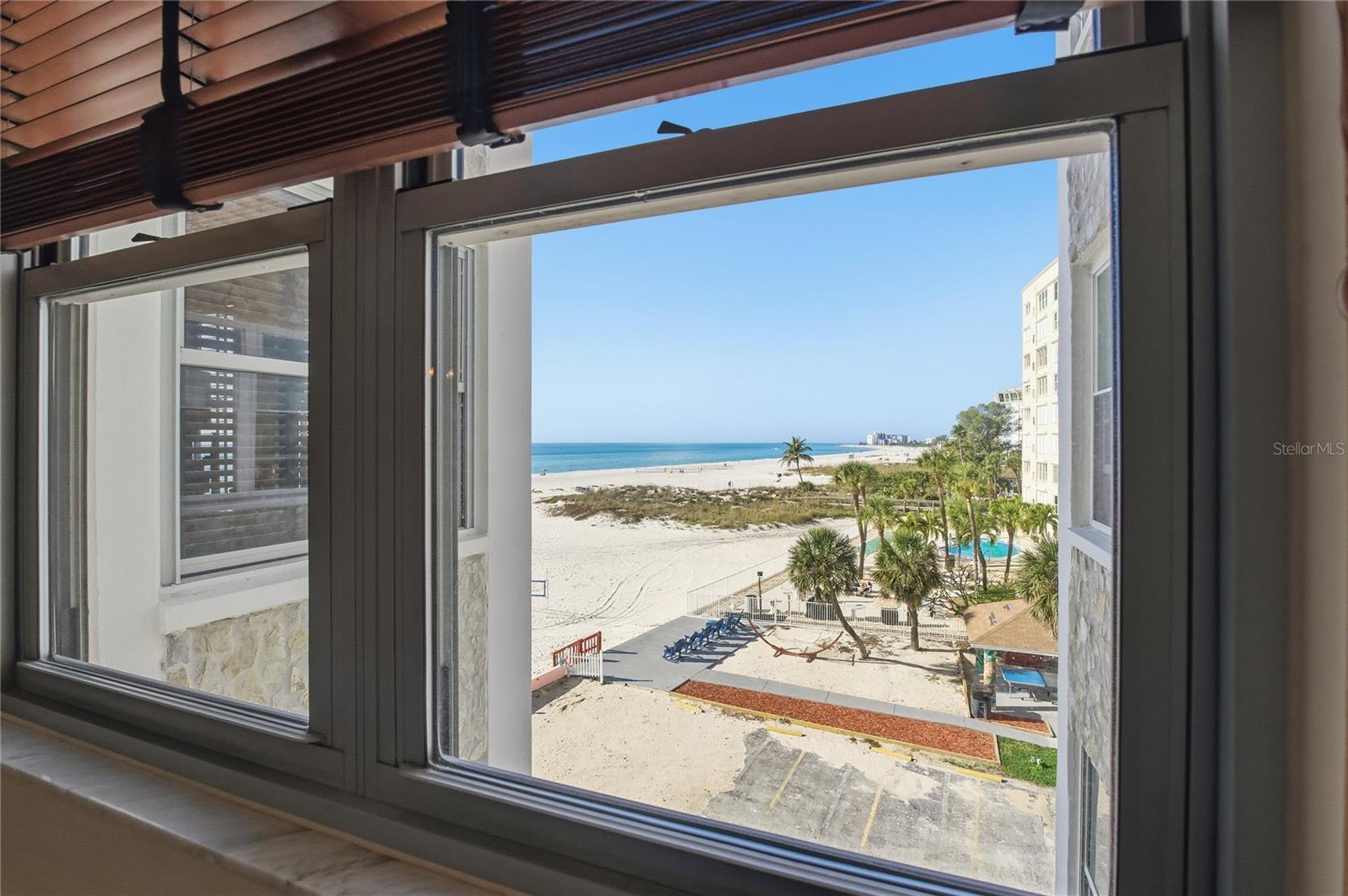 Wake up to breathtaking Gulf views in this beautiful fully furnished 2-bedroom, 2-bath 4th-floor corner residence located in the highly desirable Beau Monde condominium, directly on the sugar-white sands of St. Pete Beach. Offering 1,340 square feet of light-filled living space, this residence is bright, airy, and designed to showcase stunning water views, and comes with the top preferred covered parking space, steps from the secured lobby entrance! The owners have been enjoying this condo as a 2nd home for 50 years, so it's very well taken care of! The spacious living and dining room combination is surrounded by windows, creating a captivating coastal backdrop ideal for relaxing or entertaining. Both bedrooms are generously sized, with the primary suite featuring a lovely water view from your bed, a walk-in closet with custom built-ins, and a beautifully updated en-suite bath. The second bedroom offers excellent flexibility with a convenient Murphy bed setup, perfect for guests or a home office. Recent upgrades include a NEW AC (2025), NEW water heater (2025), and NEW electrical panel for added peace of mind. Beau Monde offers a secure, well-managed lifestyle with a secured lobby, onsite management, and maintenance staff. Residents enjoy impressive indoor common areas, highlighted by a stunning waterfall atrium at the heart of the building. Community amenities include a heated pool, outdoor grilling area, fitness center, clubroom, sauna, tennis courts, and private gated beach access. Current amenity renovations are underway and scheduled for completion by February 2026, further enhancing the community’s appeal. Ideally located within walking distance to grocery stores, boutique shopping, and an excellent selection of restaurants, this prime beachside residence also offers easy interstate access - just 10 minutes to downtown St. Pete and approximately 35 minutes to Tampa. With a 3-month minimum lease policy, this condo presents a fantastic investment opportunity, seasonal retreat, or full-time coastal home. Come live, work, or play by the beach - your waterfront lifestyle awaits.