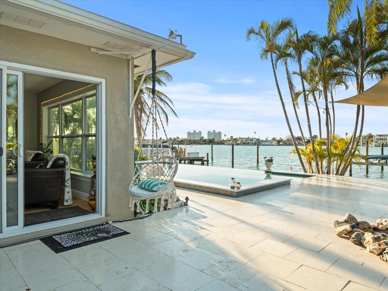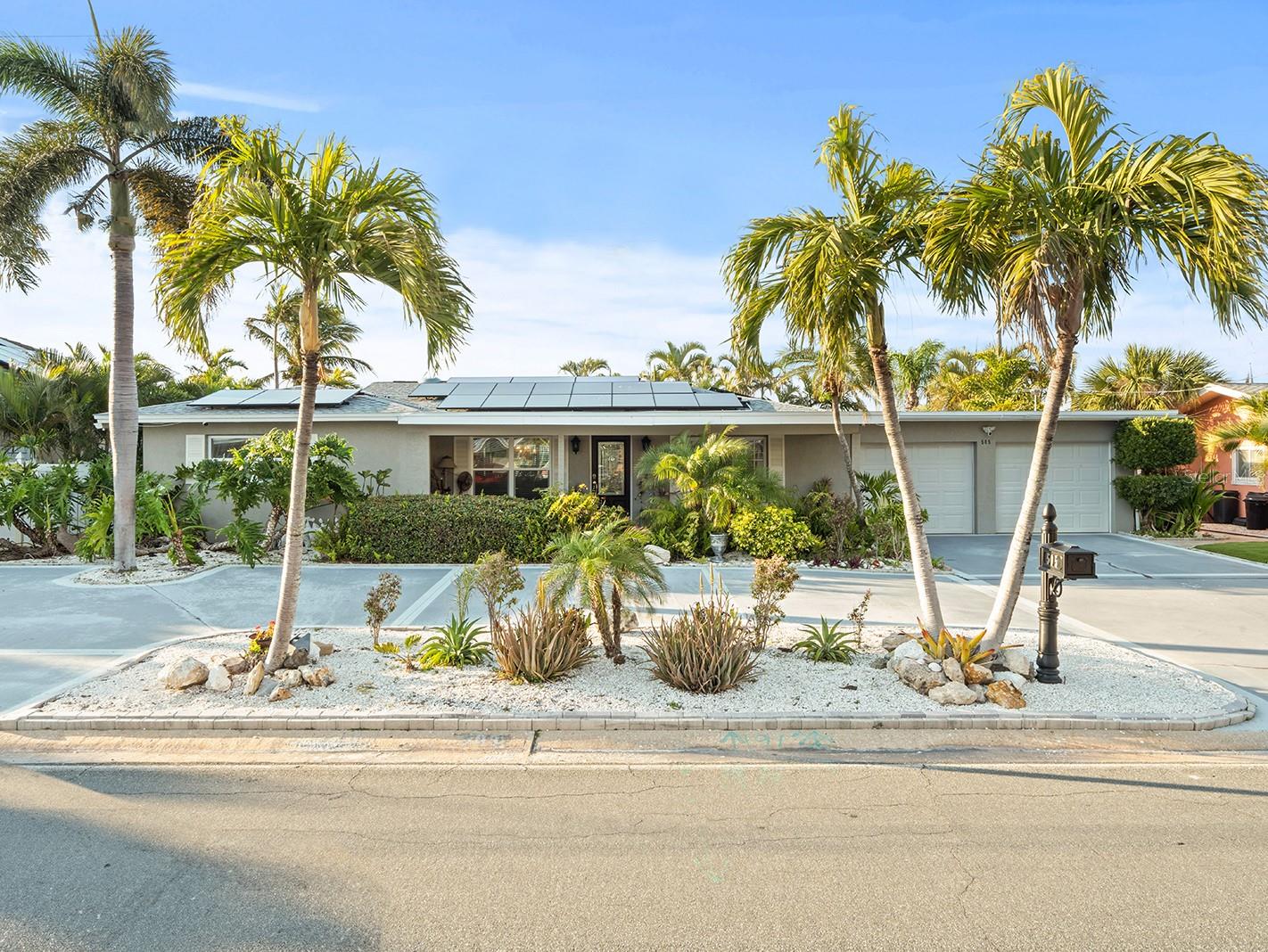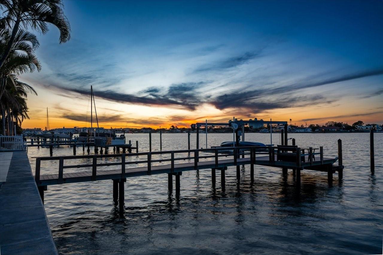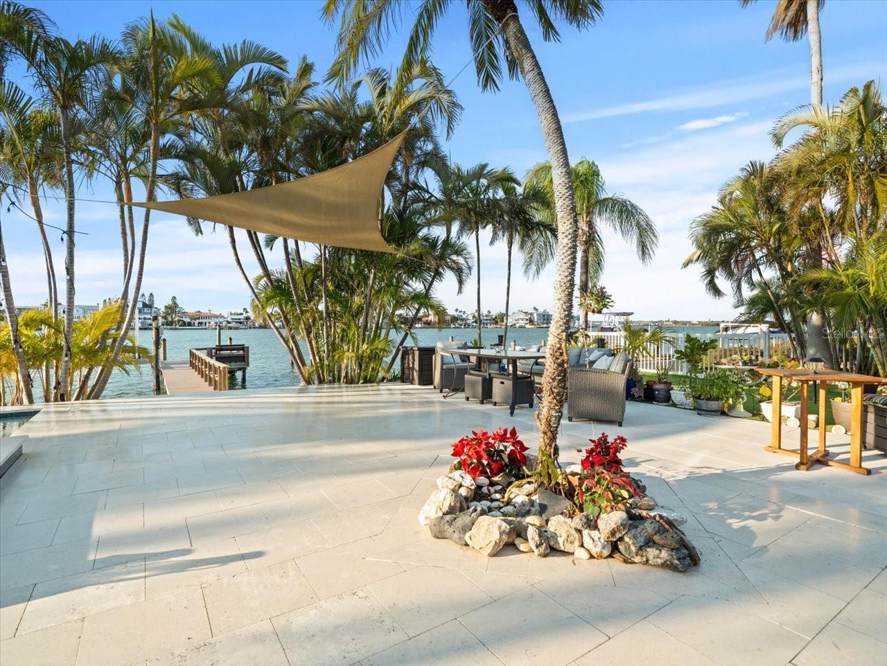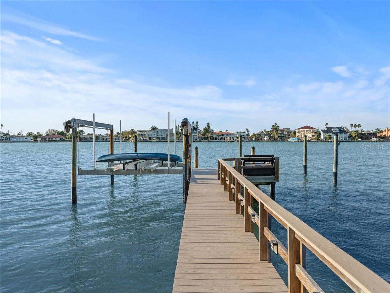 AN INSPIRING LUXURY WATERFRONT LIVING EXPERIENCE LOCATED IN THE HEART OF ST. PETE BEACH! A large circular driveway and lush subtropical landscaping introduce a wide and welcoming covered entry. Elegant wide-plank wood flooring, a wonderful array of skylights that deliver plenty of natural light, and spectacular water views visible across a rich open floor plan will assure an unforgettable living experience. The sumptuous and open chef’s kitchen features elegant white shaker-style cabinetry, fine granite surfaces, gorgeous small-tile blue backsplash, quality stainless steel appliances, an island prep center, and separate breakfast bar. An impressive great room concept integrates dining, living and kitchen areas in a way that maximizes your water views. Spacious owner’s suite boasts superb waterviews and a dazzling bath with dual vanities, coastal-modern wood cabinetry, quartz surfaces and a terrific walk-in glass rain-shower enclosure. 2nd and 3rd bedrooms are beautifully finished and the guest bath is luxurious in its appointments. The laundry facility is well-done, providing generous storage. Out back you’ll discover a captivating vision of paradise on the water! Luxury paver decking is tightly integrated with well-placed palm landscaping in a manner that calls you to the waterfront. Not to be outdone, is the absolutely stunning Pebbletec infinity pool & spa with lounging sun-shelf. By day, your pool seemingly disappears into the waterway; by early evening, radiant LED lighting produces a remarkable intimacy with sunsetting skies across the horizon. Separately, the rear yard offers substantial multi-purpose green space, an updated seawall, newer deep water composite dock, a 16,000 lb boat lift, and tie poles for a cruiser/sailboat – from here, you’re 15 minutes to the Gulf by Boat. The home’s many updates/upgrades include its kitchen and baths, its infinity pool/spa, solar electric panels (significantly lowering electric bills), newer windows and newer roof. The best of boating and the beach, with just a 5-minute walk to the nationally acclaimed powdersoft sands of St. Pete Beach. Situated in highly-desired Brightwater Beach Estates (where all the homes are on the water), you’ll find shopping, dining and entertainment are within easy walking distance. Close to downtown St. Petersburg (15-minute drive) and just 30 minutes to Tampa Airport. This is an extraordinary value in a superb waterfront location. Buyer to verify room dimensions.