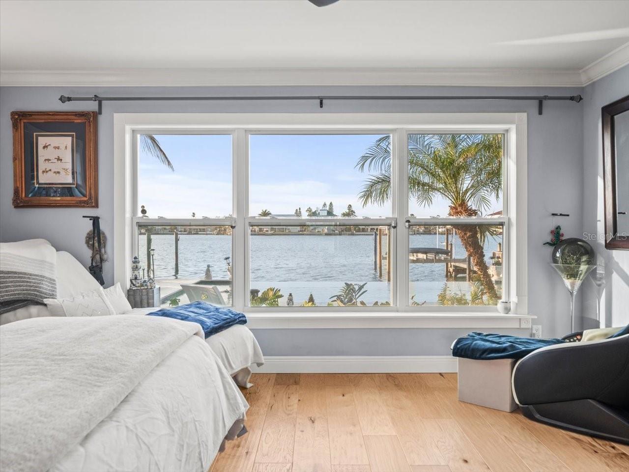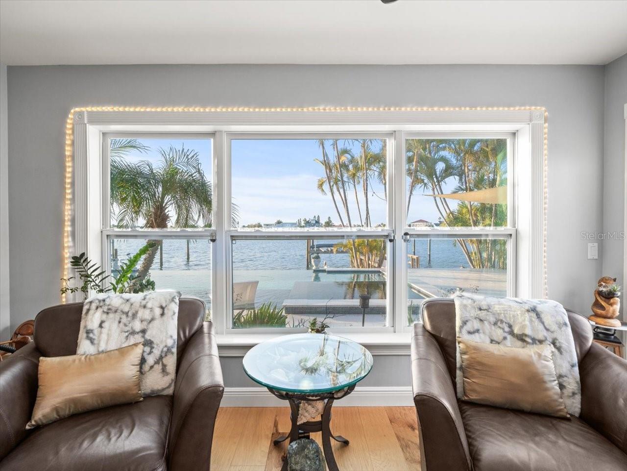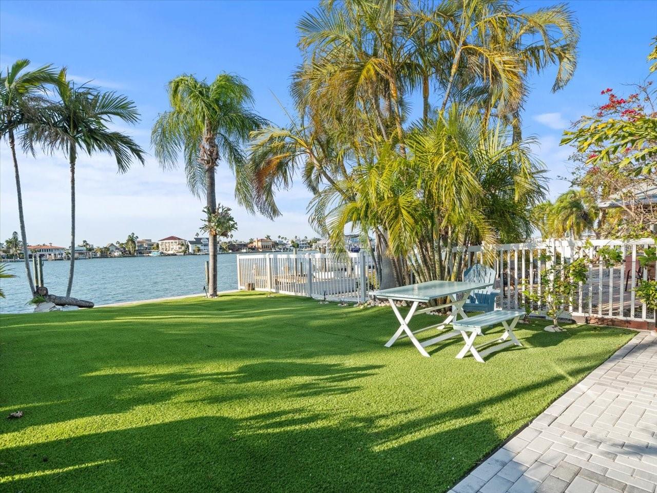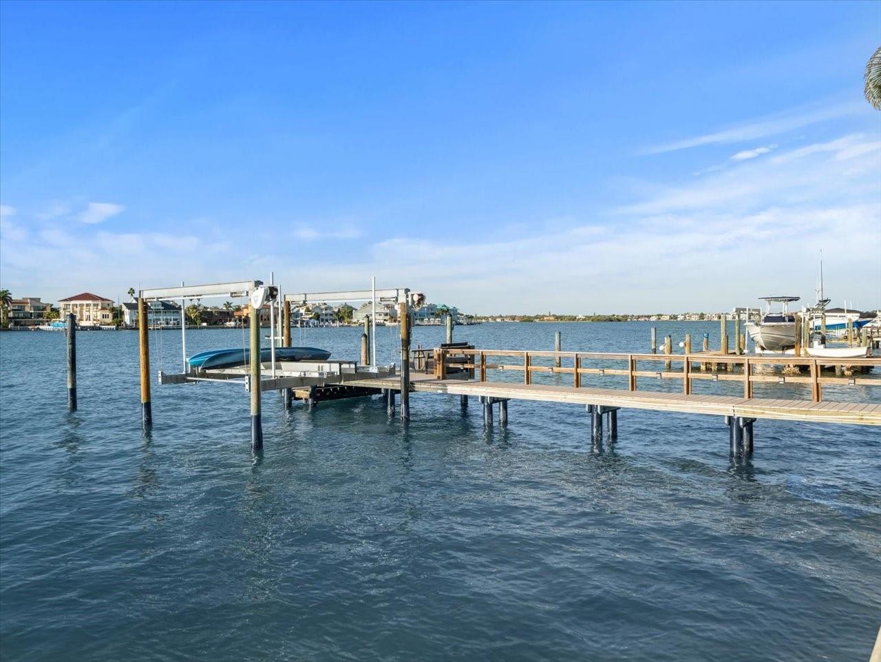 AN INSPIRING LUXURY WATERFRONT LIVING EXPERIENCE LOCATED IN THE HEART OF ST. PETE BEACH! A large circular driveway and lush subtropical landscaping introduce a wide and welcoming covered entry. Elegant wide-plank wood flooring, a wonderful array of skylights that deliver plenty of natural light, and spectacular water views visible across a rich open floor plan will assure an unforgettable living experience. The sumptuous and open chef’s kitchen features elegant white shaker-style cabinetry, fine granite surfaces, gorgeous small-tile blue backsplash, quality stainless steel appliances, an island prep center, and separate breakfast bar. An impressive great room concept integrates dining, living and kitchen areas in a way that maximizes your water views. Spacious owner’s suite boasts superb waterviews and a dazzling bath with dual vanities, coastal-modern wood cabinetry, quartz surfaces and a terrific walk-in glass rain-shower enclosure. 2nd and 3rd bedrooms are beautifully finished and the guest bath is luxurious in its appointments. The laundry facility is well-done, providing generous storage. Out back you’ll discover a captivating vision of paradise on the water! Luxury paver decking is tightly integrated with well-placed palm landscaping in a manner that calls you to the waterfront. Not to be outdone, is the absolutely stunning Pebbletec infinity pool & spa with lounging sun-shelf. By day, your pool seemingly disappears into the waterway; by early evening, radiant LED lighting produces a remarkable intimacy with sunsetting skies across the horizon. Separately, the rear yard offers substantial multi-purpose green space, an updated seawall, newer deep water composite dock, a 16,000 lb boat lift, and tie poles for a cruiser/sailboat – from here, you’re 15 minutes to the Gulf by Boat. The home’s many updates/upgrades include its kitchen and baths, its infinity pool/spa, solar electric panels (significantly lowering electric bills), newer windows and newer roof. The best of boating and the beach, with just a 5-minute walk to the nationally acclaimed powdersoft sands of St. Pete Beach. Situated in highly-desired Brightwater Beach Estates (where all the homes are on the water), you’ll find shopping, dining and entertainment are within easy walking distance. Close to downtown St. Petersburg (15-minute drive) and just 30 minutes to Tampa Airport. This is an extraordinary value in a superb waterfront location. Buyer to verify room dimensions.