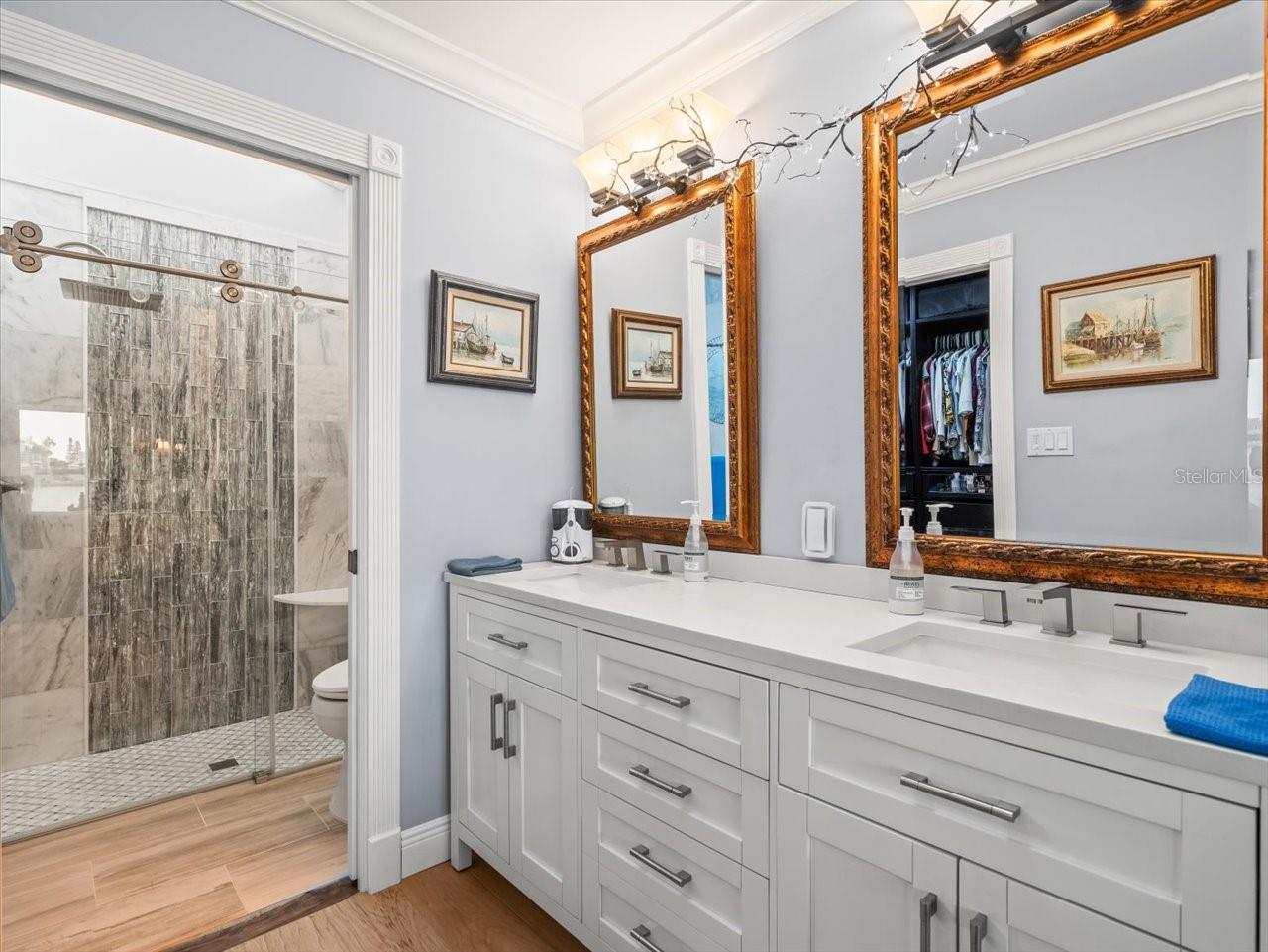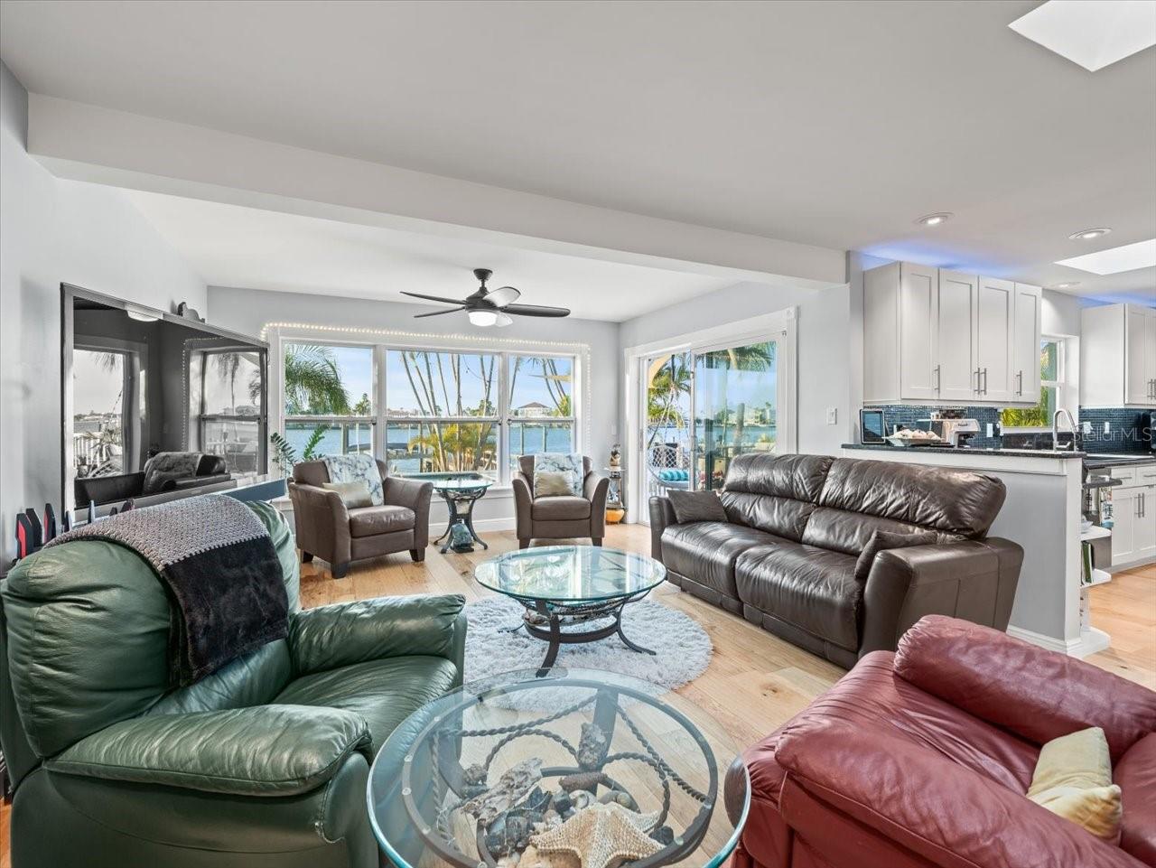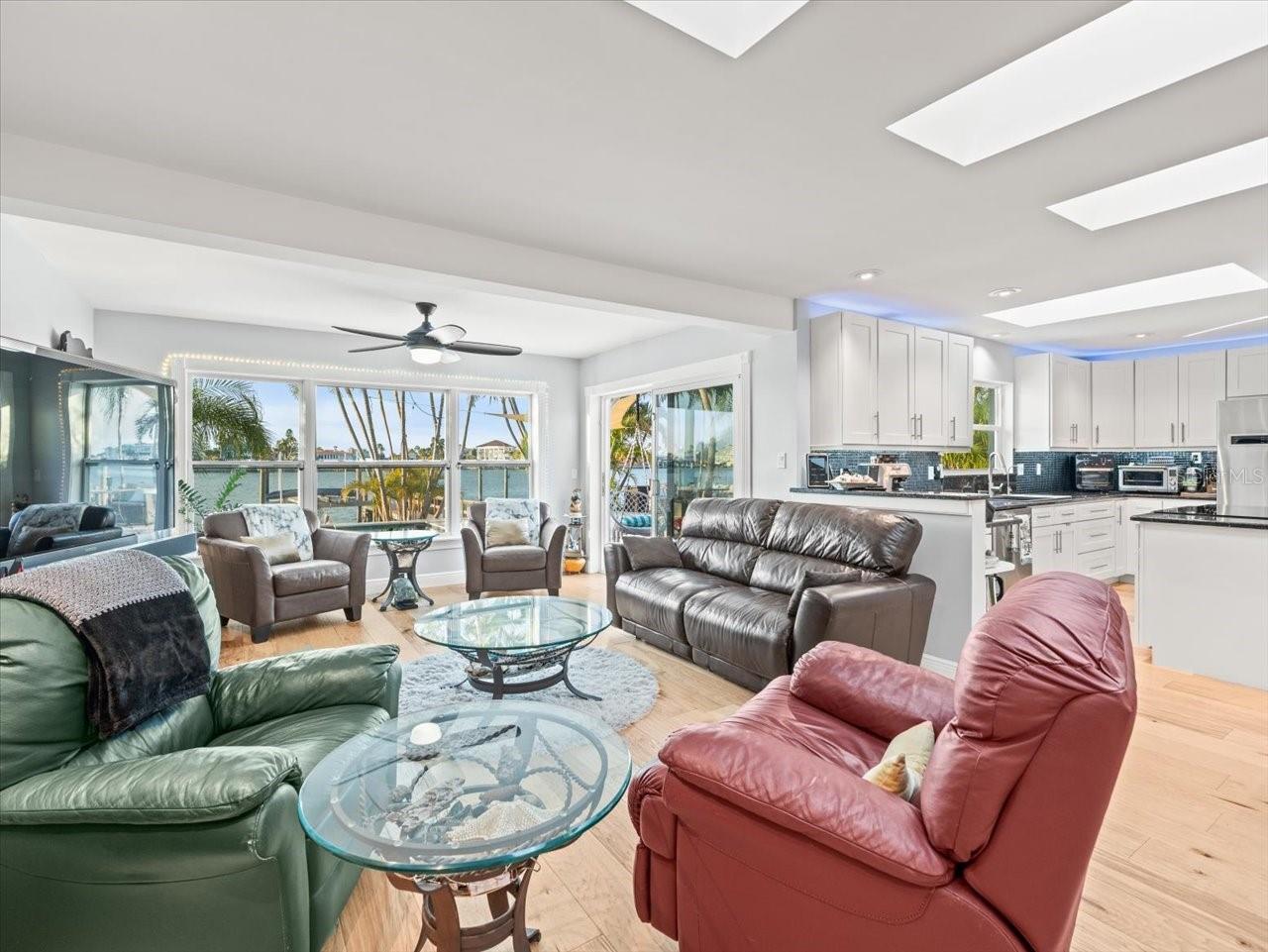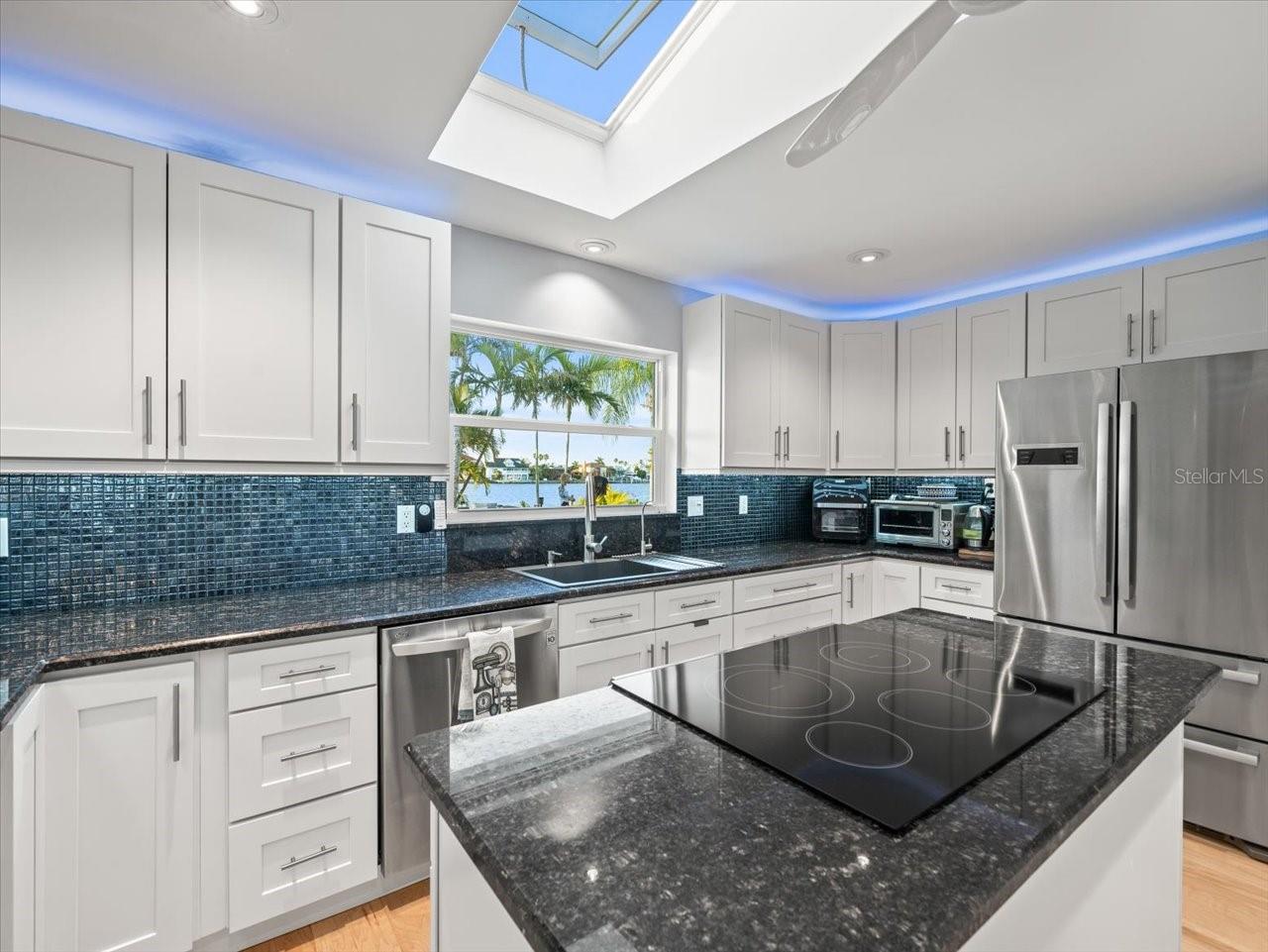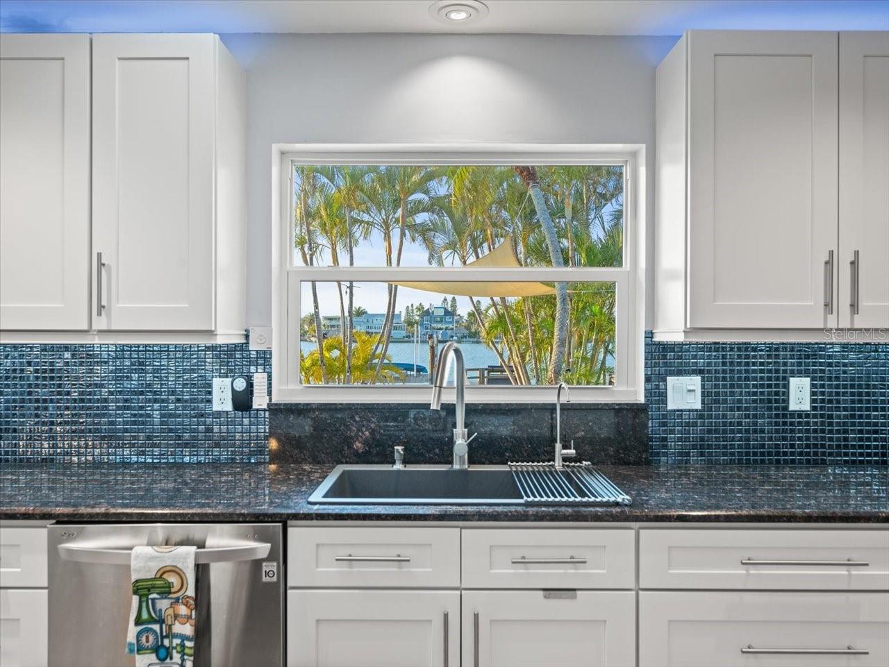 AN INSPIRING LUXURY WATERFRONT LIVING EXPERIENCE LOCATED IN THE HEART OF ST. PETE BEACH! A large circular driveway and lush subtropical landscaping introduce a wide and welcoming covered entry. Elegant wide-plank wood flooring, a wonderful array of skylights that deliver plenty of natural light, and spectacular water views visible across a rich open floor plan will assure an unforgettable living experience. The sumptuous and open chef’s kitchen features elegant white shaker-style cabinetry, fine granite surfaces, gorgeous small-tile blue backsplash, quality stainless steel appliances, an island prep center, and separate breakfast bar. An impressive great room concept integrates dining, living and kitchen areas in a way that maximizes your water views. Spacious owner’s suite boasts superb waterviews and a dazzling bath with dual vanities, coastal-modern wood cabinetry, quartz surfaces and a terrific walk-in glass rain-shower enclosure. 2nd and 3rd bedrooms are beautifully finished and the guest bath is luxurious in its appointments. The laundry facility is well-done, providing generous storage. Out back you’ll discover a captivating vision of paradise on the water! Luxury paver decking is tightly integrated with well-placed palm landscaping in a manner that calls you to the waterfront. Not to be outdone, is the absolutely stunning Pebbletec infinity pool & spa with lounging sun-shelf. By day, your pool seemingly disappears into the waterway; by early evening, radiant LED lighting produces a remarkable intimacy with sunsetting skies across the horizon. Separately, the rear yard offers substantial multi-purpose green space, an updated seawall, newer deep water composite dock, a 16,000 lb boat lift, and tie poles for a cruiser/sailboat – from here, you’re 15 minutes to the Gulf by Boat. The home’s many updates/upgrades include its kitchen and baths, its infinity pool/spa, solar electric panels (significantly lowering electric bills), newer windows and newer roof. The best of boating and the beach, with just a 5-minute walk to the nationally acclaimed powdersoft sands of St. Pete Beach. Situated in highly-desired Brightwater Beach Estates (where all the homes are on the water), you’ll find shopping, dining and entertainment are within easy walking distance. Close to downtown St. Petersburg (15-minute drive) and just 30 minutes to Tampa Airport. This is an extraordinary value in a superb waterfront location. Buyer to verify room dimensions.