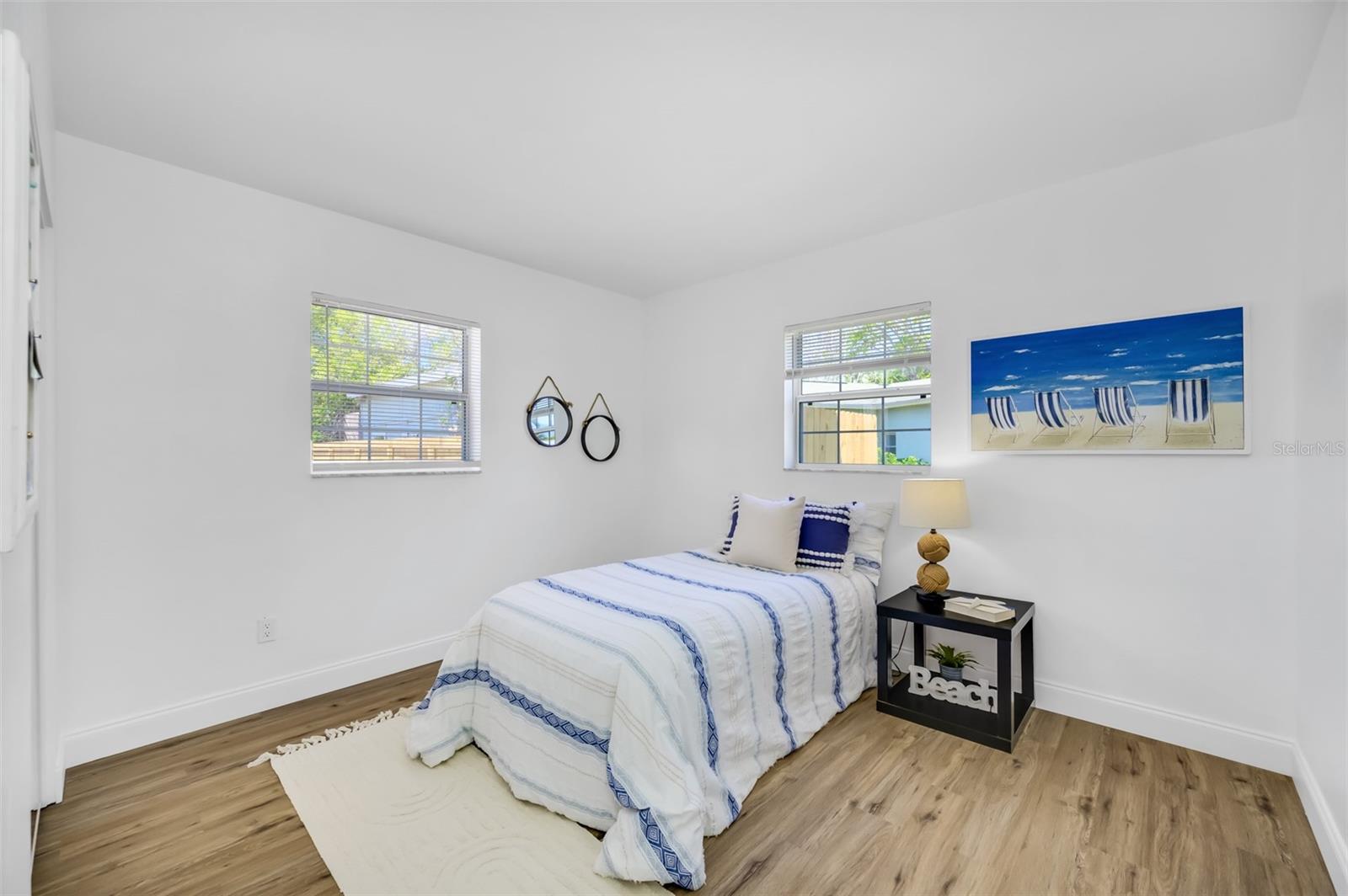 Welcome to your coastal oasis in St Pete Beach! This beautifully renovated 2 bed 1 bath home with a carport offers the perfect blend of modern elegance and beachside charm. Step inside to discover a fresh renovation, including a new roof, new paint, light fixtures, hardware, and luxurious LVP flooring throughout. The updated kitchen boasts stainless steel appliances, recessed lighting, and an open layout that flows seamlessly into the spacious living room, creating an inviting space for relaxation and entertainment. The bathroom has been tastefully updated with a tiled walk-in shower, modern vanity, and stylish finishes. A dedicated laundry room adds convenience to your daily routine and offers plenty of storage space. Outside, a screened lanai leads to the fenced backyard, complete with a storage shed for all your beach essentials. Perfectly situated across the street from Boca Ciega Bay and just steps from the beach, this home offers easy access to water activities, local dining, shopping, and entertainment. Don't miss the opportunity to make this stunning property your own coastal retreat! This home is available for the next three days only to Active-Duty Military, Veterans, Widows of Veterans Educators & First Responders. See the attachment for more information on our Special Give Back Program and how to qualify.
