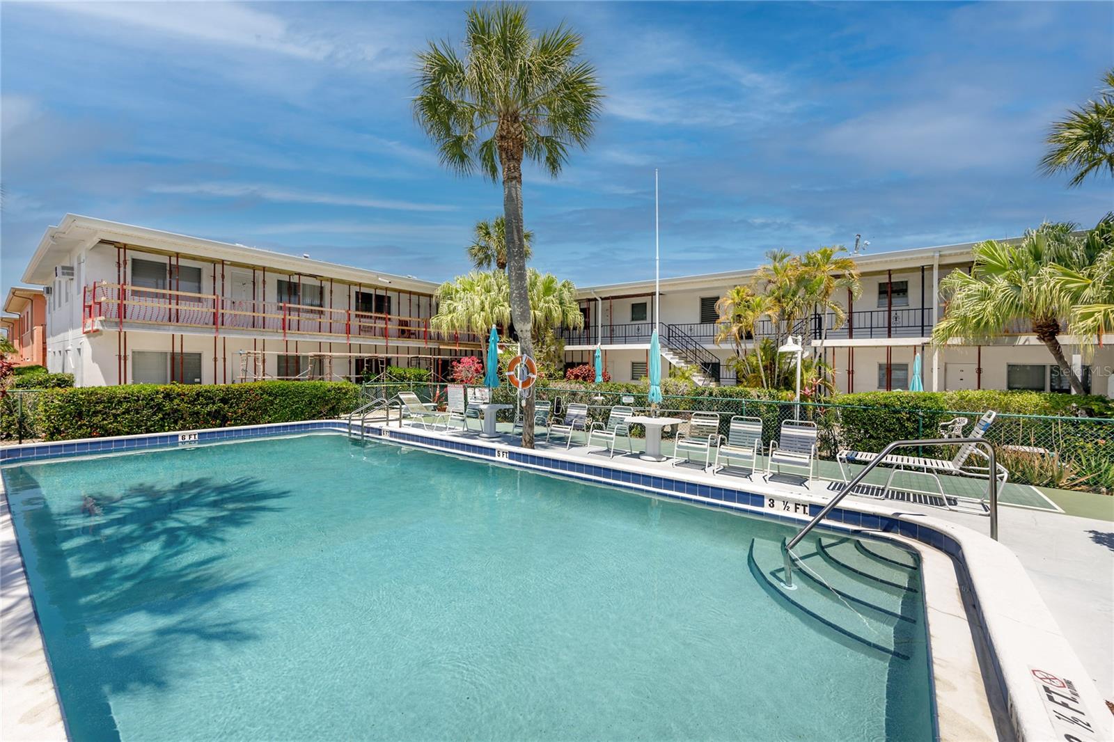 Check out this outstanding opportunity—the best-priced unit on St. Pete Beach with an unbeatable location! This second-floor 1-bedroom, 1-bathroom condo is a mere 1000 feet from the beach and just steps from the pool, social areas, and laundry facilities. Positioned adjacent to Dolphin Plaza and close to Lido Park, this property offers convenient access to shops, restaurants, and various recreational activities, attracting snowbirds year after year. Situated in a well-maintained 55+ community, this condo is perfect for those seeking quiet enjoyment of their unit and the added benefits provided by having no neighboring rentals or pets, including a strong sense of community, cleaner common areas, and added security of knowing your neighbors! Low selling price allows you to make your personalized updates. This is a great snowbird winter retreat or for the full-time owner who desires tropical-style living in a highly-desired beach community for an affordable price with low monthly fees! Tivoli apartments also feature an in-ground heated pool, shuffleboard, umbrella-covered seating areas, BBQ facilities, covered storage and bicycle racks. No Leasing. Guests allowed for 30 days max. This is a coop. Cash purchase only Bedroom Closet Type: Walk-in Closet (Primary Bedroom).