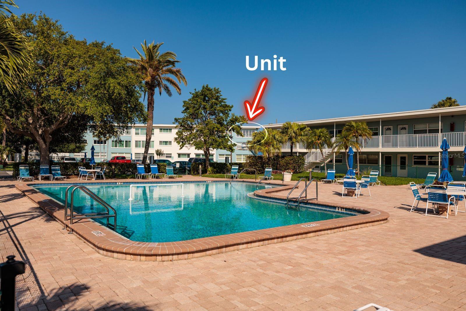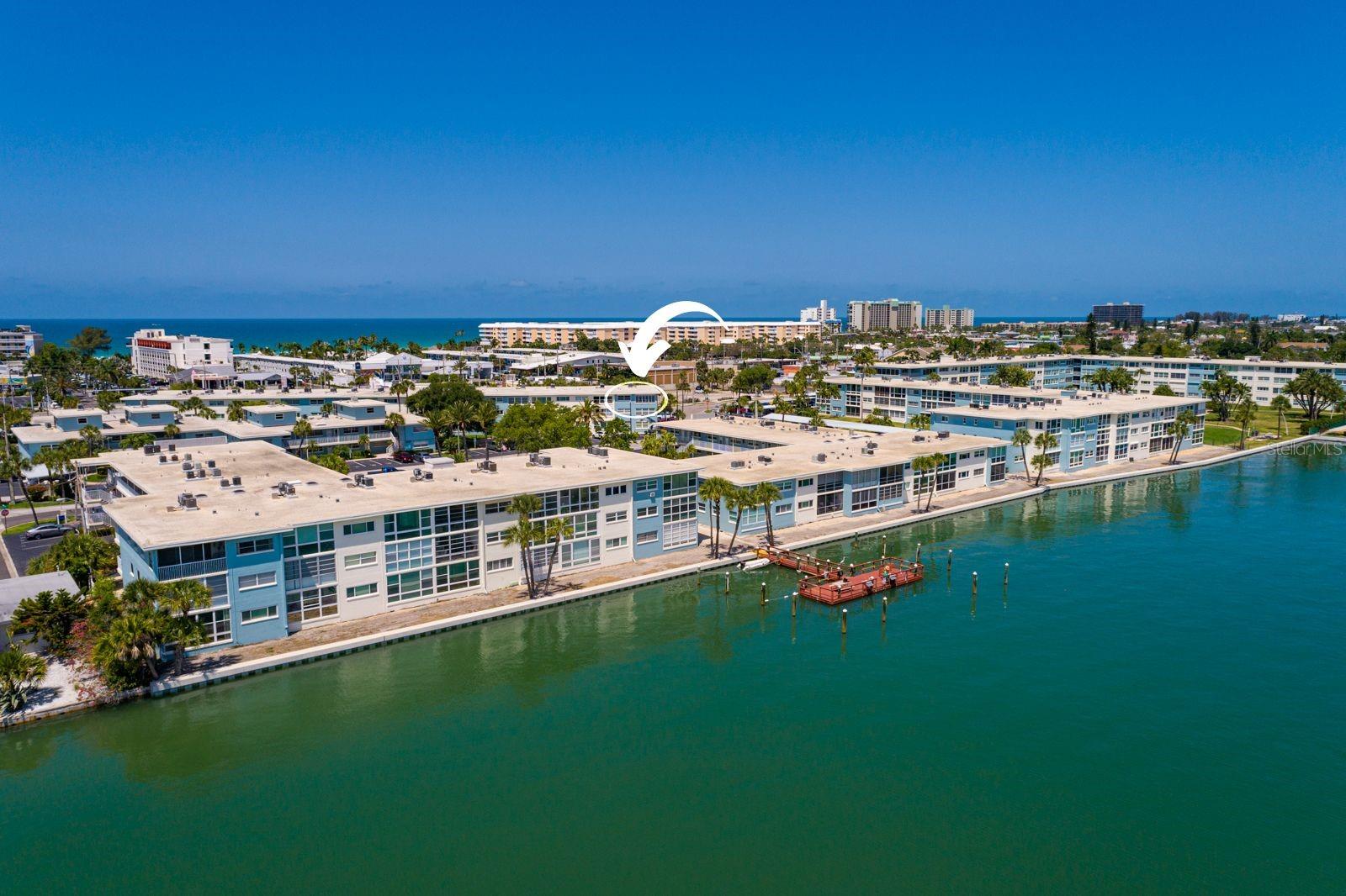 Discover Coastal Elegance at Sylvette Condos! Nestled on the idyllic St Pete Beach Island, this unique top floor corner unit (3rd floor & 1,425 sq. ft.) is a treasure trove of comfort and convenience. All windows have HURRICANE SHUTTERS & the unit is sold fully furnished (turnkey & sleeper sofa). Just a leisurely 10-minute stroll from the powdery sandy shores, your beachside bliss is within arm's reach. Step into a world where every detail caters to your well-being with CROWN MOLDING and high-end luxury plank vinyl flooring throughout. The expansive living/dining room, bathed in natural light from 3 side windows and 1 large southeast facing window with plantation shutters, offers a serene retreat with pool views & partial views of Boca Ciega Bay. The masterfully designed SPLIT-BEDROOM layout ensures privacy, with the large primary bedroom boasting an en-suite bathroom and a walk-in closet. The second bedroom, equally grand, and a cozy guest bathroom complete this sanctuary. The bright kitchen has 2 windows, dinette area and a pantry. Reserved covered CARPORT parking (#33) awaits just beneath your abode, while a private OUTSIDE STORAGE CLOSET keeps your beach essentials at the ready. Embrace the morning with a stroll to historic Pass-A-Grill or the enchanting beach garden by the Blind Pass waterway flowing into the Gulf of Mexico. Sylvette's vibrant community life features two glistening pools—one heated for year-round enjoyment—a pier (with boat slips) that invites you to unwind or cast a line into Boca Ciega Bay and 3 grilling areas. With no pets to fret over, your focus remains on the plethora of nearby attractions. Indulge in the local cuisine, shop to your heart's content, or simply soak up the sun at the beach bars. The Sun Runner express bus whisks you to downtown St. Petersburg, where culture and cuisine await just a pleasurable ride away. Adventure further to Artsy Gulfport, the sprawling Ft. Desoto Park, catch a flight from Tampa International Airport or hop on a luxury liner to cruise the Caribbean from the Port Tampa Bay Cruise Terminal, all within a short drive. Your slice of paradise at Sylvette condos is not just a home; it's a lifestyle waiting to be lived. New owner must wait 2 yrs before leasing & 3 mos minimum lease thereafter.