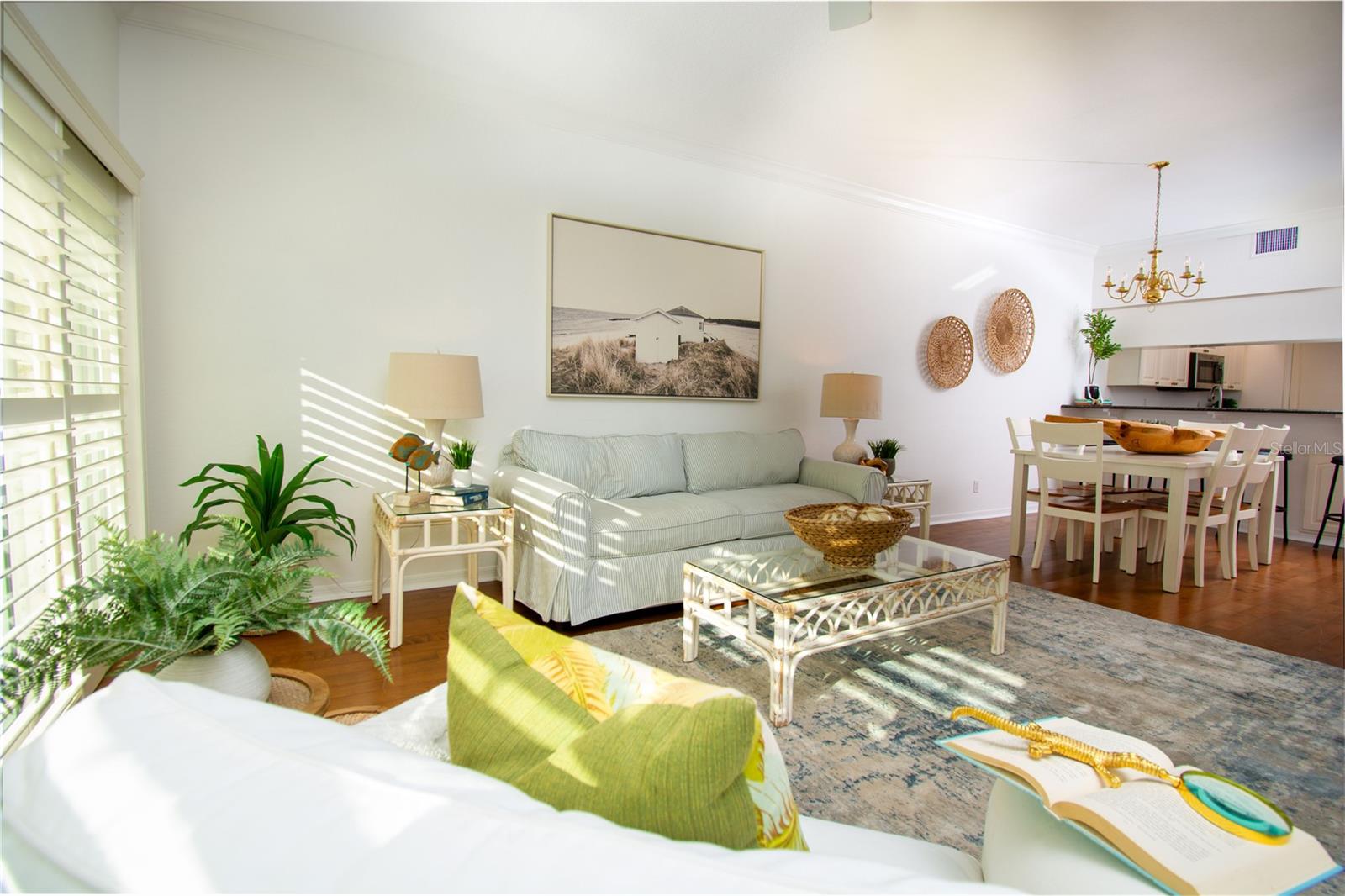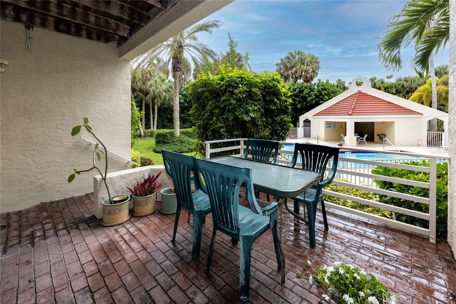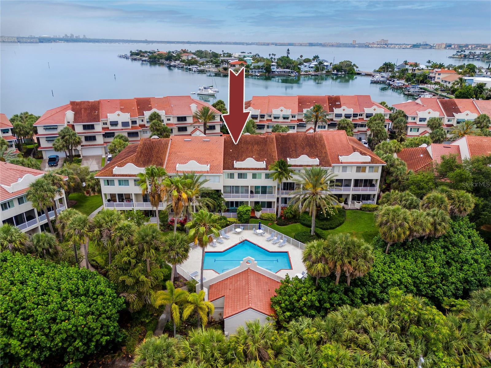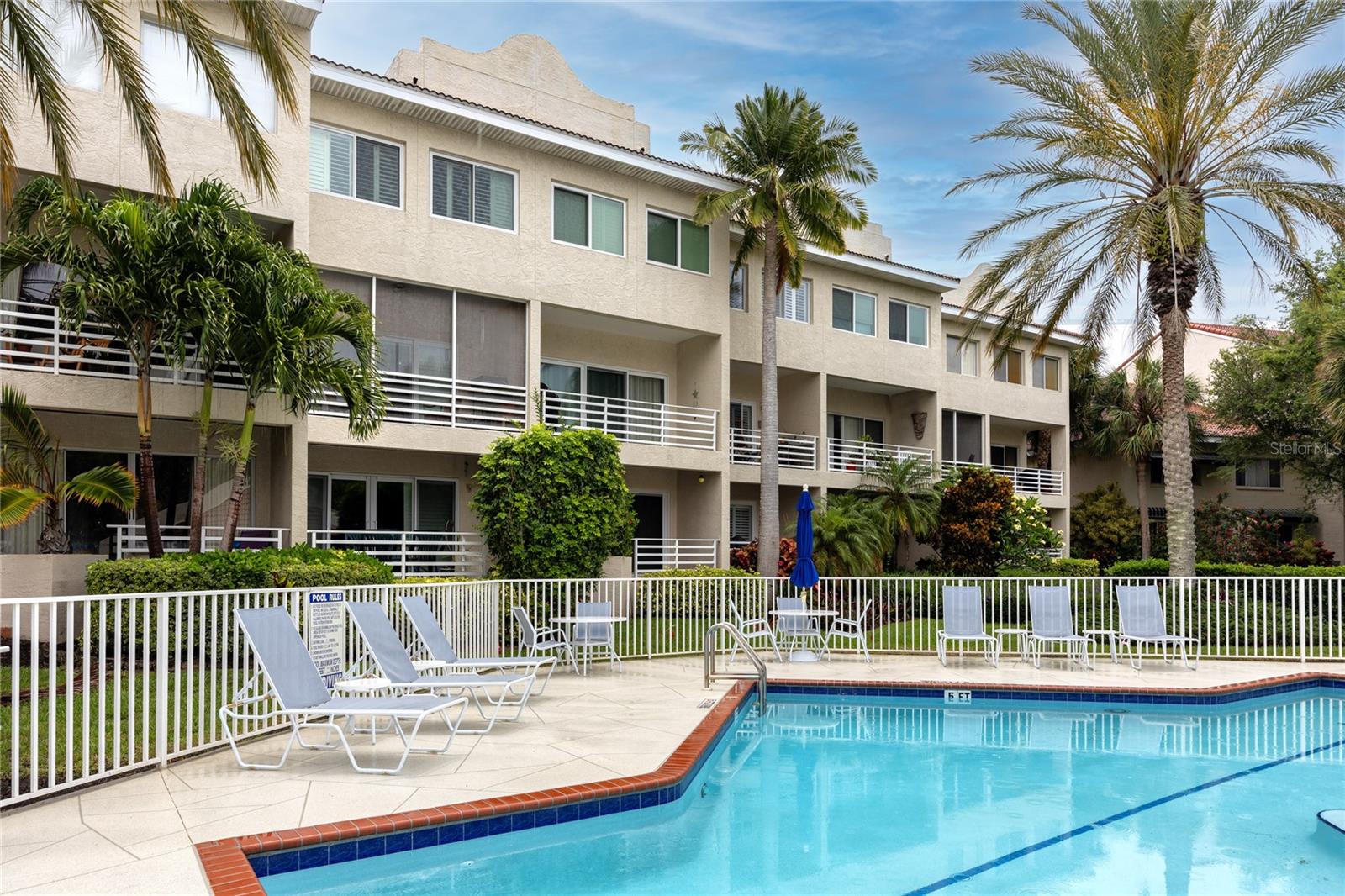 Welcome to Mirabella, one of St. Pete Beach’s most coveted townhome communities, offering the ultimate coastal lifestyle just steps from the beach, shops, and dining. This spacious townhome spans over 2,200 sqft and features an open floor plan with 4 bedrooms, 4 full bathrooms, soaring 9-foot ceilings, and two inviting balconies that provide the perfect setting for relaxation. Recently updated with fresh carpeting and paint throughout, this home is turn key ready and waiting for your finishing touches. On the ground floor, a flexible space awaits your personal touch—ideal for use as a fourth bedroom, in-law suite, media room, or entertainment space. This level boasts a private entrance, wet bar with a wine fridge, a full bath with a walk-in shower, and a covered patio just steps from the sparkling community pool, making it the perfect spot for entertaining or unwinding with family and friends. The main living area is bright and open, with natural light pouring in through double sliding doors, illuminating the hardwood floors and elegant crown molding. This floor includes the living room, dining area, a guest bedroom, full bath, and a fully screened balcony overlooking lush landscaping and the pool. The gourmet kitchen is a chef’s dream with custom maple cabinetry, granite countertops, stainless steel appliances, and a spacious walk-in pantry for all your storage needs. Upstairs, the serene master suite is your private retreat, featuring vaulted ceilings, two walk-in closets, and an ensuite bathroom with dual sinks and a large walk-in shower. An additional bedroom with an ensuite bath and a conveniently located laundry area complete the upper level. The oversized one-car garage includes extra room for storage or a workshop area, and the home has been thoughtfully upgraded with impact-rated windows and sliders (complete with a transferable lifetime warranty). Additionally, solid wood plantation shutters throughout for added privacy and enjoyment of the spanning views. Mirabella’s prime location allows for easy access to the beach for evening walks and stunning sunsets. The community also offers a heated pool, kayak launch, guest docking slips, and additional parking. Just minutes from Dolphin Plaza for shopping and a short drive to vibrant Downtown St. Pete, you’ll enjoy easy access to restaurants, museums, and entertainment. Mirabella is also pet-friendly, allowing for two large pets and offering a flexible 3-month minimum rental policy. Experience the ultimate Florida lifestyle in this beautiful townhome, where coastal living is at its finest!