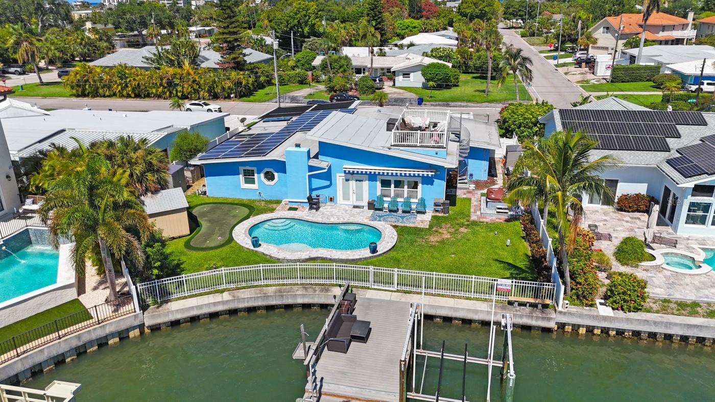 Location, Location, Location! Beautiful Waterfront Opportunity in St Pete Beach Belle Vista Point. Florida lifestyle at it's finest! Large Open Floor plan is ideal for relaxing or entertaining. Primary suite has a large sitting area with fireplace and newly updated ensuite primary bath. Large family room is surrounded by windows with water views. House has two additional bedrooms, one is being used as an office. Storage and closet space everywhere! Chef's kitchen offers additional countertop and cabinet space. Extra large formal dining area. This house also has and additional Accessory Dwelling Unit or Inlaw suite with private entrance. Relax by the pool or on the rear deck with power sun awnings that open and retract with the push of a button. Solar powered home! pay almost zero electric. Practice your golf game on your very own putting green in the back yard. Fish or park your boat on your private newly updated dock with power boat lift. Enjoy the sunset on the rooftop terrace. Boat and RV parking OK. Circular drive and only minutes from World Famous St Pete Beach.