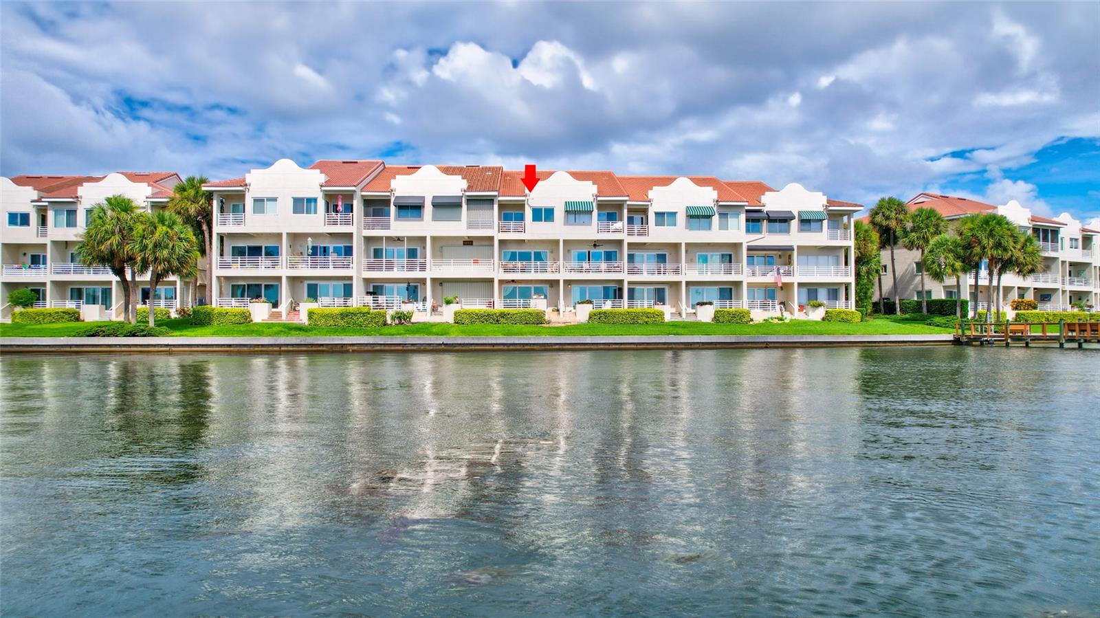PRICE REDUCED! INCREDIBLE VALUE IN THE BEST TOWNHOME CUMMUNITY ON THE BEACH - HIGH AND DRY, NO FLOODING! Stunning, executive waterfront townhome nestled in the serene, private enclave of St. Pete Beach. Offering picturesque open water views of Boca Ciega Bay and a relaxed coastal atmosphere, this residence combines coastal charm with modern elegance. The meticulously updated interior includes four bedrooms, four baths, hurricane impact windows and sliders, and luxuriously remodeled bathrooms. The kitchen boasts glass door and solid maple cabinets, stainless steel appliances, and ample storage. Enjoy breathtaking open water views from private balconies on all levels and an extended patio perfect for watching dolphins and manatees glide by. The primary suite features a dramatic vaulted ceiling, open water views with its own private balcony, and two large walk-in closets. The outdoor living is enhanced with a built-in gas barbecue grill set in a stone countertop on the large, extended, first-floor tile patio. This home has many unique details and finishes with modern conveniences including plantation shutters, custom window treatments, an updated HVAC system, a newer hot water heater, a new tile roof, portable generator, and a whole house water filtration and softener system. The one car garage boasts even more storage and a newer epoxy painted floor- use it for parking or a workshop and still be able to park two cars in the driveway. Located in the prestigious Mirabella Estates community, this home is just a short walk to the beach. Residents enjoy amenities such as a heated pool, day dock, kayak launch, fishing pier, and guest parking spots. NO MILESTONE INSPECTION needed, and the very LOA HOA fee covers all landscaping, road care, pool maintenance, recycling, trash pickup, water, sprinklers, high-speed internet, and premium cable TV. Mirabella is also pet-friendly, allowing up to two pets with no weight restrictions. This home can be rented for 3 month minimums. Don't miss this rare opportunity to own a piece of paradise in St. Pete Beach with low HOA fees, luxury updates, and splendid water views. Seller financing is available.
