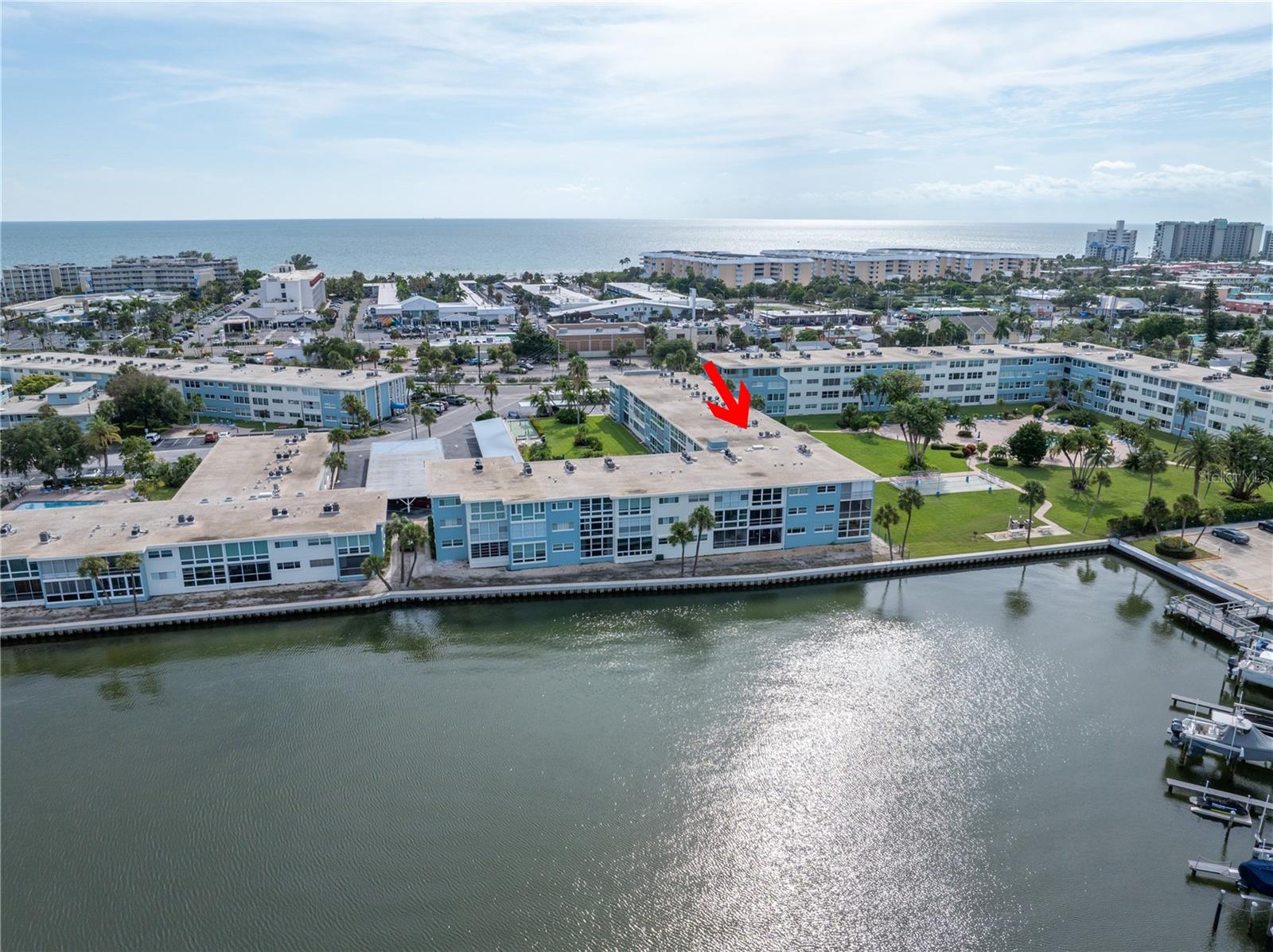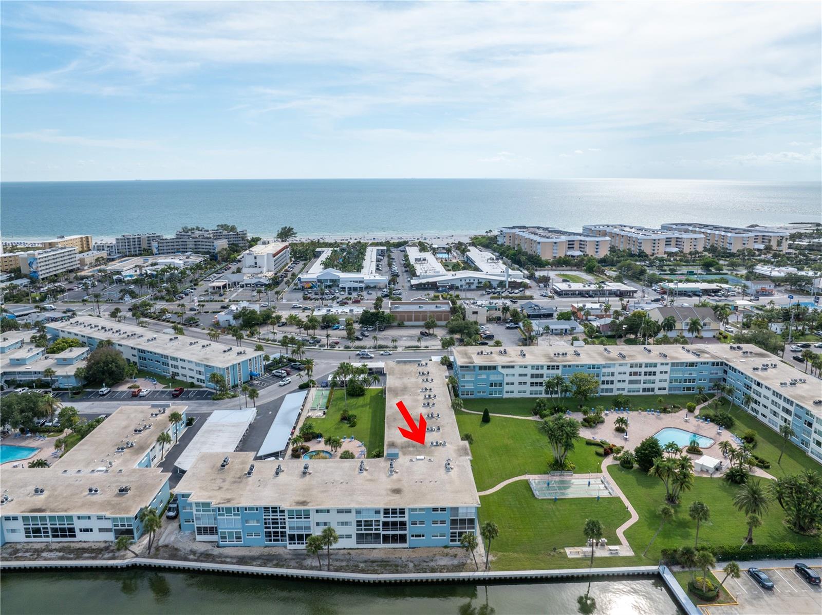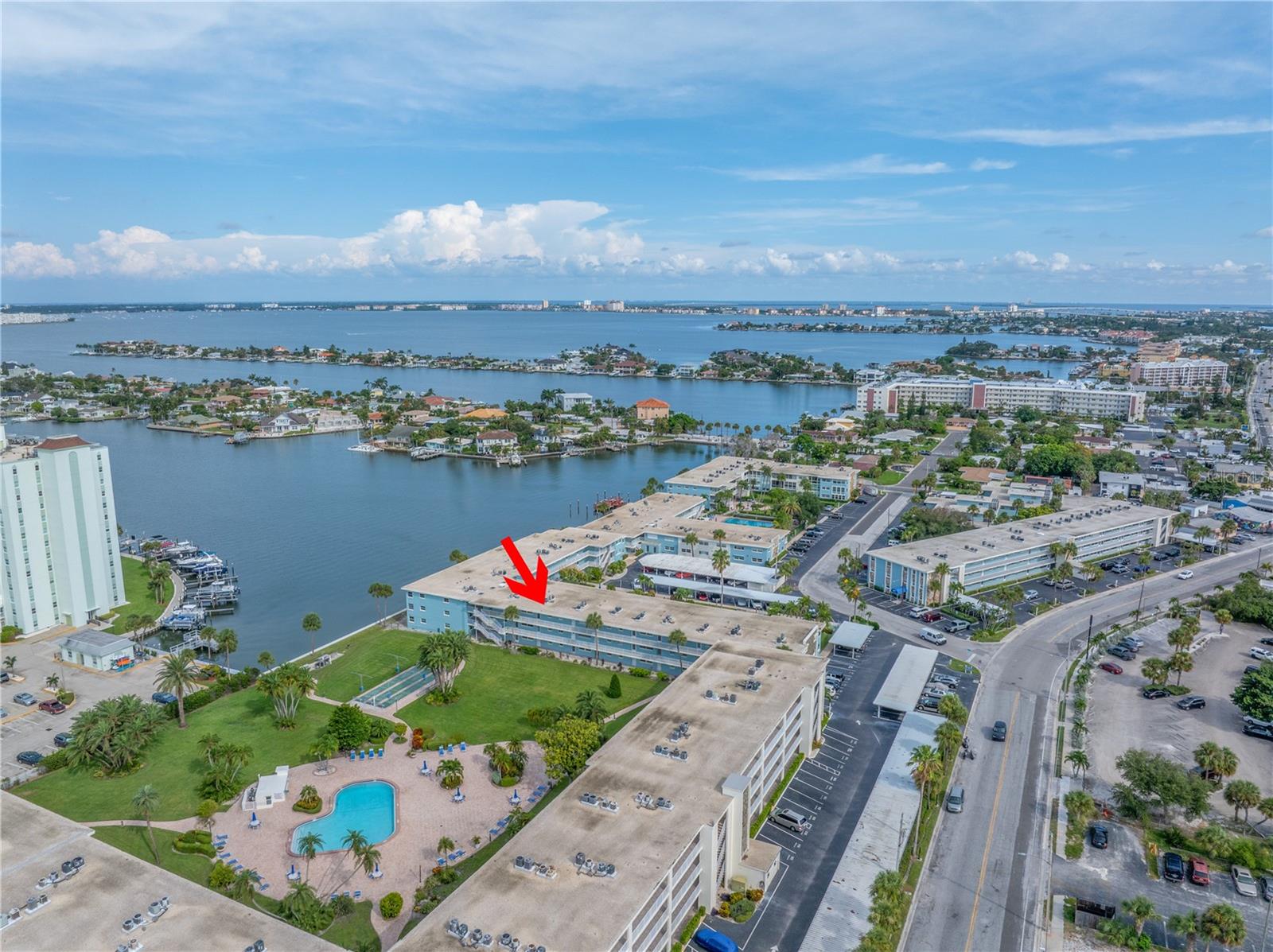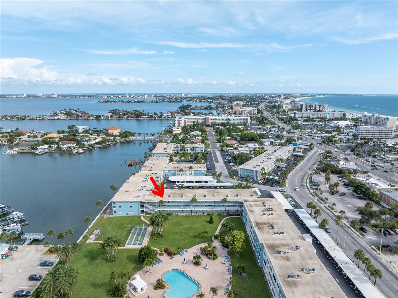 Welcome to Paradise says this very nicely updated turnkey 1 bed 1 bath condo. Beautifully polished terrazzo flows throughout the unit along with throw rugs to make it comfy and cozy. The condo is decorated with all new furniture that stays with the condo. It features a beautiful tall breakfast table and matching wood stools. There is a large sectional, coffee table and tv that looks out onto the large glassed in sunroom with new windows overlooking the wonderful courtyard setting. Inside is a spacious kitchen, with nice cabinets and appliances. There is a nice bathroom with tub and shower and a very large bedroom with a generous sized closet. Just outside the door is a laundry room, storage closet, elevator and stairs. Outside your front door is a nice view of the bay and boats and a straight shot to the pool and common ground. This condo is a short walk to Gulf Blvd and everything it has to offer with restaurants, shops, bars and more. This condo is across the street to the sugary sand of St Pete Beach. This condo is located a short drive from Treasure Island Beach and Gulfport and everything it has to offer downtown. You are minutes from Corey Avenue shopping district and a short drive to Pass a Grille Beach and Fort De Soto State Park. Last but not least this condo comes with a 1 Year Warranty for peace of mind. Buyers will love living in Paradise in their new beautifully decorated turnkey condo!