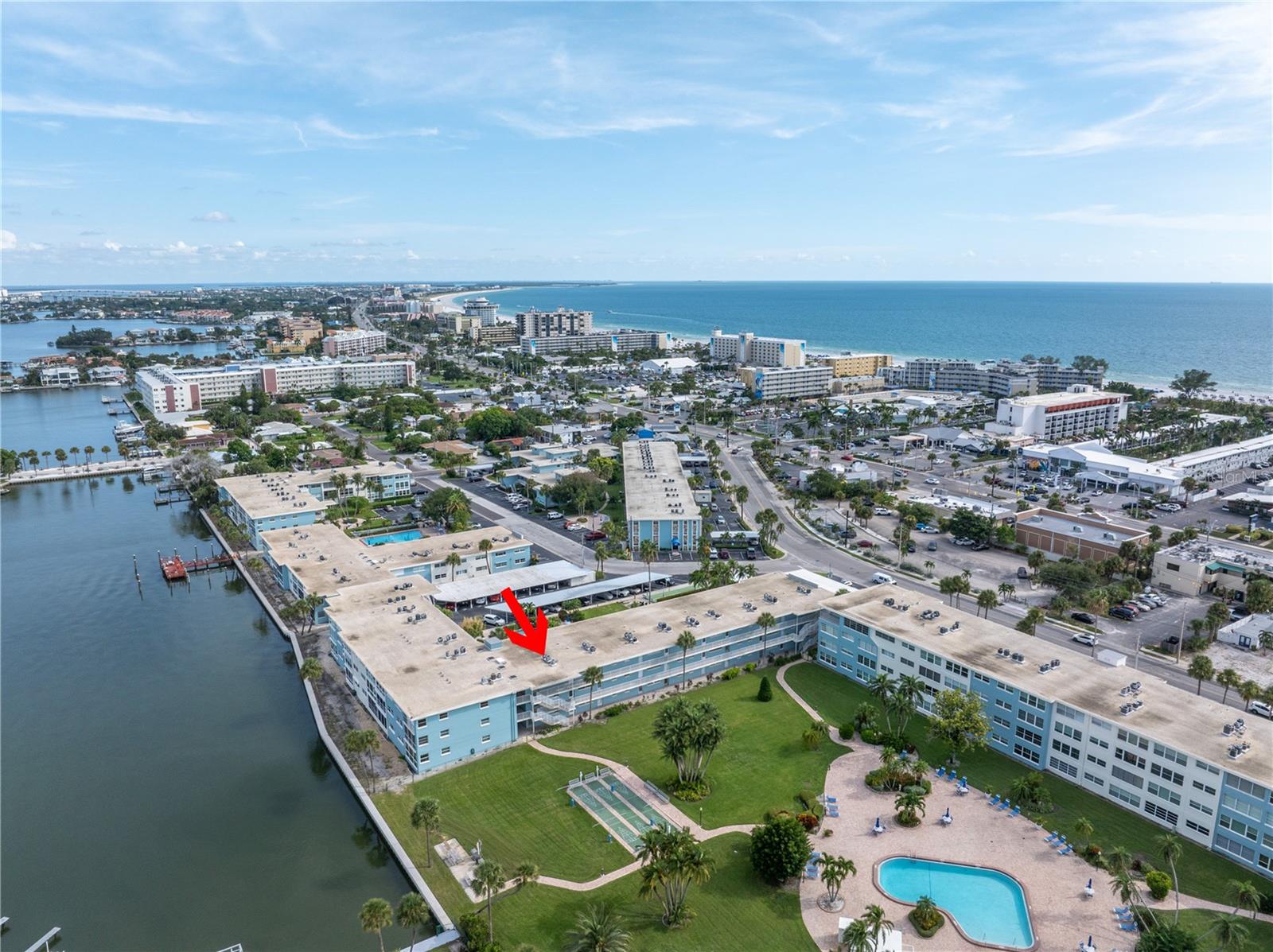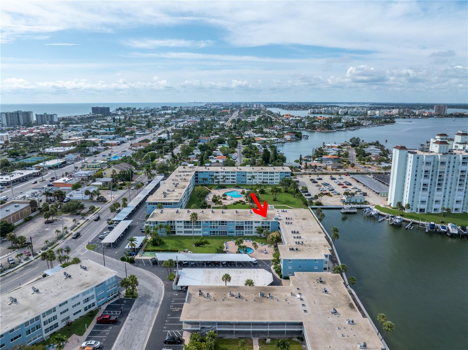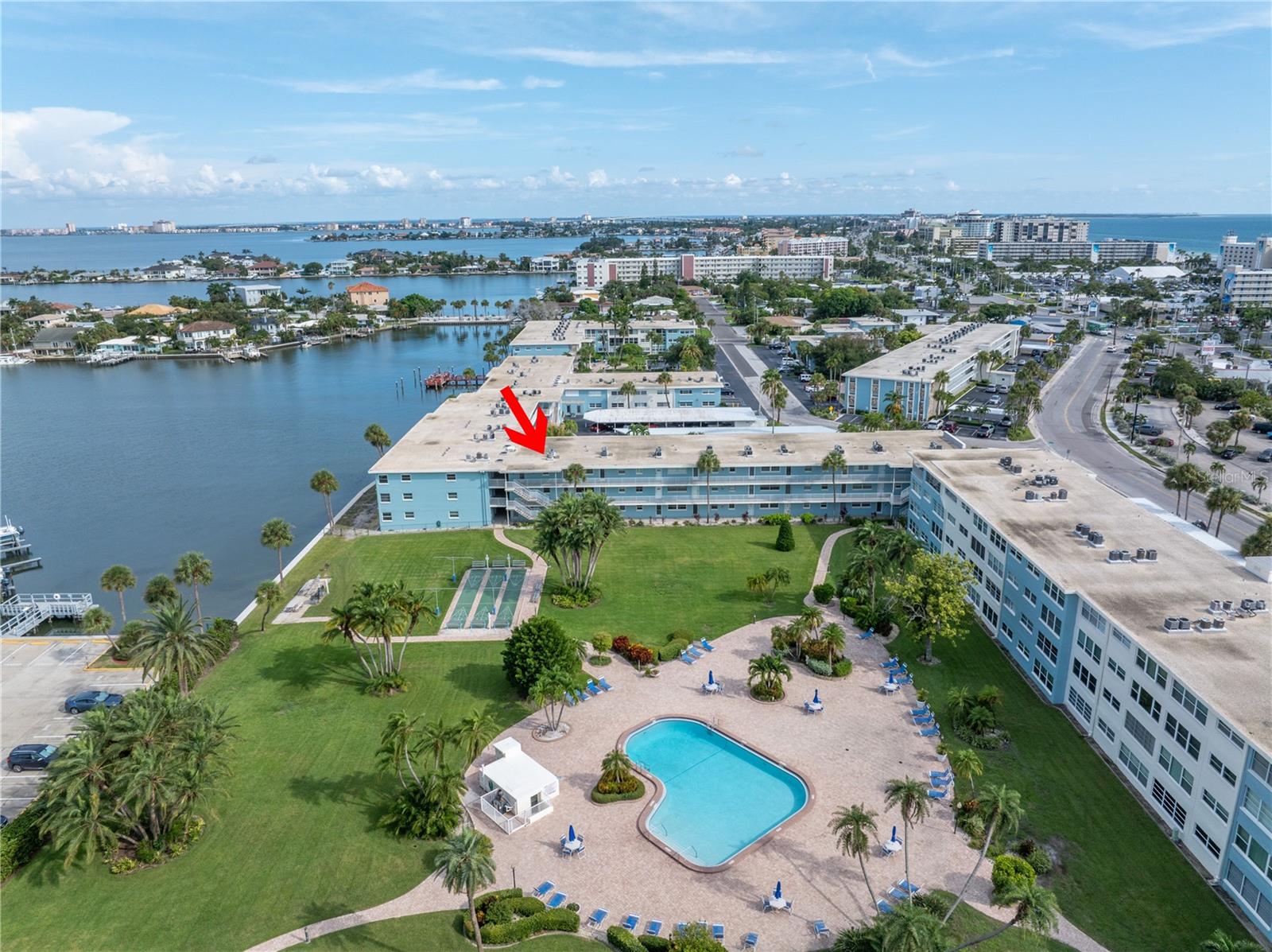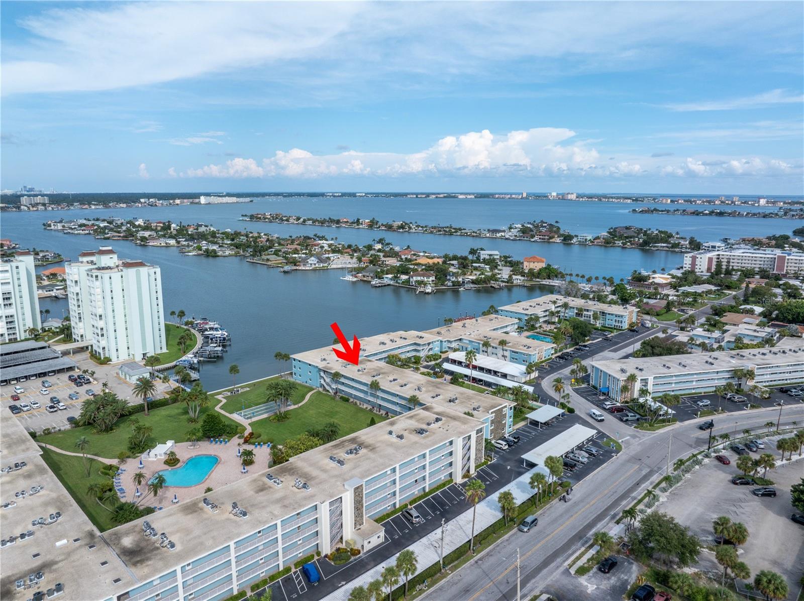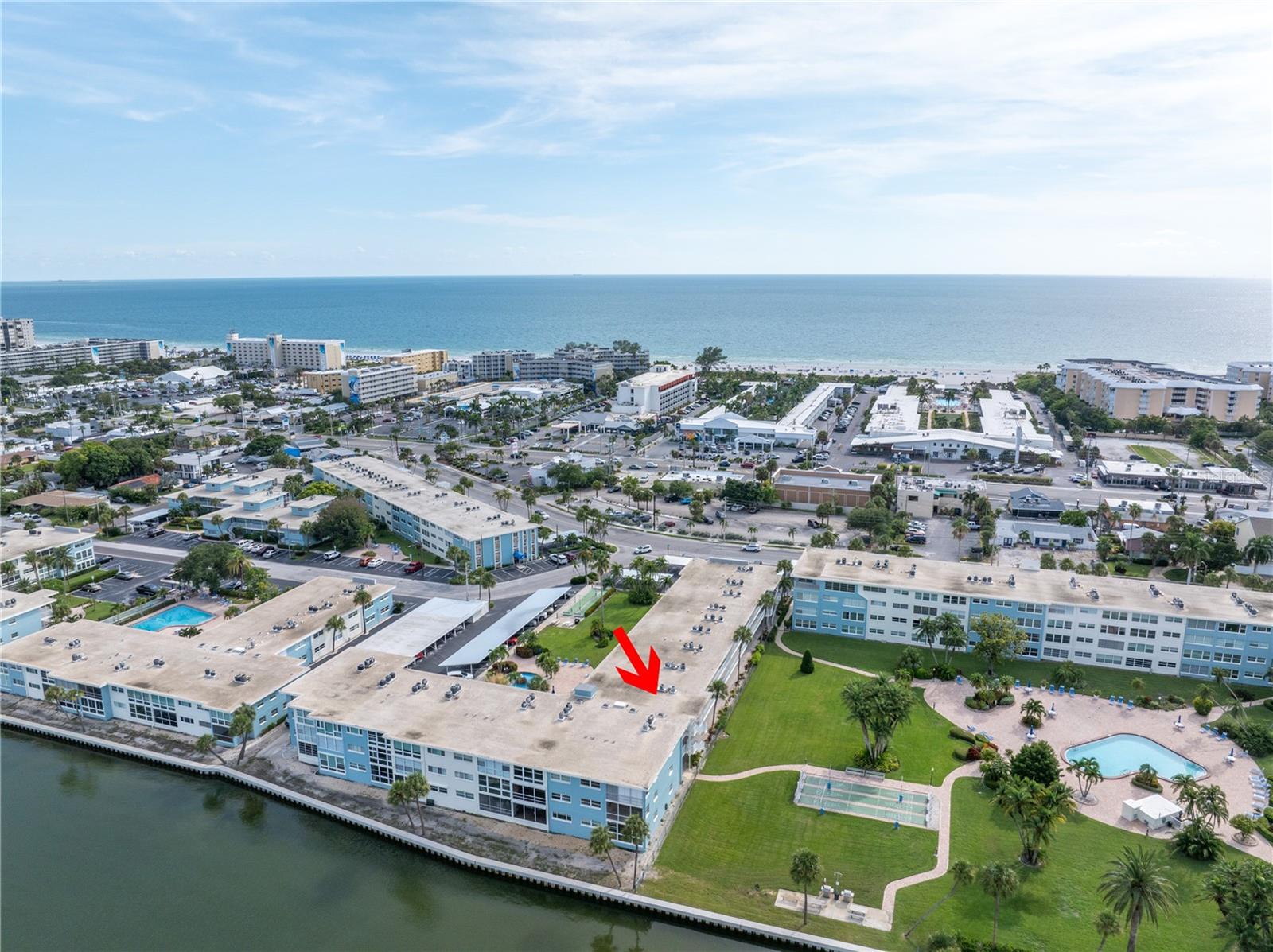Welcome to Paradise says this very nicely updated turnkey 1 bed 1 bath condo. Beautifully polished terrazzo flows throughout the unit along with throw rugs to make it comfy and cozy. The condo is decorated with all new furniture that stays with the condo. It features a beautiful tall breakfast table and matching wood stools. There is a large sectional, coffee table and tv that looks out onto the large glassed in sunroom with new windows overlooking the wonderful courtyard setting. Inside is a spacious kitchen, with nice cabinets and appliances. There is a nice bathroom with tub and shower and a very large bedroom with a generous sized closet. Just outside the door is a laundry room, storage closet, elevator and stairs. Outside your front door is a nice view of the bay and boats and a straight shot to the pool and common ground. This condo is a short walk to Gulf Blvd and everything it has to offer with restaurants, shops, bars and more. This condo is across the street to the sugary sand of St Pete Beach. This condo is located a short drive from Treasure Island Beach and Gulfport and everything it has to offer downtown. You are minutes from Corey Avenue shopping district and a short drive to Pass a Grille Beach and Fort De Soto State Park. Last but not least this condo comes with a 1 Year Warranty for peace of mind. Buyers will love living in Paradise in their new beautifully decorated turnkey condo!