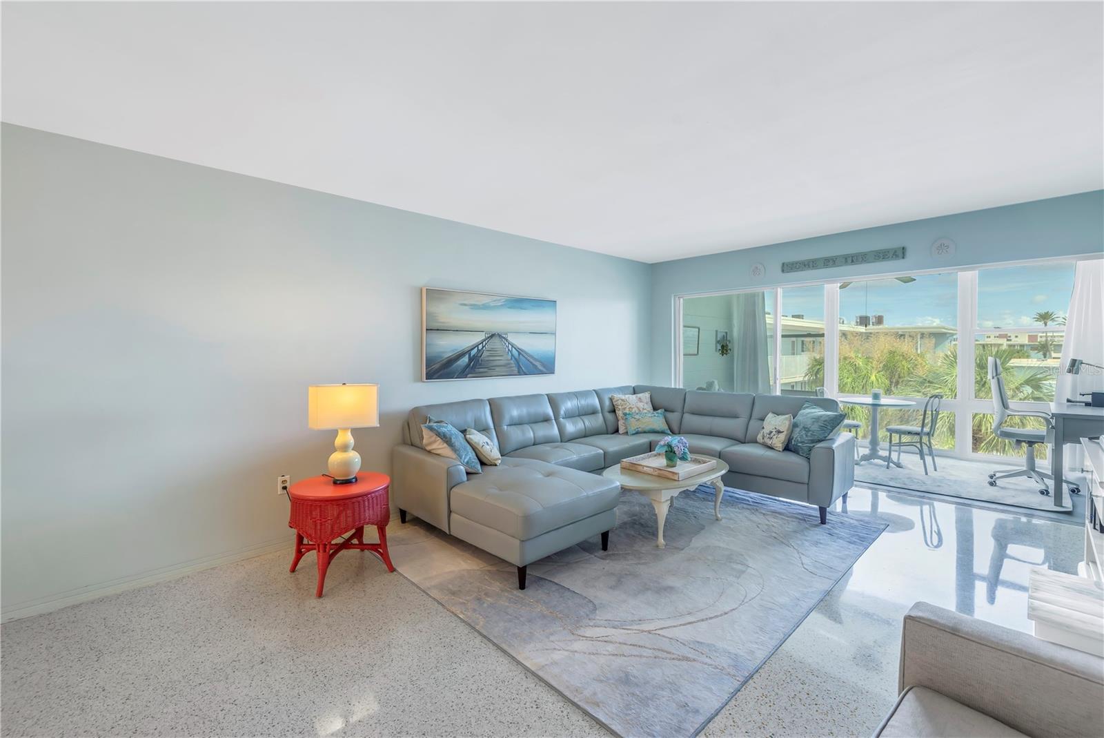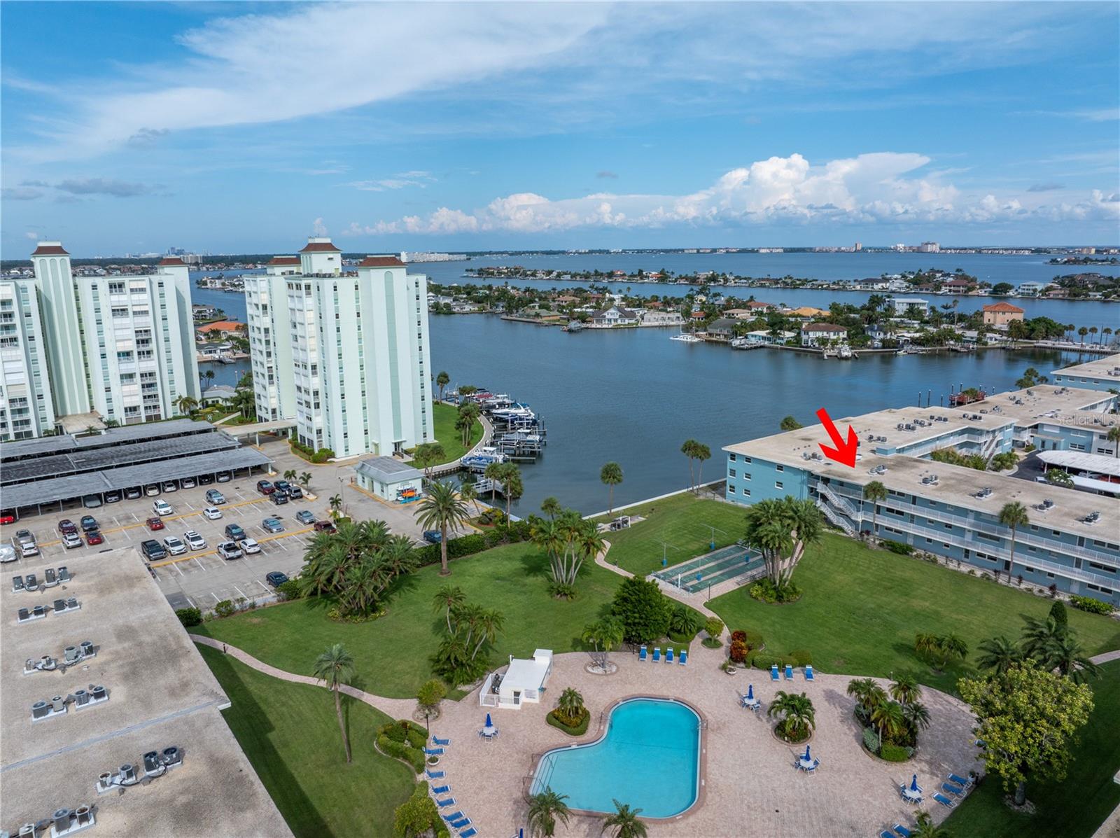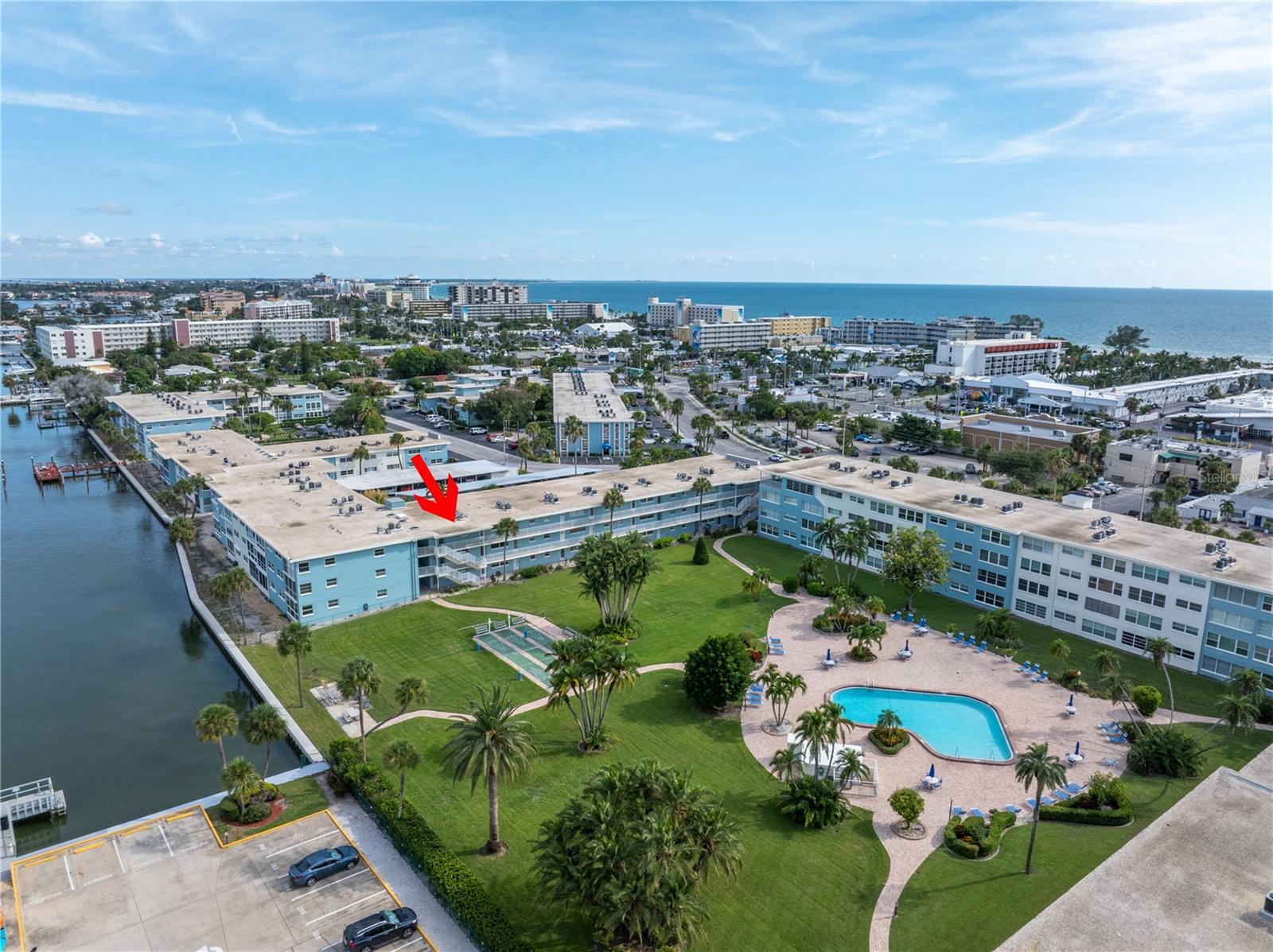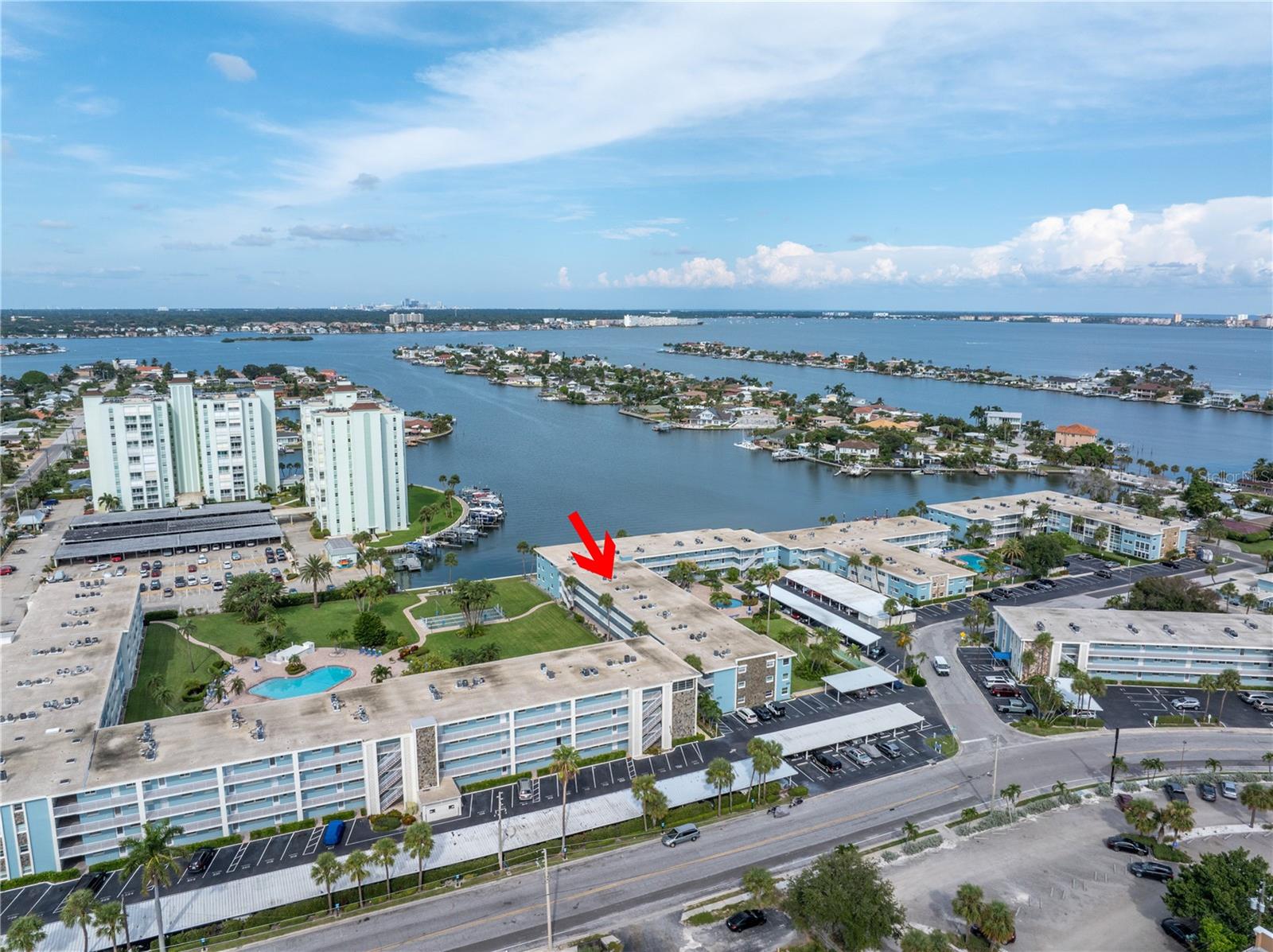 Welcome to Paradise says this very nicely updated turnkey 1 bed 1 bath condo. Beautifully polished terrazzo flows throughout the unit along with throw rugs to make it comfy and cozy. The condo is decorated with all new furniture that stays with the condo. It features a beautiful tall breakfast table and matching wood stools. There is a large sectional, coffee table and tv that looks out onto the large glassed in sunroom with new windows overlooking the wonderful courtyard setting. Inside is a spacious kitchen, with nice cabinets and appliances. There is a nice bathroom with tub and shower and a very large bedroom with a generous sized closet. Just outside the door is a laundry room, storage closet, elevator and stairs. Outside your front door is a nice view of the bay and boats and a straight shot to the pool and common ground. This condo is a short walk to Gulf Blvd and everything it has to offer with restaurants, shops, bars and more. This condo is across the street to the sugary sand of St Pete Beach. This condo is located a short drive from Treasure Island Beach and Gulfport and everything it has to offer downtown. You are minutes from Corey Avenue shopping district and a short drive to Pass a Grille Beach and Fort De Soto State Park. Last but not least this condo comes with a 1 Year Warranty for peace of mind. Buyers will love living in Paradise in their new beautifully decorated turnkey condo!