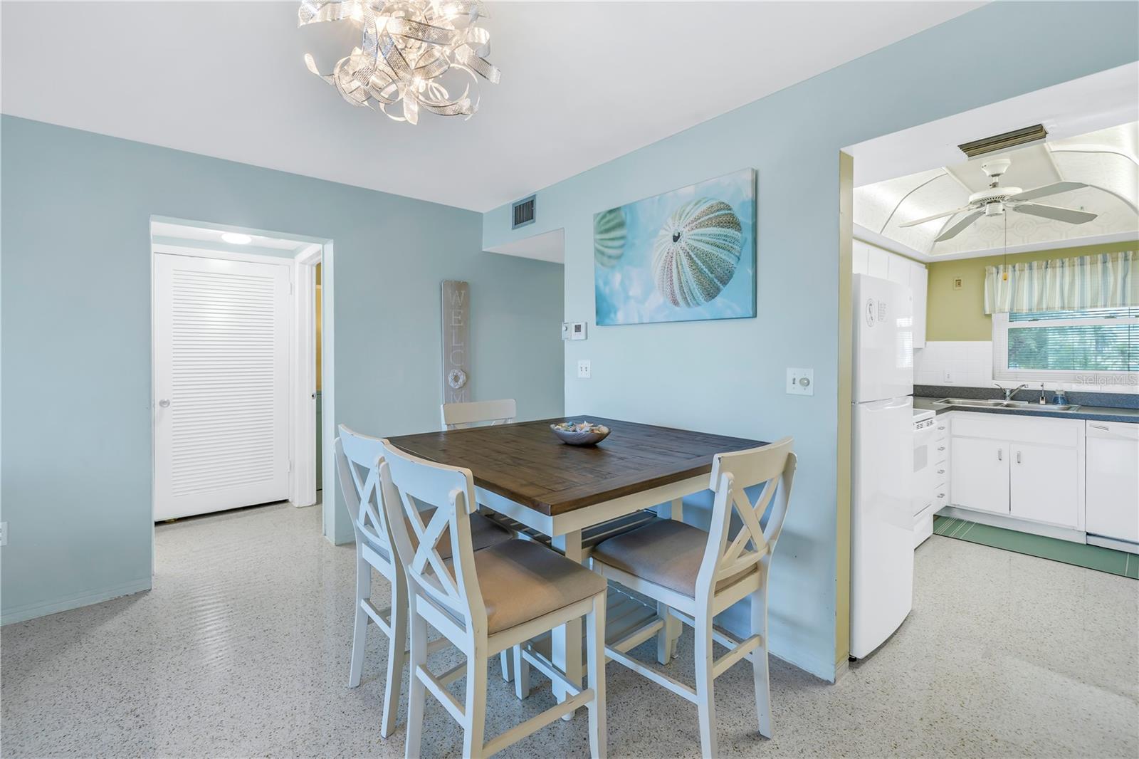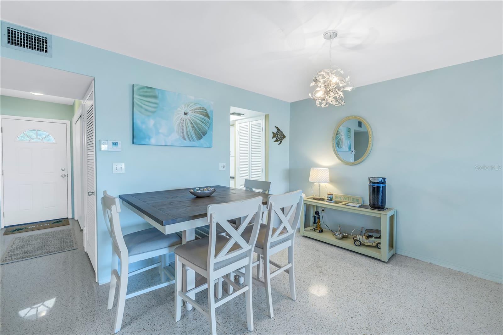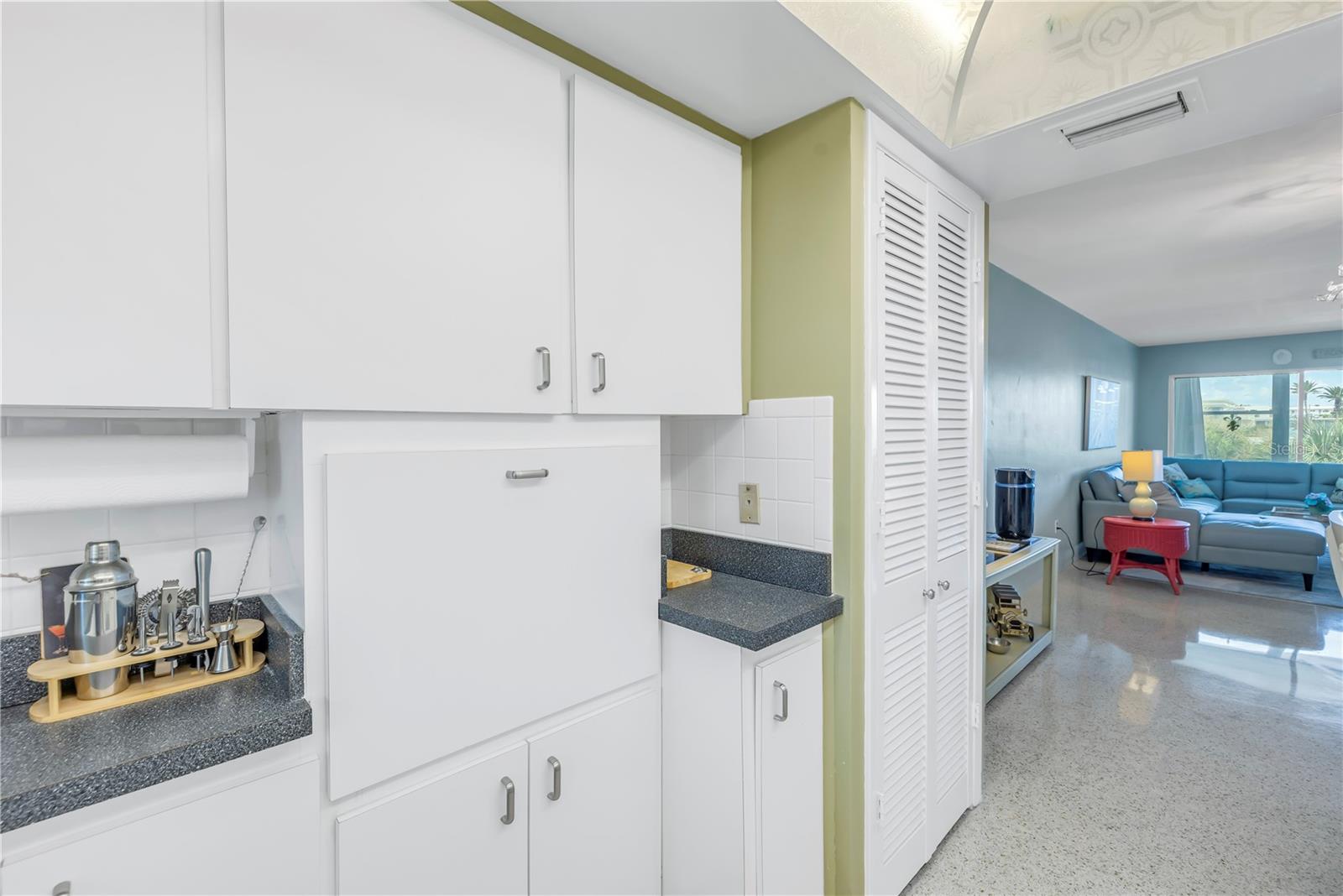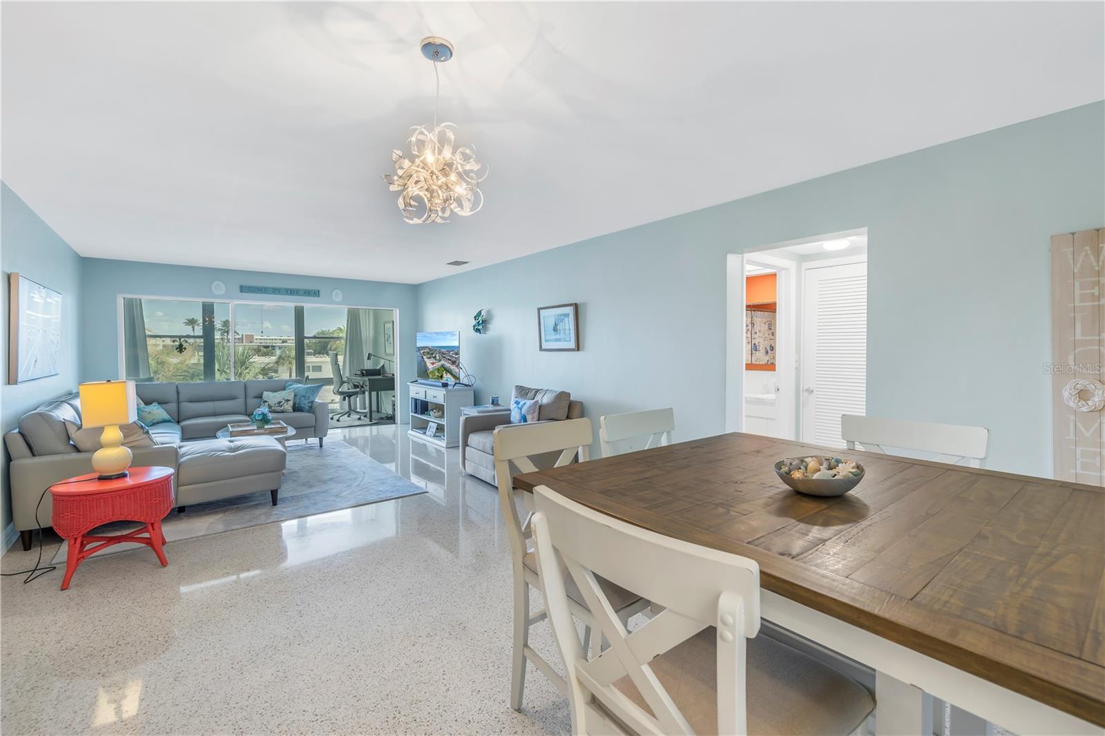 Welcome to Paradise says this very nicely updated turnkey 1 bed 1 bath condo. Beautifully polished terrazzo flows throughout the unit along with throw rugs to make it comfy and cozy. The condo is decorated with all new furniture that stays with the condo. It features a beautiful tall breakfast table and matching wood stools. There is a large sectional, coffee table and tv that looks out onto the large glassed in sunroom with new windows overlooking the wonderful courtyard setting. Inside is a spacious kitchen, with nice cabinets and appliances. There is a nice bathroom with tub and shower and a very large bedroom with a generous sized closet. Just outside the door is a laundry room, storage closet, elevator and stairs. Outside your front door is a nice view of the bay and boats and a straight shot to the pool and common ground. This condo is a short walk to Gulf Blvd and everything it has to offer with restaurants, shops, bars and more. This condo is across the street to the sugary sand of St Pete Beach. This condo is located a short drive from Treasure Island Beach and Gulfport and everything it has to offer downtown. You are minutes from Corey Avenue shopping district and a short drive to Pass a Grille Beach and Fort De Soto State Park. Last but not least this condo comes with a 1 Year Warranty for peace of mind. Buyers will love living in Paradise in their new beautifully decorated turnkey condo!
