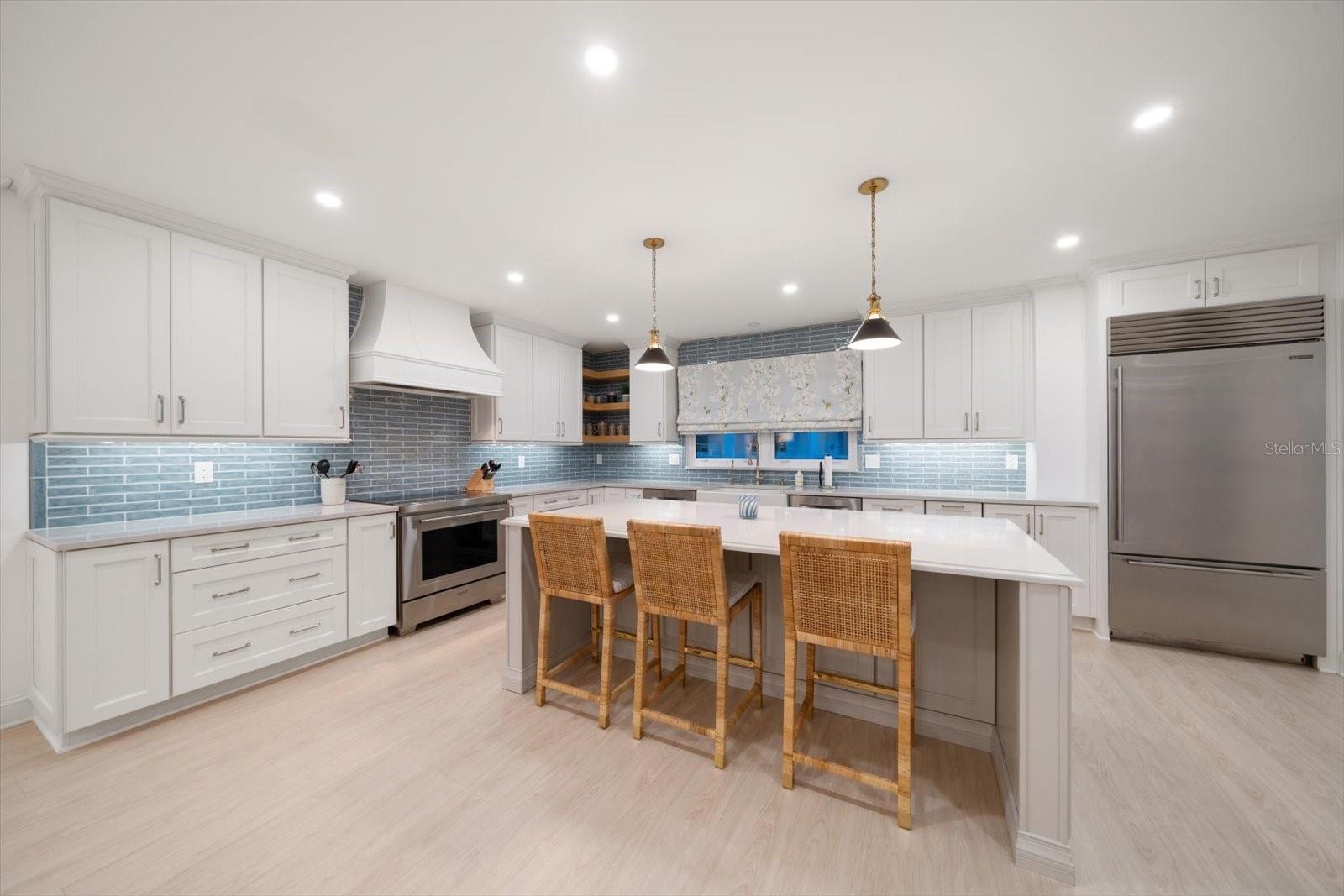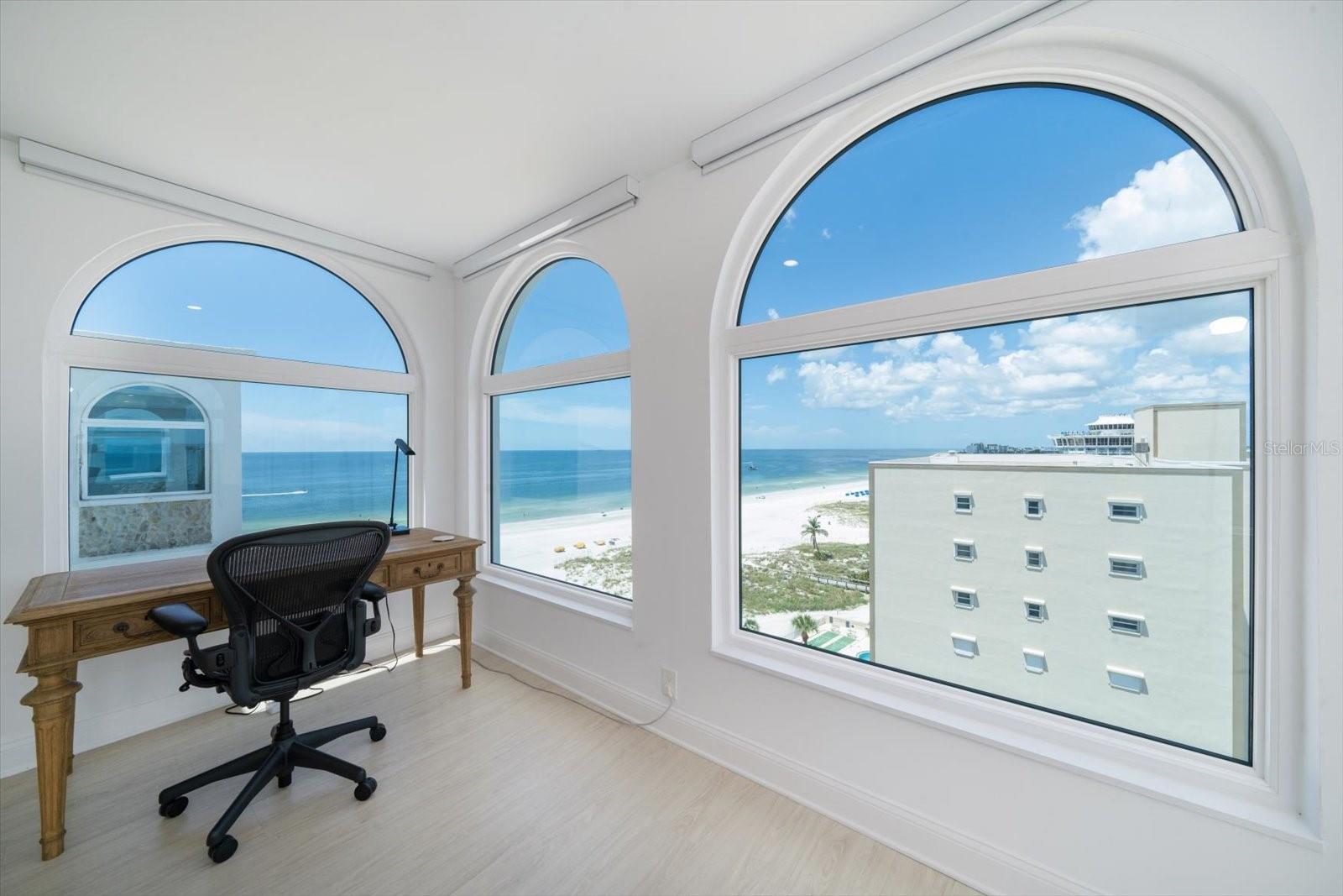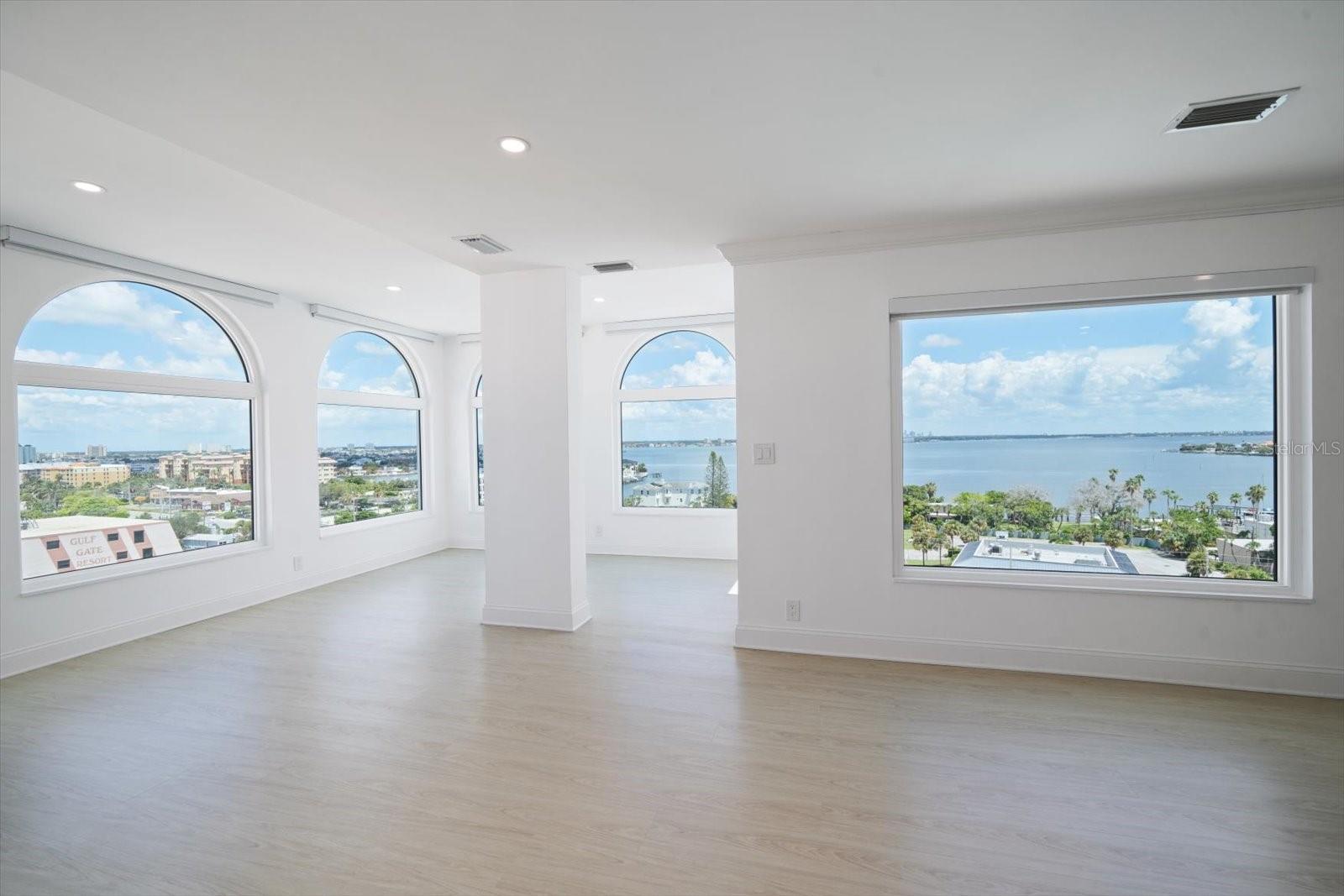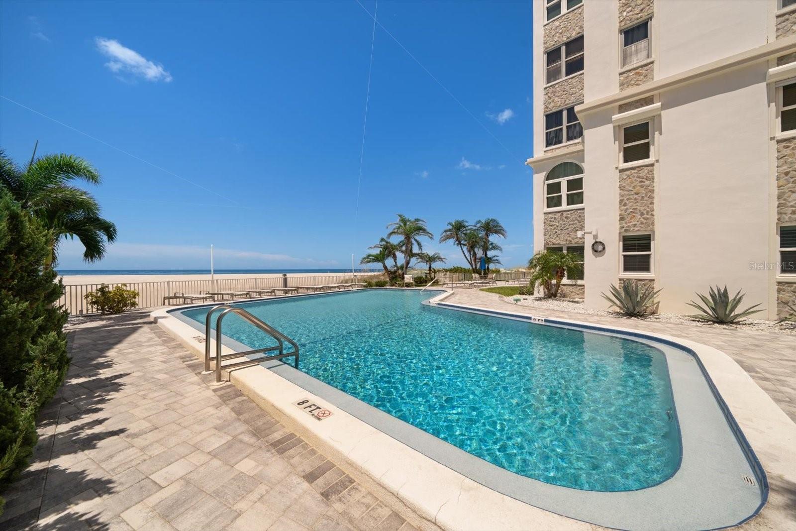 Discover the epitome of coastal luxury in this exquisite 4BR/4.5BA Gulf-front penthouse condo in the private and secure Beau Monde community on beautiful St. Pete Beach. Recently renovated with a respectful nod to its past grandeur, and attention to detail at every turn, this residence effortlessly blends classic elegance with modern sophistication. As you step inside, an expanse of arched windows instantly captivates, framing breathtaking views of white sand beaches and crystal-clear waters. The open floor plan invites you to a stunning kitchen, where custom tile work, stainless steel appliances, and a huge island with seating under sleek pendant lighting set the stage for culinary delights. Adjacent to this culinary haven, a catering kitchen/pantry and a large laundry room with a separate entrance add convenience and practicality to luxurious living. The versatile floor plan also includes a private suite, currently used as a game room and additional living space, complete with a spacious bedroom and ensuite bath—perfect as an in-law or nanny suite. The spacious dining and family rooms are bathed in natural light, offering expansive Gulf views that promise serene sunsets. Retreat to the primary bedroom, a sanctuary of comfort, with walls of arched windows offering endless vistas of both the Intracoastal Waterway and the Gulf of Mexico. The spa-like ensuite features double sink vanities, abundant storage, a huge walk-in shower, and an oversized walk-in closet with custom shelving. The additional bedrooms are equally impressive, beautifully appointed with custom closets and tastefully designed bathrooms, ensuring comfort for every guest. This recently renovated complex includes a fitness center, two tennis/pickleball courts, BBQ and picnic areas, and a heated community pool. Conveniently located near shopping, local restaurants, and two airports, this residence offers a living experience steeped in luxury, enveloped by the tranquil azure waters and spectacular sunsets that have become the signature of this esteemed community.