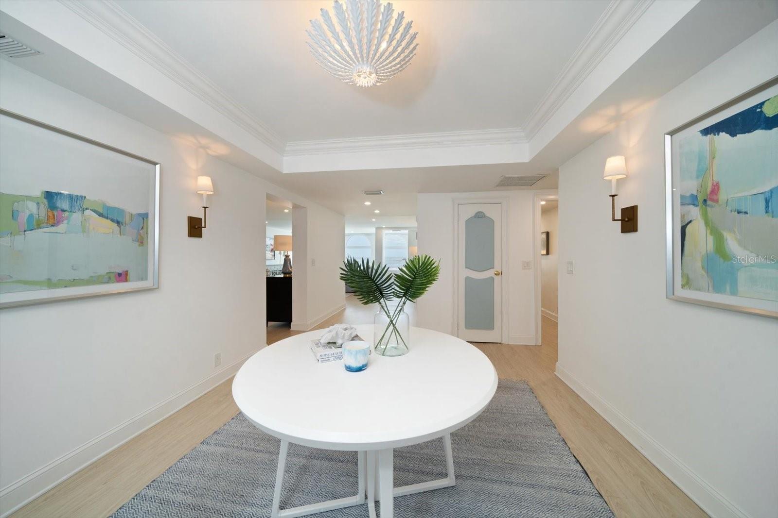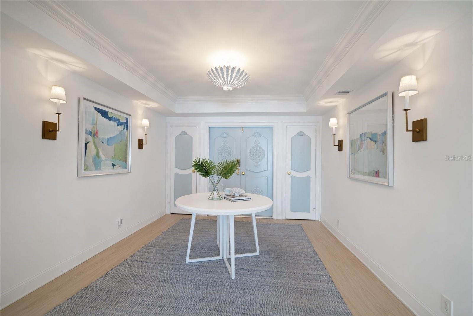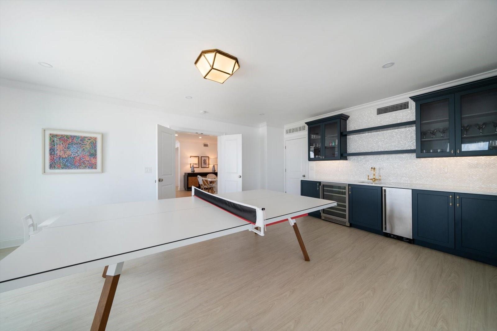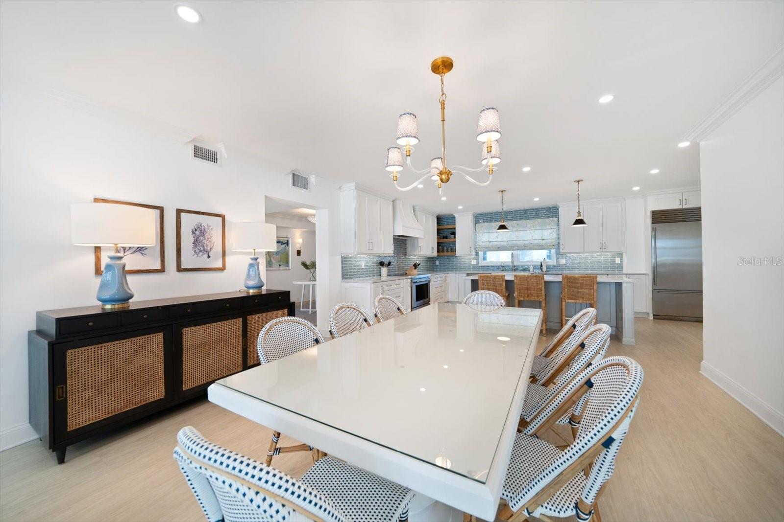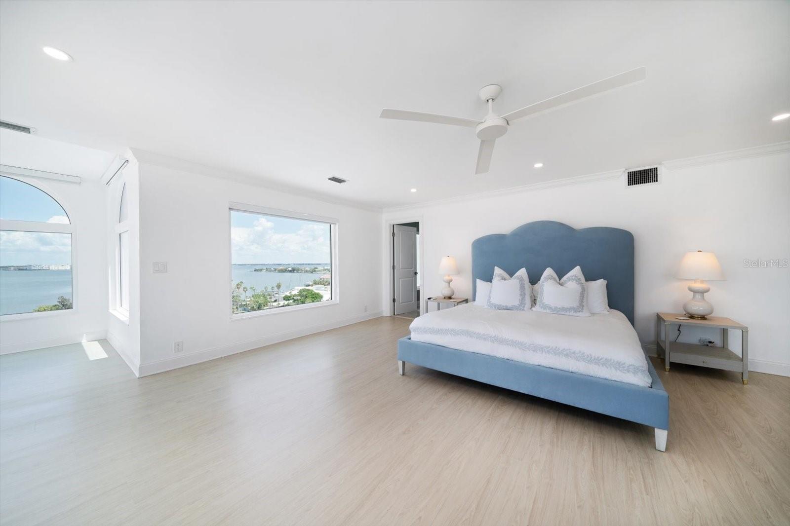 Discover the epitome of coastal luxury in this exquisite 4BR/4.5BA Gulf-front penthouse condo in the private and secure Beau Monde community on beautiful St. Pete Beach. Recently renovated with a respectful nod to its past grandeur, and attention to detail at every turn, this residence effortlessly blends classic elegance with modern sophistication. As you step inside, an expanse of arched windows instantly captivates, framing breathtaking views of white sand beaches and crystal-clear waters. The open floor plan invites you to a stunning kitchen, where custom tile work, stainless steel appliances, and a huge island with seating under sleek pendant lighting set the stage for culinary delights. Adjacent to this culinary haven, a catering kitchen/pantry and a large laundry room with a separate entrance add convenience and practicality to luxurious living. The versatile floor plan also includes a private suite, currently used as a game room and additional living space, complete with a spacious bedroom and ensuite bath—perfect as an in-law or nanny suite. The spacious dining and family rooms are bathed in natural light, offering expansive Gulf views that promise serene sunsets. Retreat to the primary bedroom, a sanctuary of comfort, with walls of arched windows offering endless vistas of both the Intracoastal Waterway and the Gulf of Mexico. The spa-like ensuite features double sink vanities, abundant storage, a huge walk-in shower, and an oversized walk-in closet with custom shelving. The additional bedrooms are equally impressive, beautifully appointed with custom closets and tastefully designed bathrooms, ensuring comfort for every guest. This recently renovated complex includes a fitness center, two tennis/pickleball courts, BBQ and picnic areas, and a heated community pool. Conveniently located near shopping, local restaurants, and two airports, this residence offers a living experience steeped in luxury, enveloped by the tranquil azure waters and spectacular sunsets that have become the signature of this esteemed community.