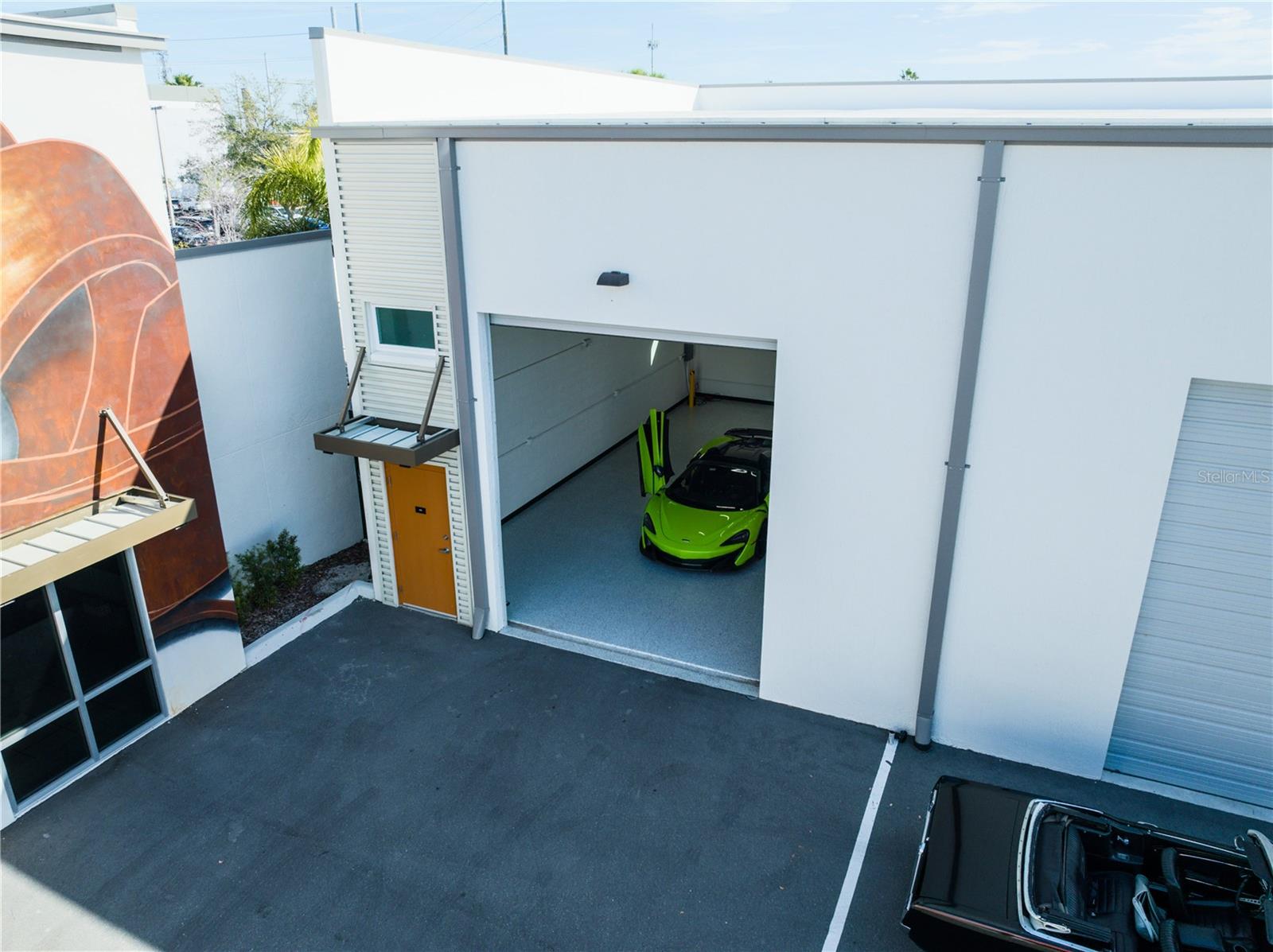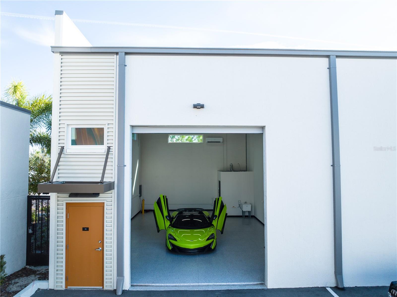Motocave is the premier destination for luxury motor and high-value storage. Featuring 43 thoughtfully designed units this rare, corner unit 987 SF garage condo is directly adjacent to the state of the art luxury clubhouse. This unit offers a secure and flexible solution for the discerning local automotive collector or someone needing additional private, secure automotive storage during to park their vehicles or RV. This car condo already has a built out restroom, wall mounted HVAC unit, and oversized utility sink. Strategically located to serve the Greater Tampa Bay area, Motocave is a short 5.6 miles from St. Pete Clearwater International Airport and 13 miles from Tampa International Airport. Situated on 3.7 acres, the site is fully secured with concrete perimeter walls and an automatic gated entrance, providing peace of mind around the clock. Constructed with durability and quality in mind, Motocave features concrete block walls, a precast concrete roof structure, fire sprinkler systems, oversized roll-up doors, and an upscale owners’ Clubhouse designed for comfort and connection. Neighboring 960 SF unit condo also available for purchase to combine both units.