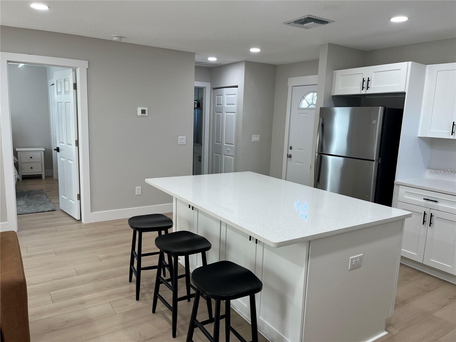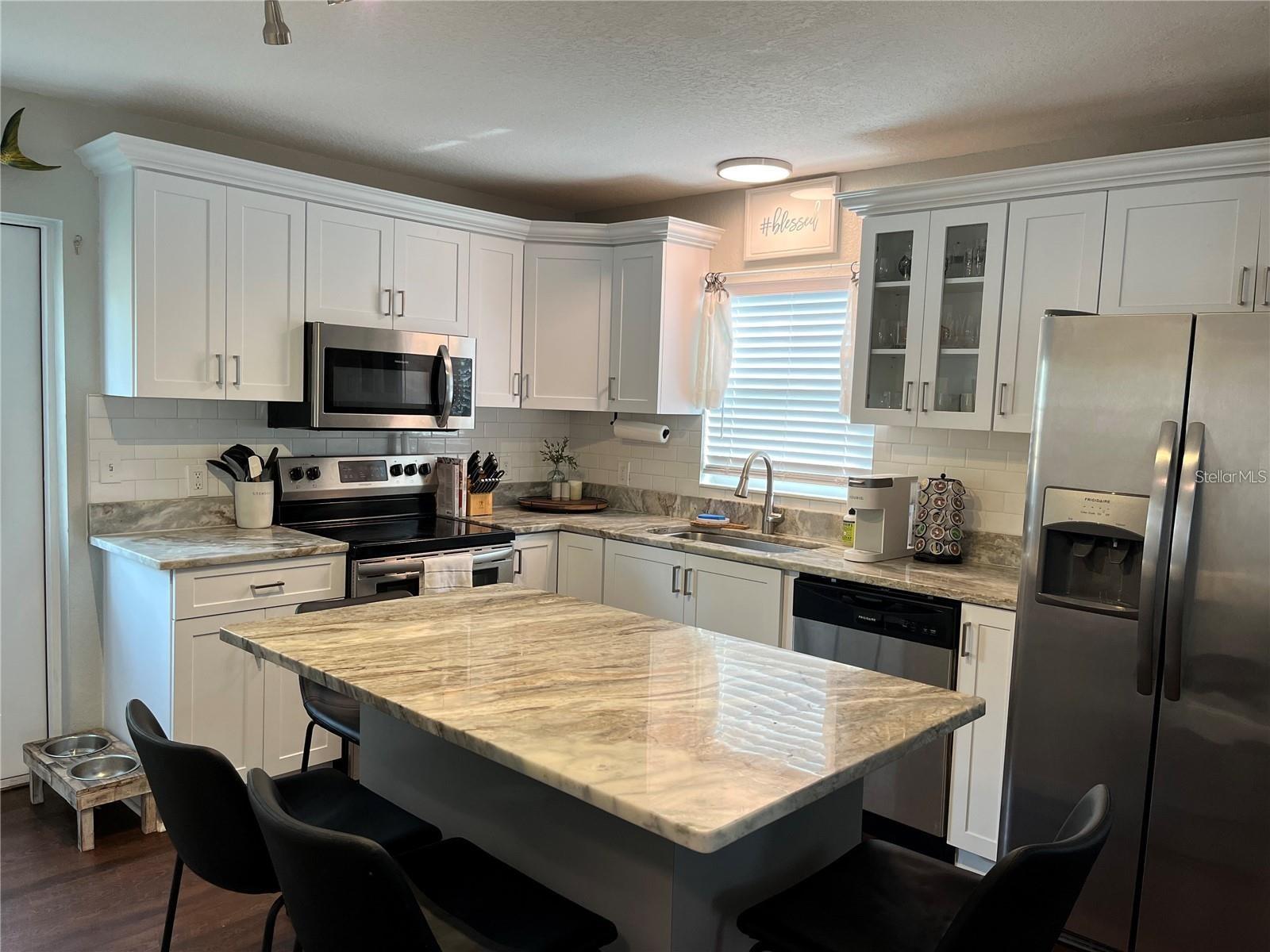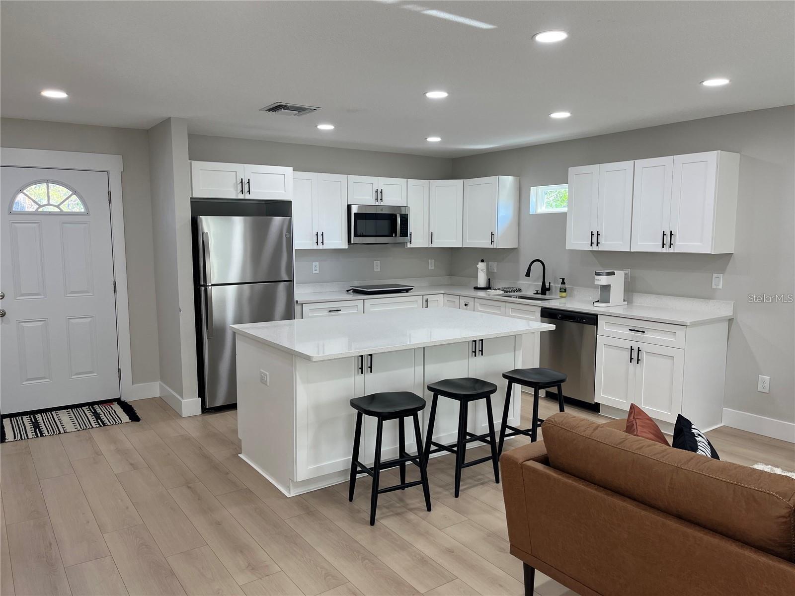 Now is your chance to own a beautifully updated 2-unit property in the heart of St. Petersburg, available for a limited time only! This rare gem sits in one of the city’s most desirable and fast-growing neighborhoods, surrounded by exciting new developments, top-tier restaurants, popular breweries, art galleries, and endless walkable activities. Block home, non flood zone! The front residence features a spacious 3 bed, 2 bath layout with 1,235 sq ft of modern living space. Recently remodeled, the home boasts an open floor plan that seamlessly connects a large living room to a bright, welcoming kitchen, perfect for entertaining. The kitchen features brand new cabinets, stunning Fantasy Brown granite countertops, new appliances, and a perfectly sized island for dining or gathering. Stylish new flooring contrasts beautifully with soft gray walls, providing a clean, contemporary canvas for any décor. Both bathrooms have been tastefully updated, with the primary suite featuring a dual shower heads and a sleek barn-style glass door. Step outside into your own private oasis. The massive backyard is fully fenced, filled with lush turf, and shaded by mature trees. Enjoy Florida’s beautiful weather year-round under the expansive covered patio, ideal for entertaining, relaxing, or playing. But that’s not all, this property also includes a detached two-car garage with a modern 1 bed, 1 bath 704 sq ft unit above, built in 2022. The garage features a roll-up door that opens to the patio plus a 2 car garage door. The homes have Keyless entry, a Reme Halo Air Purifier in the HVAC system and a Nest thermostat for added comfort and efficiency. The garage apartment is fully furnished. Both units are currently occupied by tenants on a month-to-month lease, offering fantastic rental potential or guest flexibility. Furniture can be included in the sale if desired.