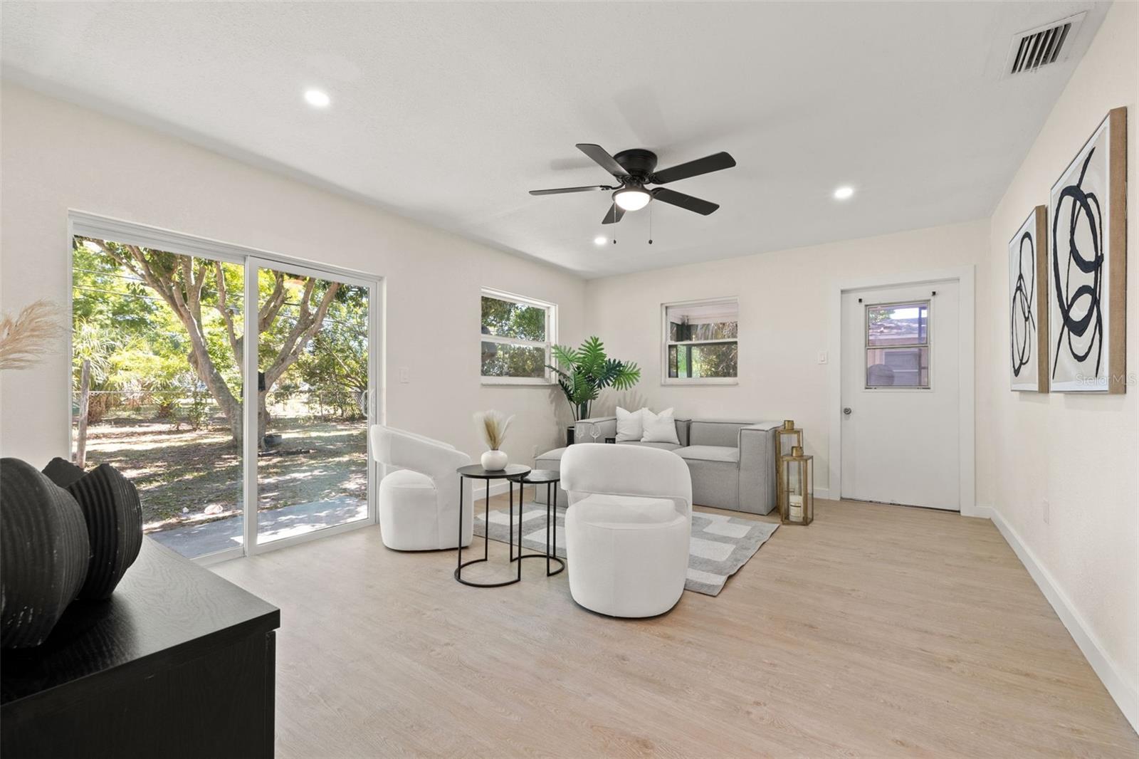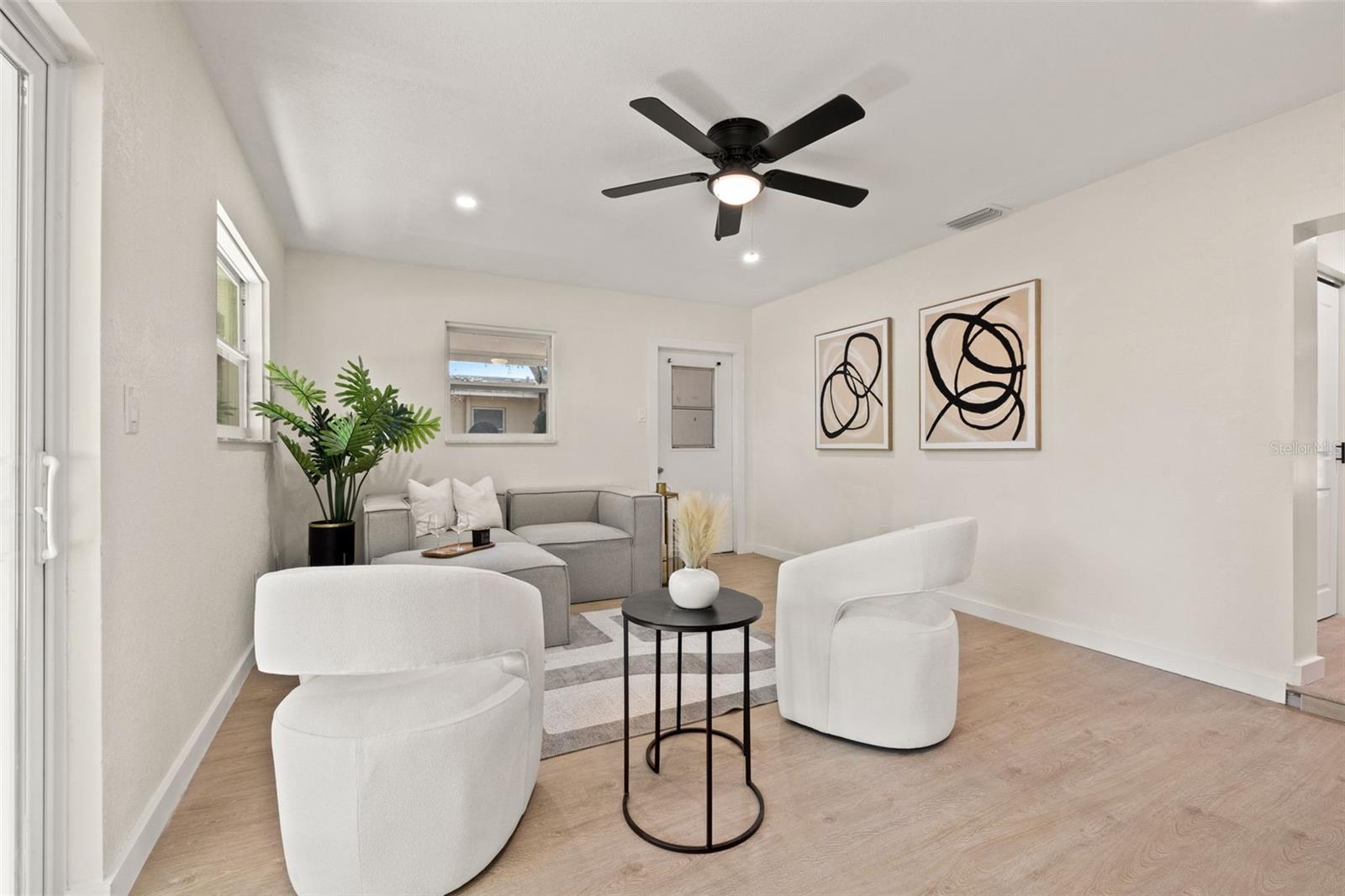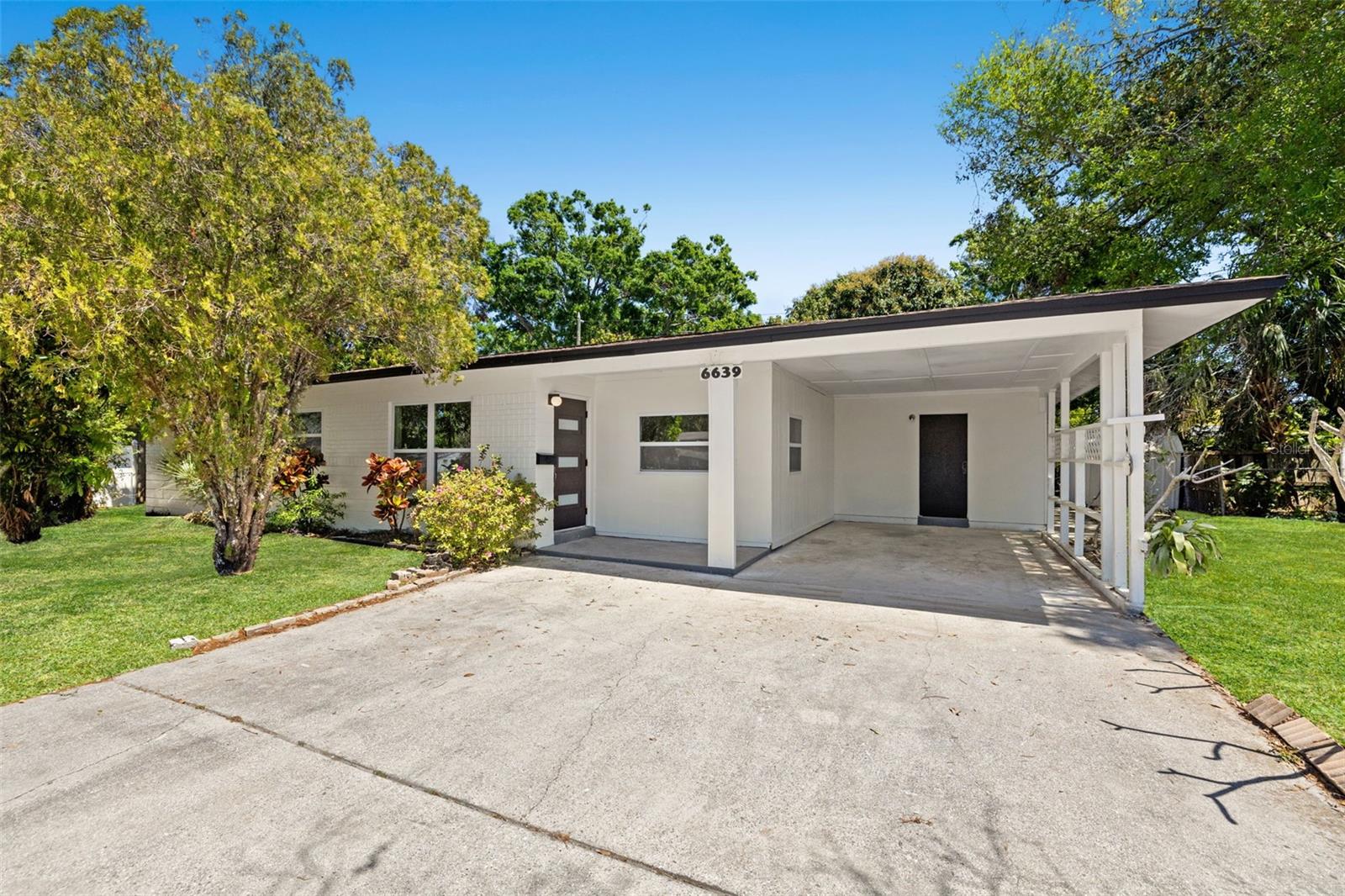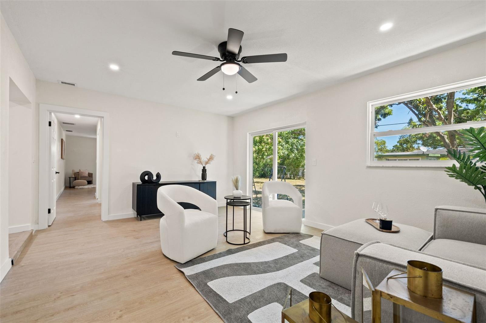 **This home was not affected by the recent hurricanes and has never flooded** Sitting on nearly a quarter of an acre, this 4 bed, 2 bath home has been tastefully renovated. The home has lots of living space that makes it functional for every day life and easy to entertain. The kitchen has light wood cabinets that are topped with quartz countertops and complete with stainless steel appliances. The kitchen island is large in size providing plenty of countertop space and has double sided cabinets for ample storage. The kitchen flows nicely into a space that could be used as a dining space, or additional living space. The space has a large window that allows for natural light and overlooks the front yard. On the other side of the kitchen, the traditional living room has plenty of space for a large sectional and also has large glass sliders leading out to the backyard and a screened in lanai. The primary suite is privately tucked away towards the back of the home and has plenty of space for a king size bed. The primary suite is complete with an adjacent primary bath with a walk-in shower with beautiful floor to ceiling tile and an oversized walk-in closet. There are three other bedrooms located separately on the other side of the home that are large in size and share an updated bath. Located quietly away from the bedrooms, off of the kitchen, is a bonus flex room that would be the perfect home office. The home also has a large indoor laundry room with plenty of space for storage. Outside, off of the main living room, is a screened-in lanai that offers plenty of space for outdoor living. The backyard has plenty of green space to relax and play beyond the screen on this oversized lot. Located in the popular neighborhood of Meadowlawn this home is central to all that St. Pete has to offer. This is a quiet neighborhood with tree lined streets providing lots of opportunities for bike riding, walking, and jogging. The home is just 5 minutes to Fossil Park where there are multiple sports courts, ball fields, a playground, swimming pool and walking paths. Fossil Park is the perfect place to enjoy and relax under the Florida sun. The home is conveniently located less than 5 minutes to the local elementary, middle, and high schools and you are also just a short drive away from Downtown St. Pete and popular Central Ave filled with local shops and restaurants. The popular white sand beaches of the Gulf of Mexico are nearby and the Tampa International Airport is only 20 minutes away making travel and commuting easy.