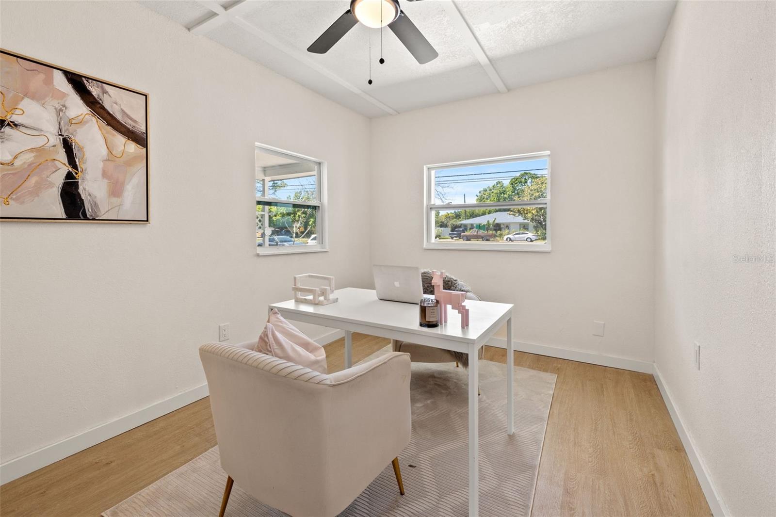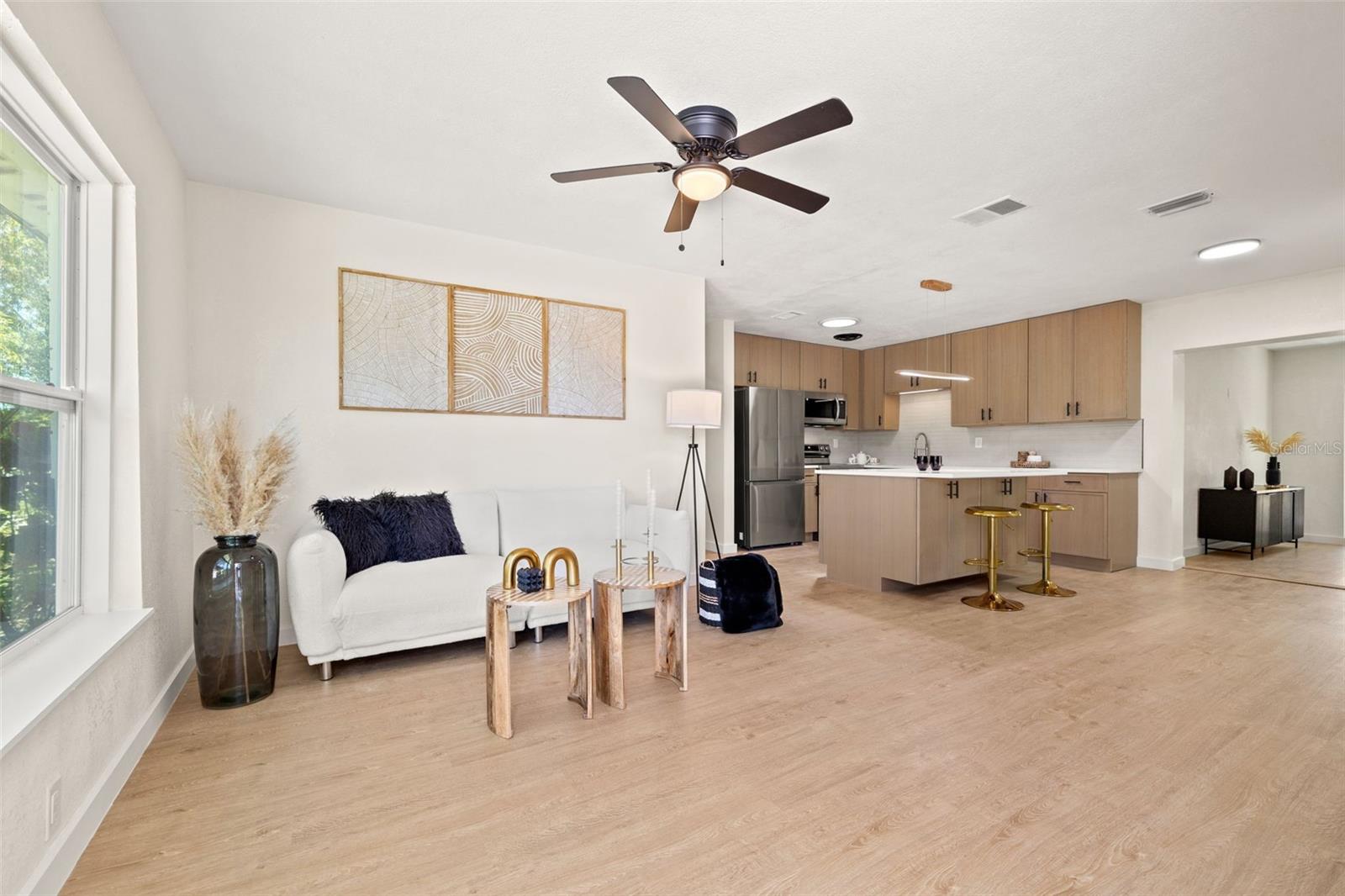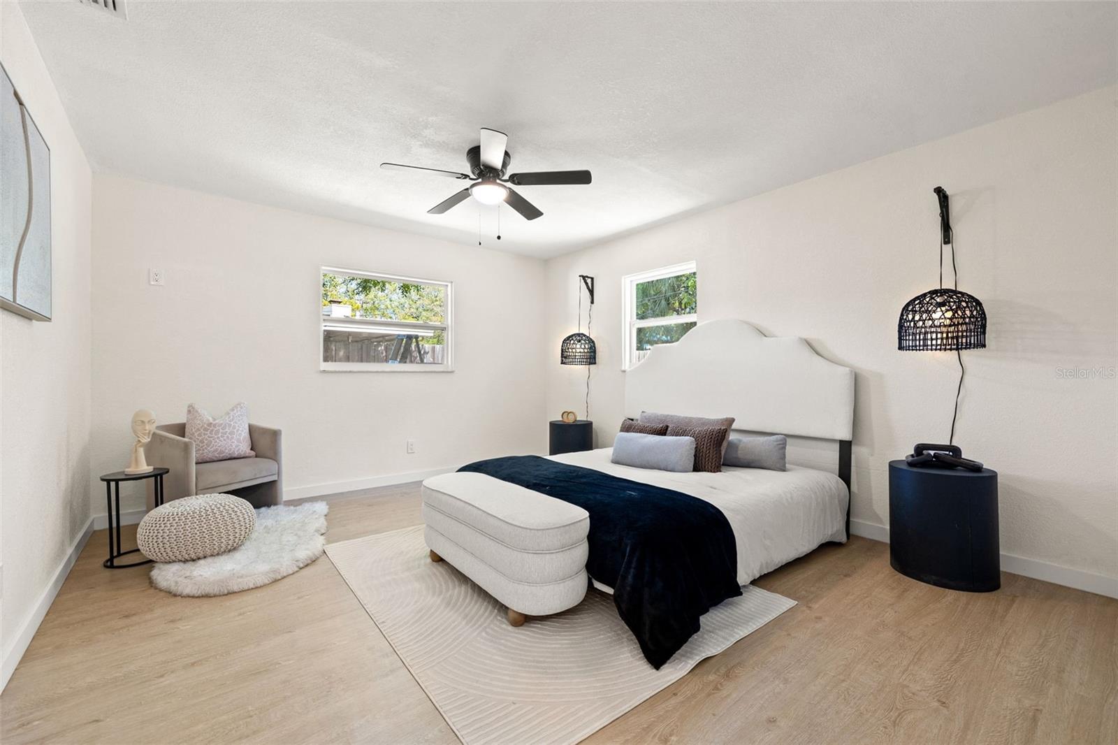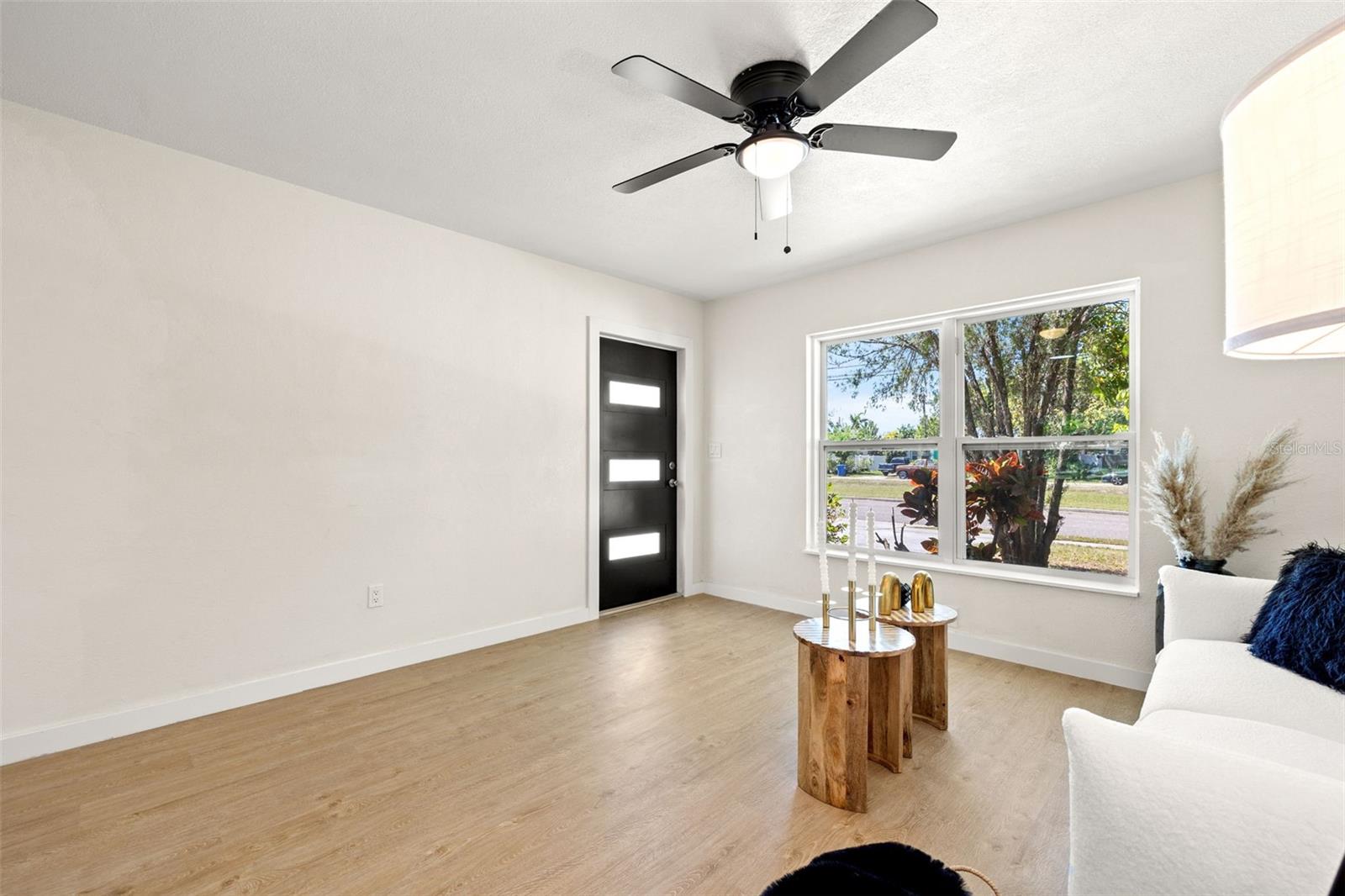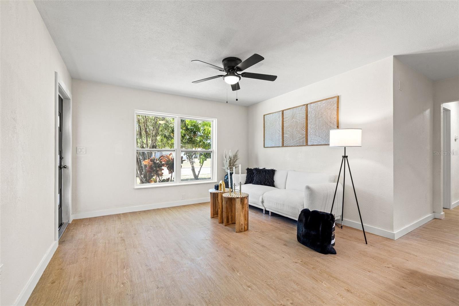 **This home was not affected by the recent hurricanes and has never flooded** Sitting on nearly a quarter of an acre, this 4 bed, 2 bath home has been tastefully renovated. The home has lots of living space that makes it functional for every day life and easy to entertain. The kitchen has light wood cabinets that are topped with quartz countertops and complete with stainless steel appliances. The kitchen island is large in size providing plenty of countertop space and has double sided cabinets for ample storage. The kitchen flows nicely into a space that could be used as a dining space, or additional living space. The space has a large window that allows for natural light and overlooks the front yard. On the other side of the kitchen, the traditional living room has plenty of space for a large sectional and also has large glass sliders leading out to the backyard and a screened in lanai. The primary suite is privately tucked away towards the back of the home and has plenty of space for a king size bed. The primary suite is complete with an adjacent primary bath with a walk-in shower with beautiful floor to ceiling tile and an oversized walk-in closet. There are three other bedrooms located separately on the other side of the home that are large in size and share an updated bath. Located quietly away from the bedrooms, off of the kitchen, is a bonus flex room that would be the perfect home office. The home also has a large indoor laundry room with plenty of space for storage. Outside, off of the main living room, is a screened-in lanai that offers plenty of space for outdoor living. The backyard has plenty of green space to relax and play beyond the screen on this oversized lot. Located in the popular neighborhood of Meadowlawn this home is central to all that St. Pete has to offer. This is a quiet neighborhood with tree lined streets providing lots of opportunities for bike riding, walking, and jogging. The home is just 5 minutes to Fossil Park where there are multiple sports courts, ball fields, a playground, swimming pool and walking paths. Fossil Park is the perfect place to enjoy and relax under the Florida sun. The home is conveniently located less than 5 minutes to the local elementary, middle, and high schools and you are also just a short drive away from Downtown St. Pete and popular Central Ave filled with local shops and restaurants. The popular white sand beaches of the Gulf of Mexico are nearby and the Tampa International Airport is only 20 minutes away making travel and commuting easy.