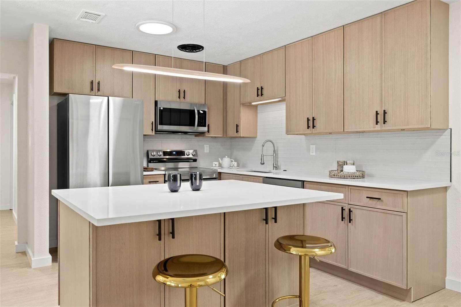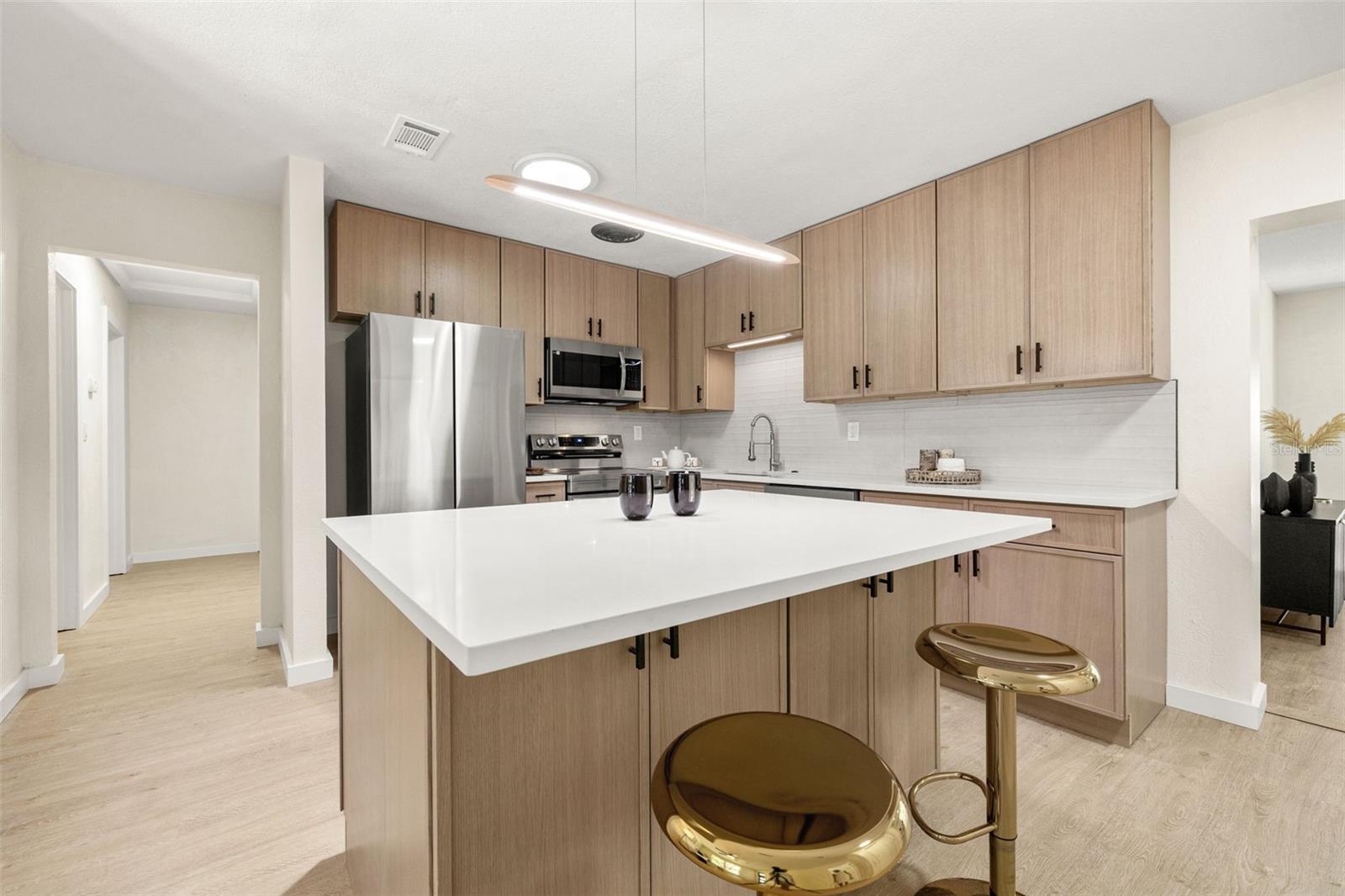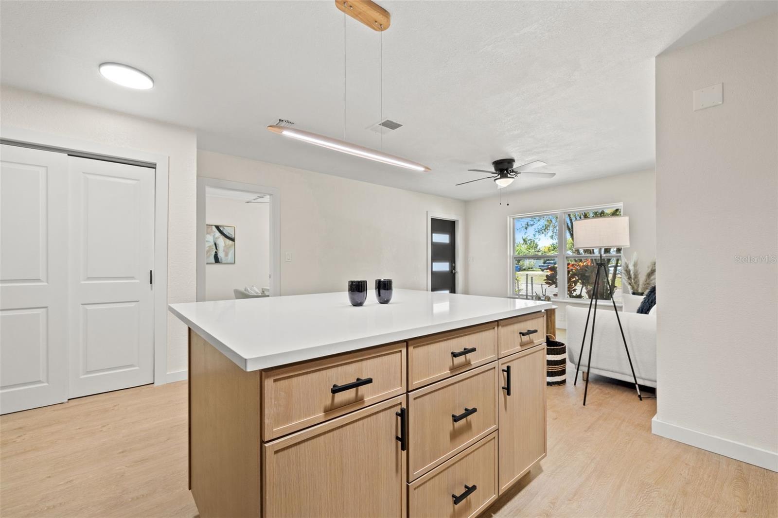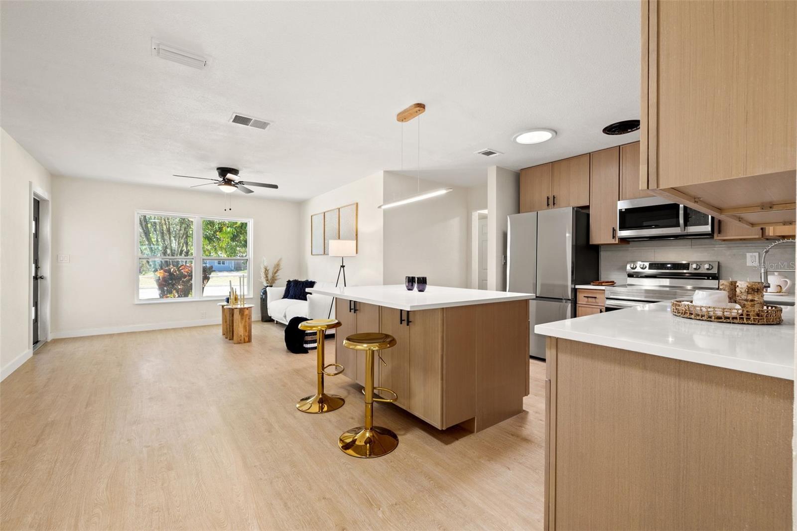 **This home was not affected by the recent hurricanes and has never flooded** Sitting on nearly a quarter of an acre, this 4 bed, 2 bath home has been tastefully renovated. The home has lots of living space that makes it functional for every day life and easy to entertain. The kitchen has light wood cabinets that are topped with quartz countertops and complete with stainless steel appliances. The kitchen island is large in size providing plenty of countertop space and has double sided cabinets for ample storage. The kitchen flows nicely into a space that could be used as a dining space, or additional living space. The space has a large window that allows for natural light and overlooks the front yard. On the other side of the kitchen, the traditional living room has plenty of space for a large sectional and also has large glass sliders leading out to the backyard and a screened in lanai. The primary suite is privately tucked away towards the back of the home and has plenty of space for a king size bed. The primary suite is complete with an adjacent primary bath with a walk-in shower with beautiful floor to ceiling tile and an oversized walk-in closet. There are three other bedrooms located separately on the other side of the home that are large in size and share an updated bath. Located quietly away from the bedrooms, off of the kitchen, is a bonus flex room that would be the perfect home office. The home also has a large indoor laundry room with plenty of space for storage. Outside, off of the main living room, is a screened-in lanai that offers plenty of space for outdoor living. The backyard has plenty of green space to relax and play beyond the screen on this oversized lot. Located in the popular neighborhood of Meadowlawn this home is central to all that St. Pete has to offer. This is a quiet neighborhood with tree lined streets providing lots of opportunities for bike riding, walking, and jogging. The home is just 5 minutes to Fossil Park where there are multiple sports courts, ball fields, a playground, swimming pool and walking paths. Fossil Park is the perfect place to enjoy and relax under the Florida sun. The home is conveniently located less than 5 minutes to the local elementary, middle, and high schools and you are also just a short drive away from Downtown St. Pete and popular Central Ave filled with local shops and restaurants. The popular white sand beaches of the Gulf of Mexico are nearby and the Tampa International Airport is only 20 minutes away making travel and commuting easy.