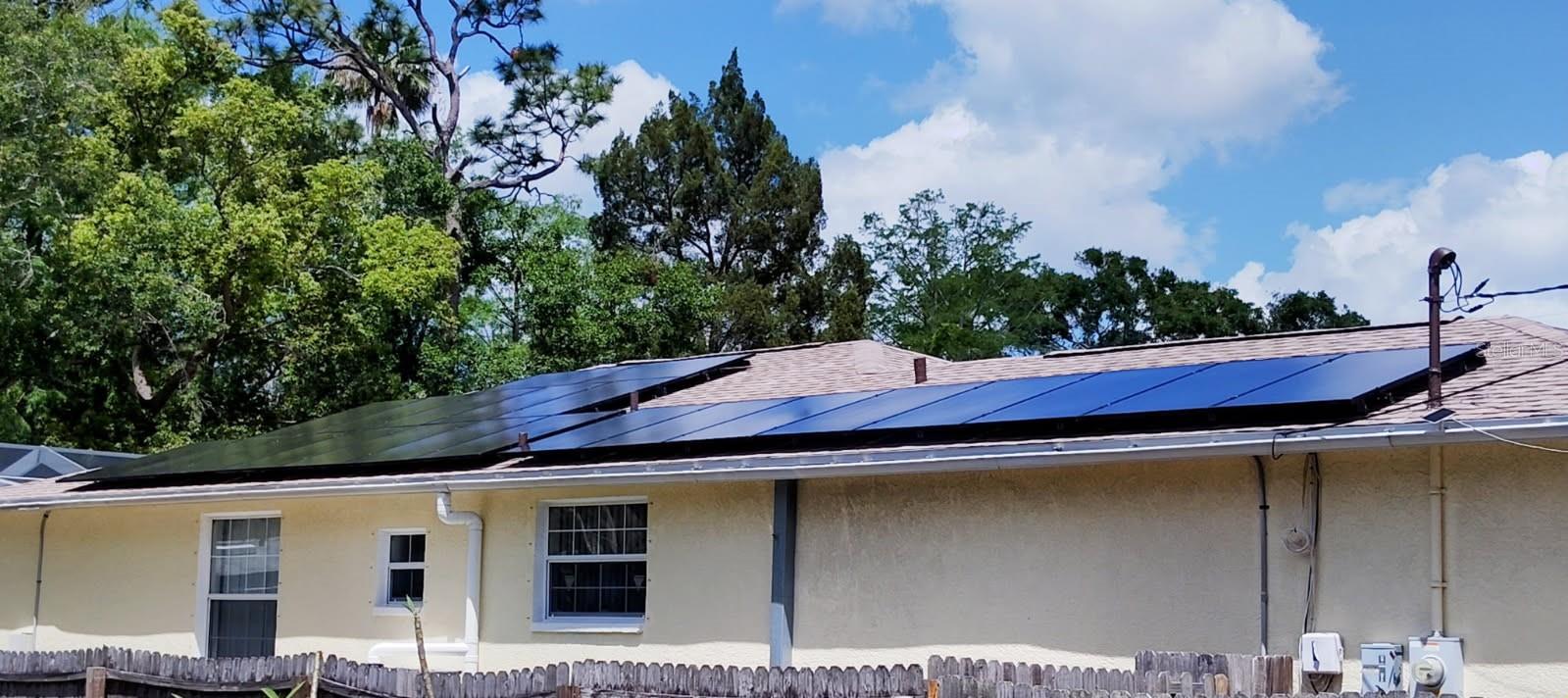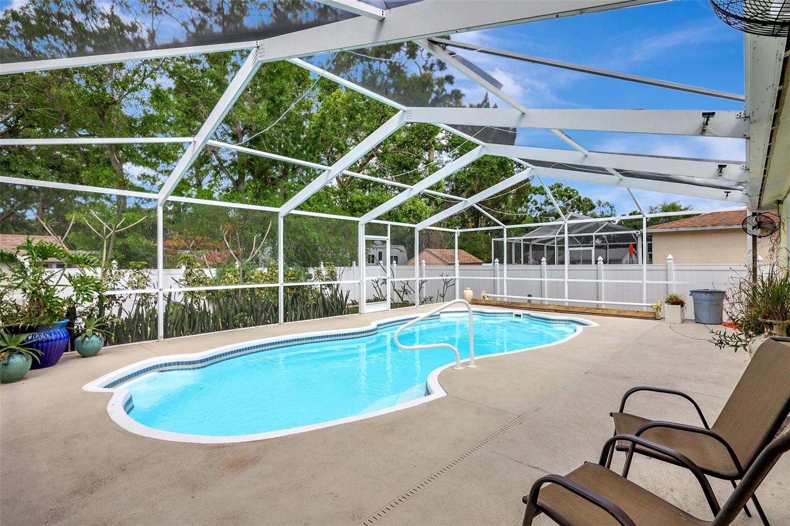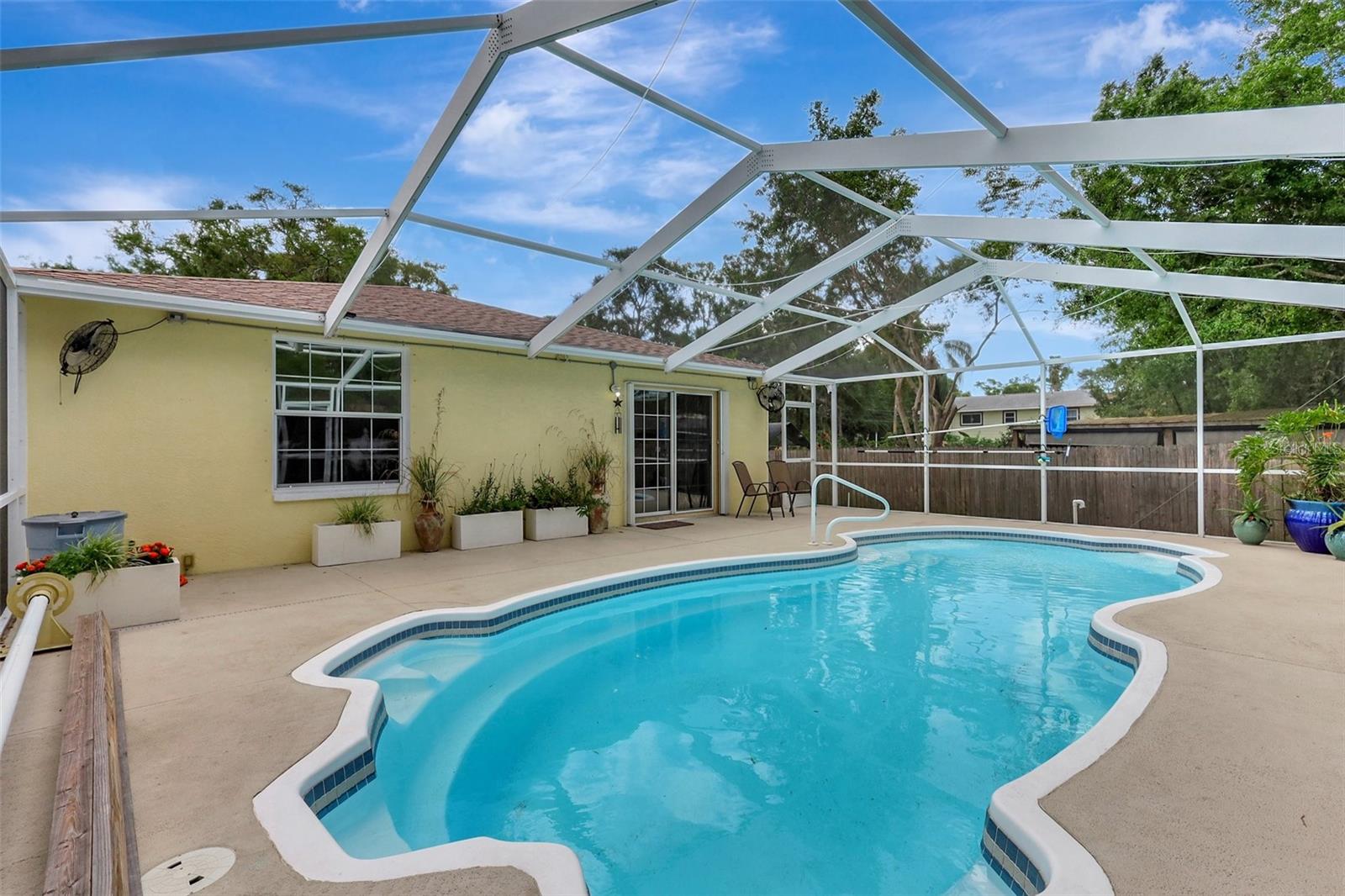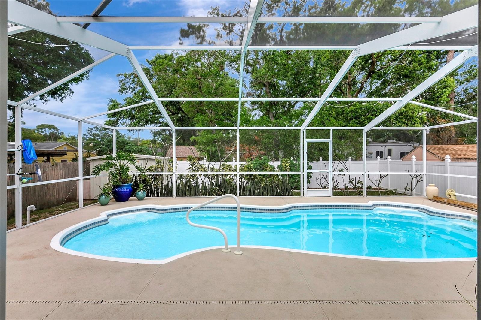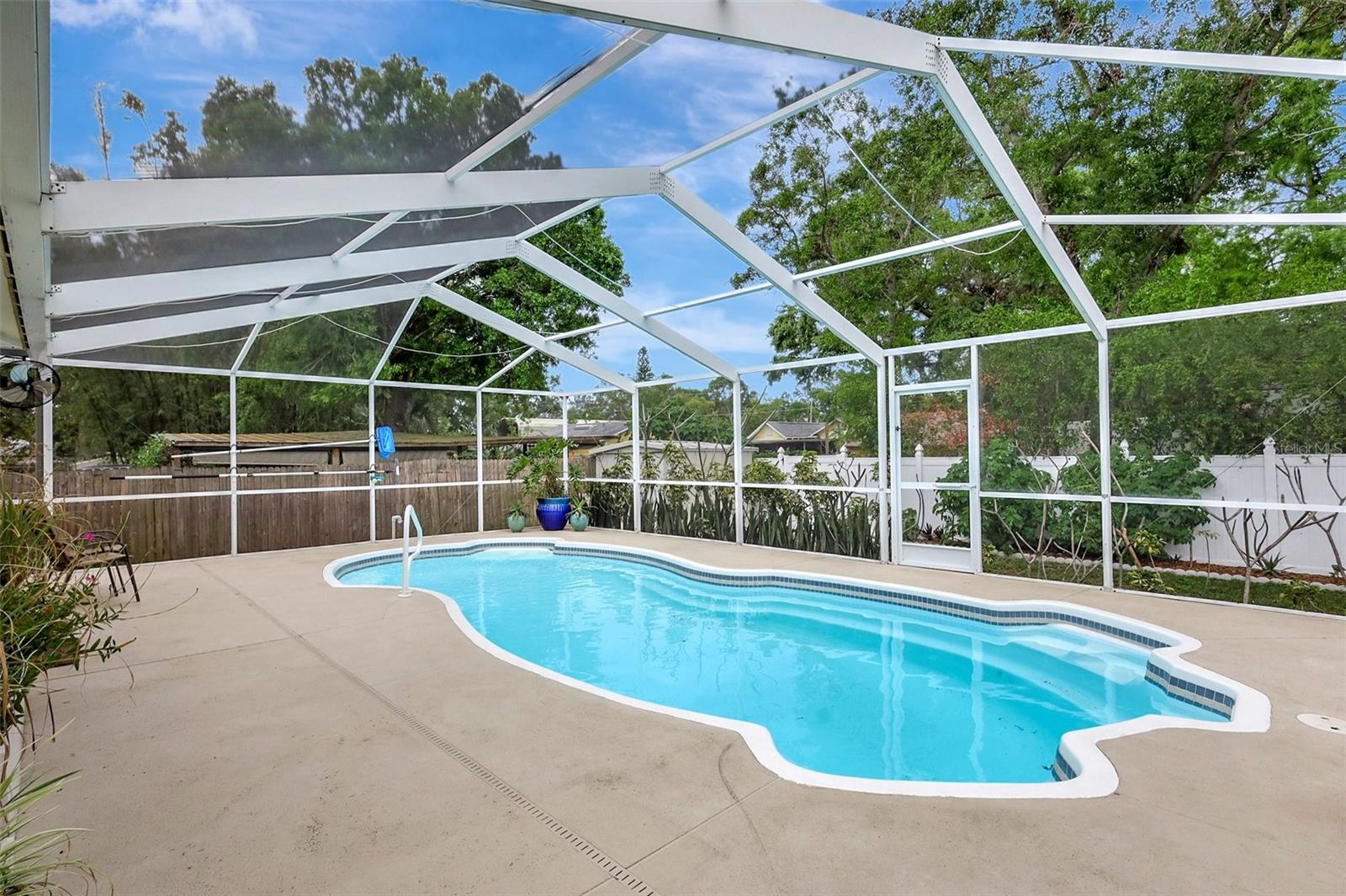 $25,000 Price Improvement on this stunning Pool Home Just Minutes from Gulf Beaches! No HOA and No Flood Insurance! Roof is only days old and the paid off solar system provides an unbelievably low electric bill. Welcome to this charming 3-bedroom, 2-bath, 2-car garage pool home, perfectly situated less than 15 minutes from the Gulf of Mexico. Built in 2002, this solid block construction home offers both comfort and flexibility—ideal as a primary residence, seasonal retreat, or short-term rental (located in unincorporated Pinellas County where short-term rentals are permitted). Step inside to an inviting open-concept living, kitchen, and dining area featuring vaulted ceilings and abundant natural light. The kitchen boasts solid-surface Corian countertops, while the majority of the home is finished with low-maintenance laminate flooring. Elegant custom 4-inch plantation shutters add a refined touch throughout. The spacious primary suite includes a generous walk-in closet and an ensuite bath. The versatile third bedroom opens directly to the pool area and can easily function as an office, den, or guest room. Out back, enjoy your own private tropical oasis complete with a screened-in pool, fenced yard, and plenty of space for entertaining. Fire up the grill and invite friends and family over for a relaxing day by the pool! Additional eco-friendly and cost-saving features include solar power, rainwater cisterns for water conservation, hurricane shutters, and no flood insurance required. Conveniently located near Gulf beaches, Tyrone Square Mall, Target, Publix, movie theaters, and a variety of dining options—this home truly offers the best of Florida living. Don’t miss your chance to own this slice of paradise—schedule your showing today!