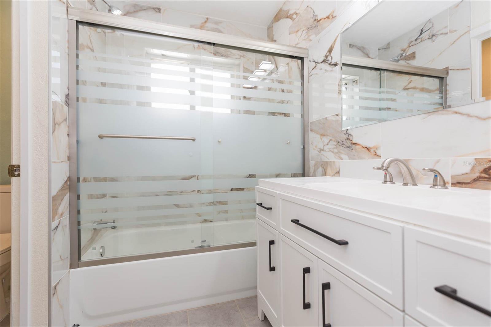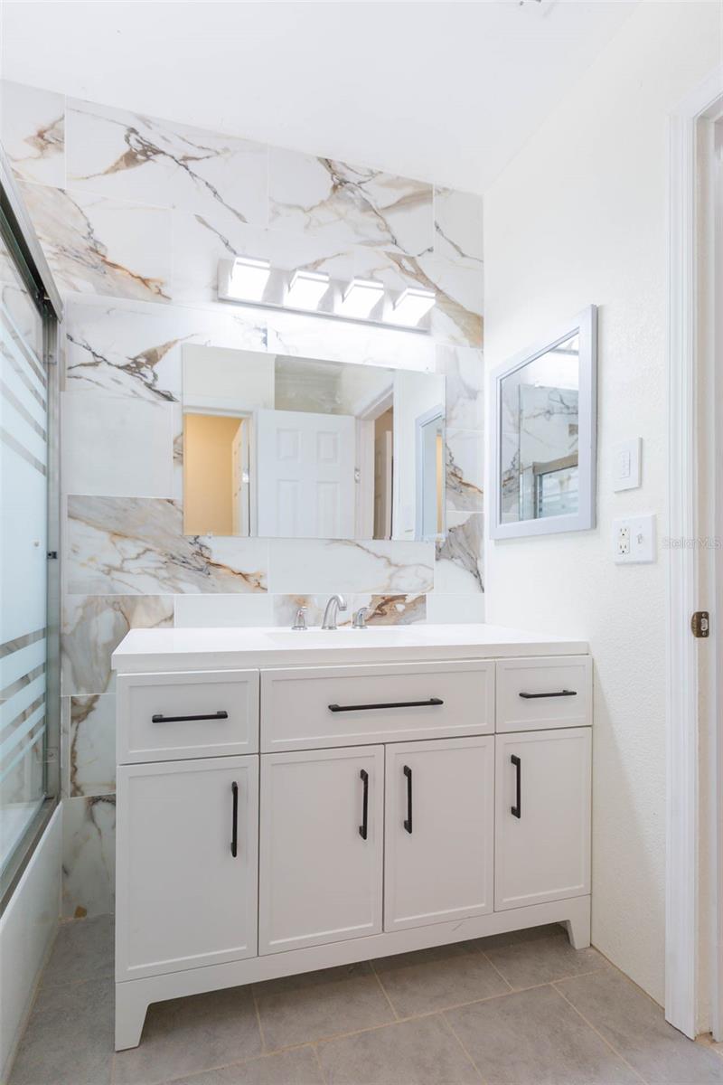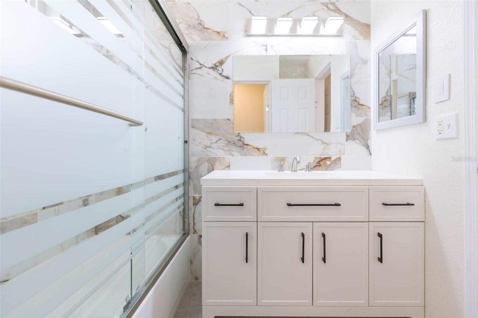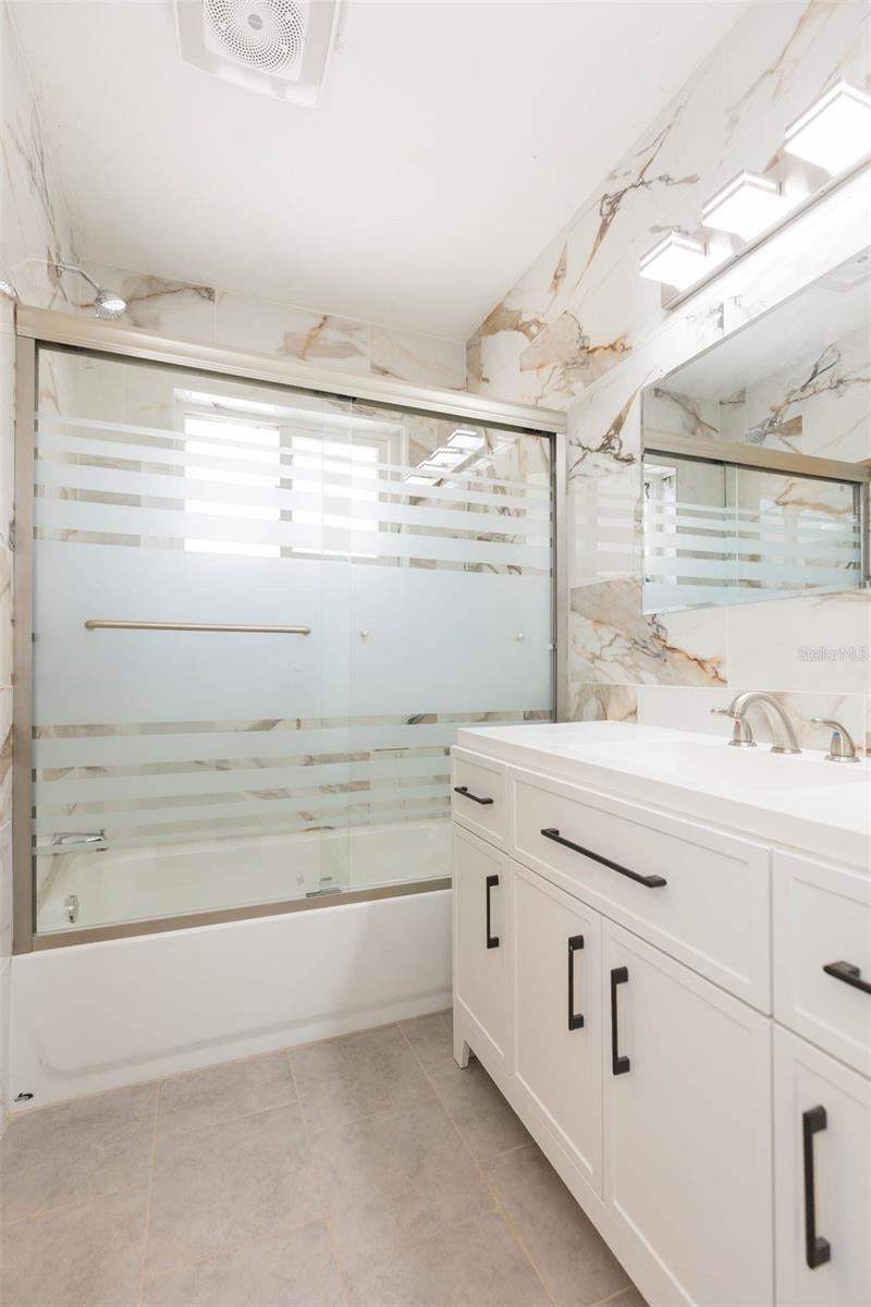 Tastefully Renovated Concrete Block Home in Beautiful Riviera Bay! Nestled on a quiet dead-end street, this beautifully updated concrete block home sits on an oversized lot in the desirable Riviera Bay neighborhood. A newer roof adds peace of mind, while the spacious, open-concept kitchen boasts modern grey cabinetry, a stylish backsplash, and luxurious quartz countertops. The large kitchen island features an undermount sink, upgraded faucet, and elegant pendant lighting—perfect for entertaining. Neutral tones complement the diagonal tile flooring, 5-inch baseboards, and abundant recessed lighting that enhance the bright, inviting living space. The renovated bathroom features a sleek new vanity, updated mirror, and a tiled tub that reaches the ceiling for a contemporary look. Step outside to enjoy your private, fully fenced backyard complete with a tranquil covered patio—ideal for relaxing or hosting guests. Don’t miss your chance to own this move-in ready gem in Riviera Bay. Schedule your private showing today!