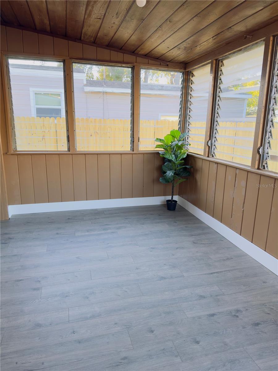 Cozy charming 2/1 home in a very quiet popular neighborhood outside flood zone. FLOOD INSURANCE NOT REQUIRED. Property had no damage from Milton and Helene. TURN KEY freshly remodeled, including new paint in and out, water resistant laminate flooring, bathroom, kitchen and AC. Enclosed large Florida room with washer/dryer hook up. HUGE fenced in back yard that backs into the alley. Plenty of room for a pool or even an ADU ( accessory dwelling unit), as permitted by the city. Detached one car garage. Minutes to downtown Saint Pete and the beaches.