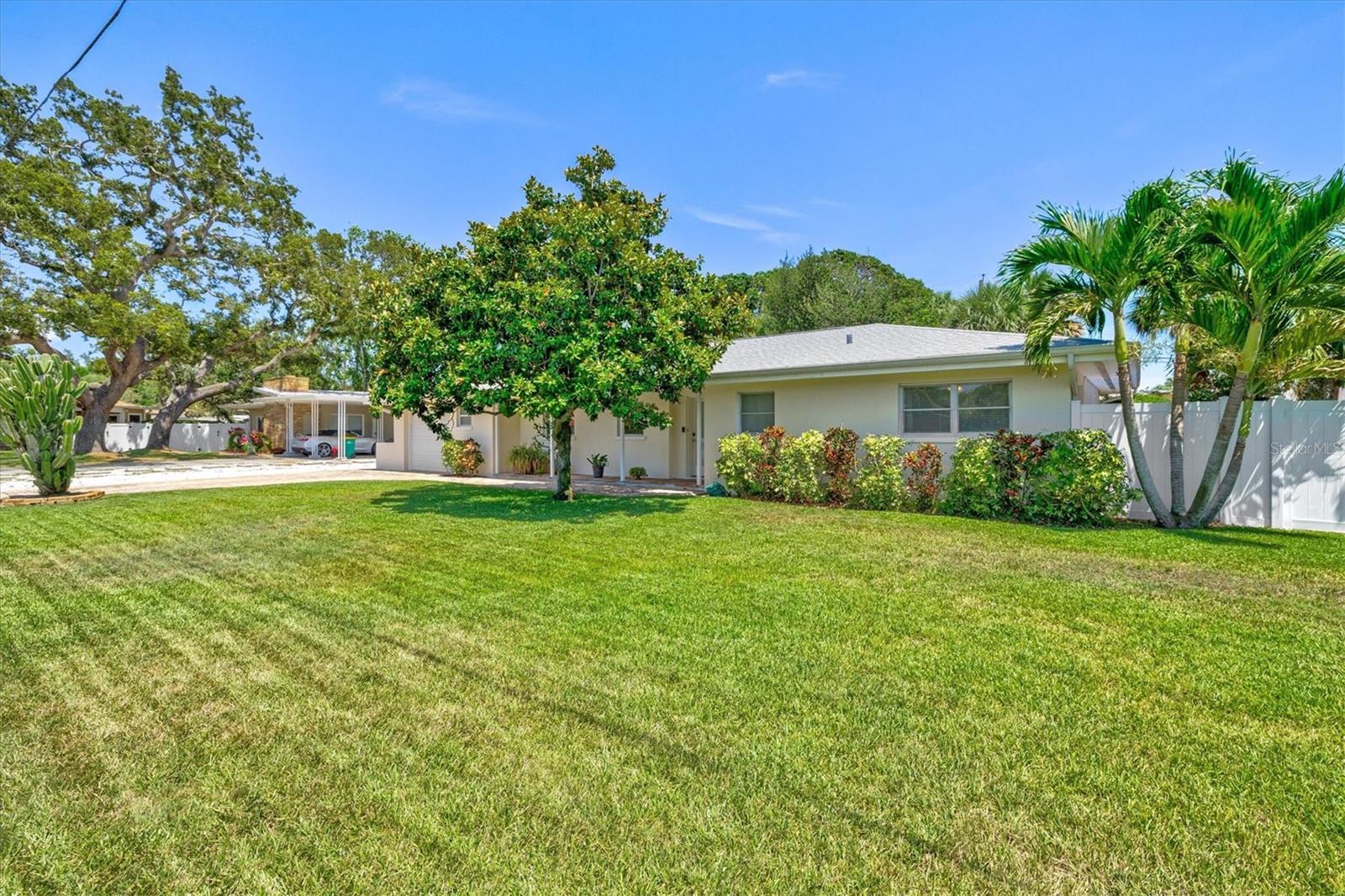 Your Florida dream awaits with this stunning 3-bedroom, 2.5-bathroom home nestled in the coveted Pasadena Golf Club Estates neighborhood. This impeccably maintained home sits on an oversized lot adorned with spectacular magnolia and palm trees, offering rarely found privacy and space. NO FLOODING, which provides additional peace of mind. The expansive, fully fenced backyard features a perfect patio for grilling and game day gatherings, while a convenient double gate provides side access to additional storage space ideal for boat or vehicle parking behind the fence. Step inside to gorgeous terrazzo floors that flow seamlessly throughout, creating a timeless foundation that epitomizes classic Florida charm. The heart of the home features an updated kitchen with an impressive array of cabinets and storage options that will delight any home chef, perfect for both everyday living and entertaining, while the vintage bathrooms add character and authentic period appeal. Practical luxury defines this property with an extra-deep garage providing abundant storage and workshop space. Recent major improvements include new roof/shingles installed in 2020 and a complete HVAC system replacement in 2019, ensuring worry-free living for years to come. Location is everything, and this home delivers. You're just minutes from breathtaking beach sunsets, making evening strolls along the best beaches in the country part of your daily routine. The proximity to the Stetson University College of Law and the Pasadena Yacht & Country Club adds to the area's prestige and convenience. Enjoy exceptional value with no HOA fees, reasonable insurance rates, and the added benefit of lower property taxes thanks to the home's location in unincorporated Pinellas County. This is more than a house—it's the gateway to the peaceful Florida lifestyle you've been dreaming of.