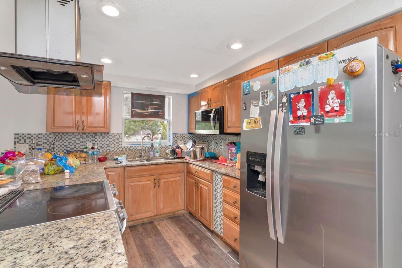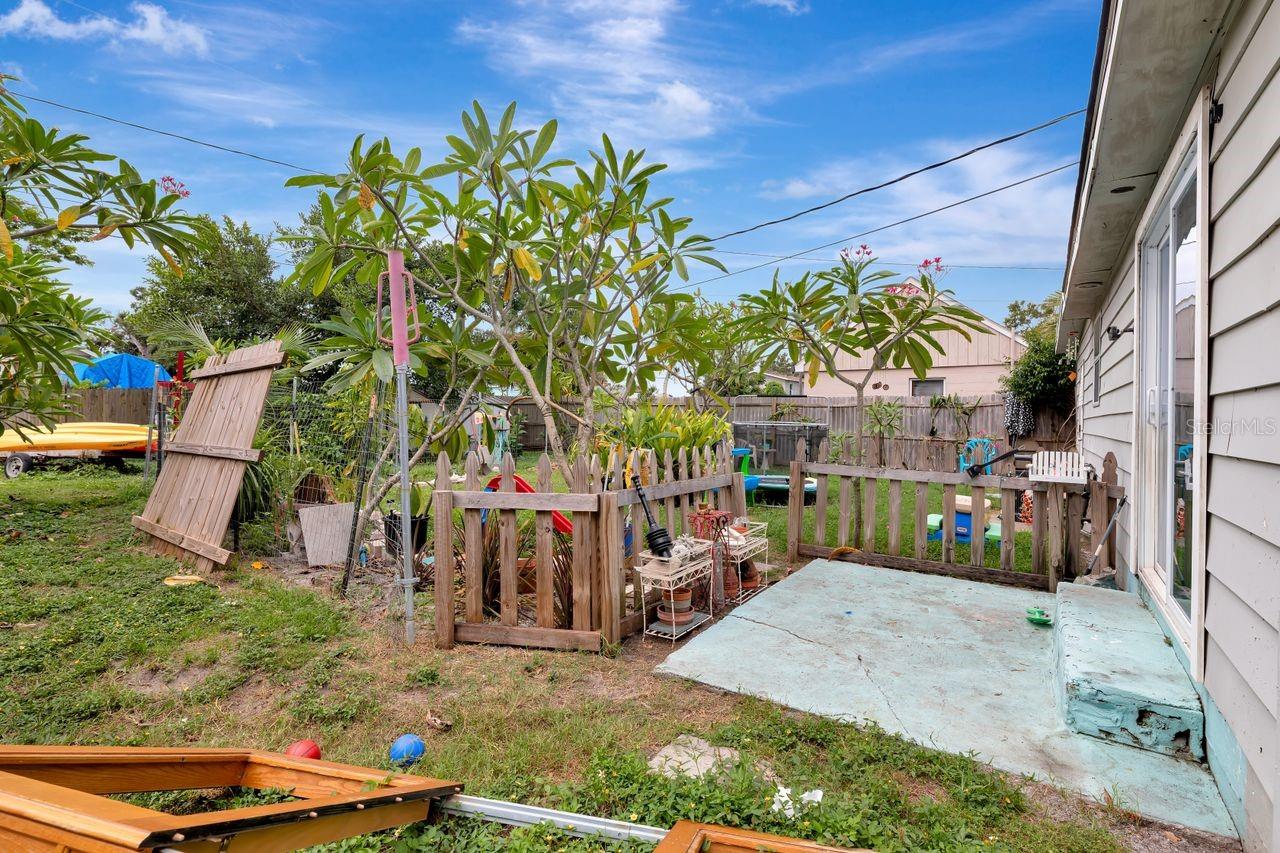 Welcome to this beautifully renovated three bedroom, two bath bungalow in the heart of St. Petersburg. This home offers over 1,500 square feet of thoughtfully updated space with an open, light-filled floor plan. Inside, you’ll immediately notice the modern touches including newer energy-efficient windows, fresh flooring, recessed LED lighting, and tasteful finishes that blend comfort and style. The chef’s kitchen is a highlight featuring stainless steel Whirlpool appliances, granite countertops with an elegant backsplash, a breakfast bar, solid wood cabinetry and ample storage space. The living room is anchored by a charming wood-burning fireplace with original stone detailing, creating a cozy gathering focal point. Sliding doors lead seamlessly to the fenced backyard, a nice outdoor retreat. There’s functional side and back yard access through a double gate to accommodate RV, boat or additional vehicle parking via rear alley. Both bathrooms have been fully renovated. The primary suite includes a sitting area, walk-in closet and an en-suite bath. The secondary bath has a separate shower plus a large vanity with built-in shelving for added convenience.