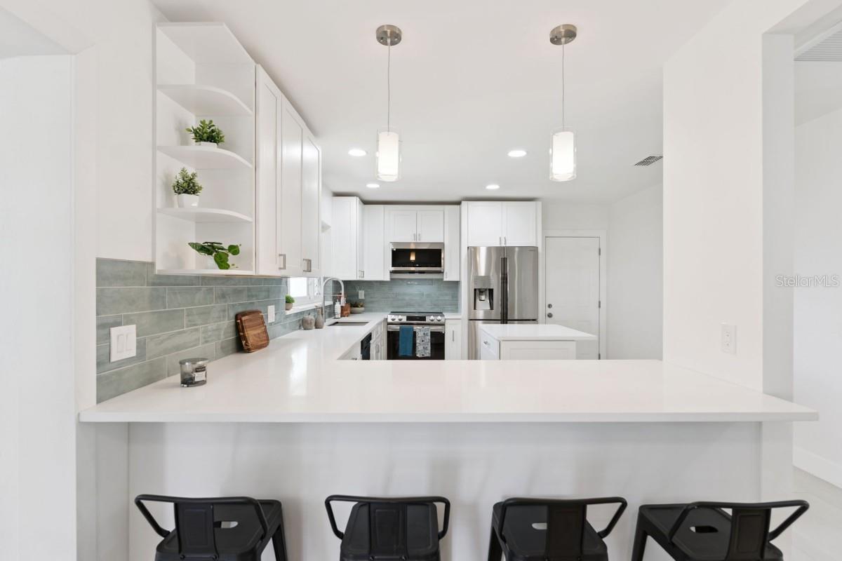 Step into elegance and comfort in the heart of the highly sought-after Tropical Shores neighborhood. This beautiful home offers a seamless blend of modern sophistication and Florida charm, just minutes from the vibrant downtown St. Petersburg waterfront. Inside, you'll find spacious living areas filled with natural light, featuring new large porcelain tile flooring, quartz countertops, stainless steel appliances, and sleek modern finishes throughout. The layout is perfect for everyday living and entertaining guests with style. Outside, you'll find the expansive corner lot with plenty of room to park your boat is enhanced by a mature mango tree that bears fruit each spring, while coastal breezes has a tranquil and refreshing outdoor ambiance. Whether you're enjoying quiet mornings in the sunroom or hosting lively gatherings, this home delivers both form and function. Located just a short distance from Lassing Park, Bayfront Hospital, and the arts, dining, and cultural attractions of downtown St. Pete, you'll love the unbeatable combination of comfort, convenience, and coastal living.
