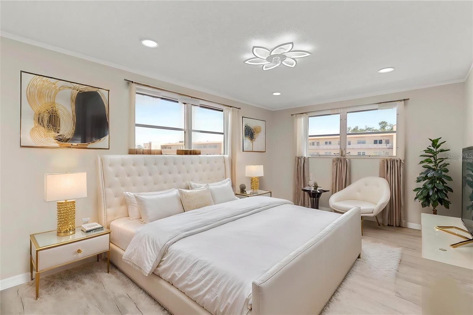 This beautifully updated 2-bedroom, 2 full-bath home offers modern comfort and standout upgrades throughout, including two spacious walk-in closets—and even better, it offers a 1% lender credit at closing. Fully remodeled in 2026, it features premium quartz countertops, classic shaker cabinets, and a sleek open-concept kitchen with all-new in-ceiling LED lighting. The kitchen is perfect for everyday living, ideal for breakfasts and lunches, and includes a TV for added convenience and enjoyment. It is equipped with brand-new, never-used 2026 Samsung matching appliances, plus a built-in wine refrigerator conveniently located under the island. The home is designed for both style and functionality, including a water filtration system with instant hot water. The inviting living room showcases a stunning flameless fireplace with LED lighting as its centerpiece, and the TV is included with the home. In the primary suite, unwind in a luxurious jacuzzi tub. Nightlights are included in every room for added comfort. Additional upgrades include a 3-year-old AC system, a roof redone at the end of 2024, and new flooring throughout. Tile flooring enhances the kitchen and bathrooms, while the living room and bedrooms feature brand-new flooring. The second bathroom includes wall-to-wall cabinetry for added storage and convenience. Residents enjoy access to excellent community amenities, including a pool, jacuzzi, tennis court, pickleball court, gym, event room that accommodates up to 150 guests, and a self-service car wash area. The building also features an elevator, a dedicated laundry room, and a trash chute on every floor. The exterior is currently being freshly painted in a modern gray with white trim. Ideally situated near a wide variety of restaurants and shopping options, this home is also just under 4 miles from Madeira Beach and less than 5 miles from Treasure Island, offering easy access to some of the area’s most beautiful coastal destinations.