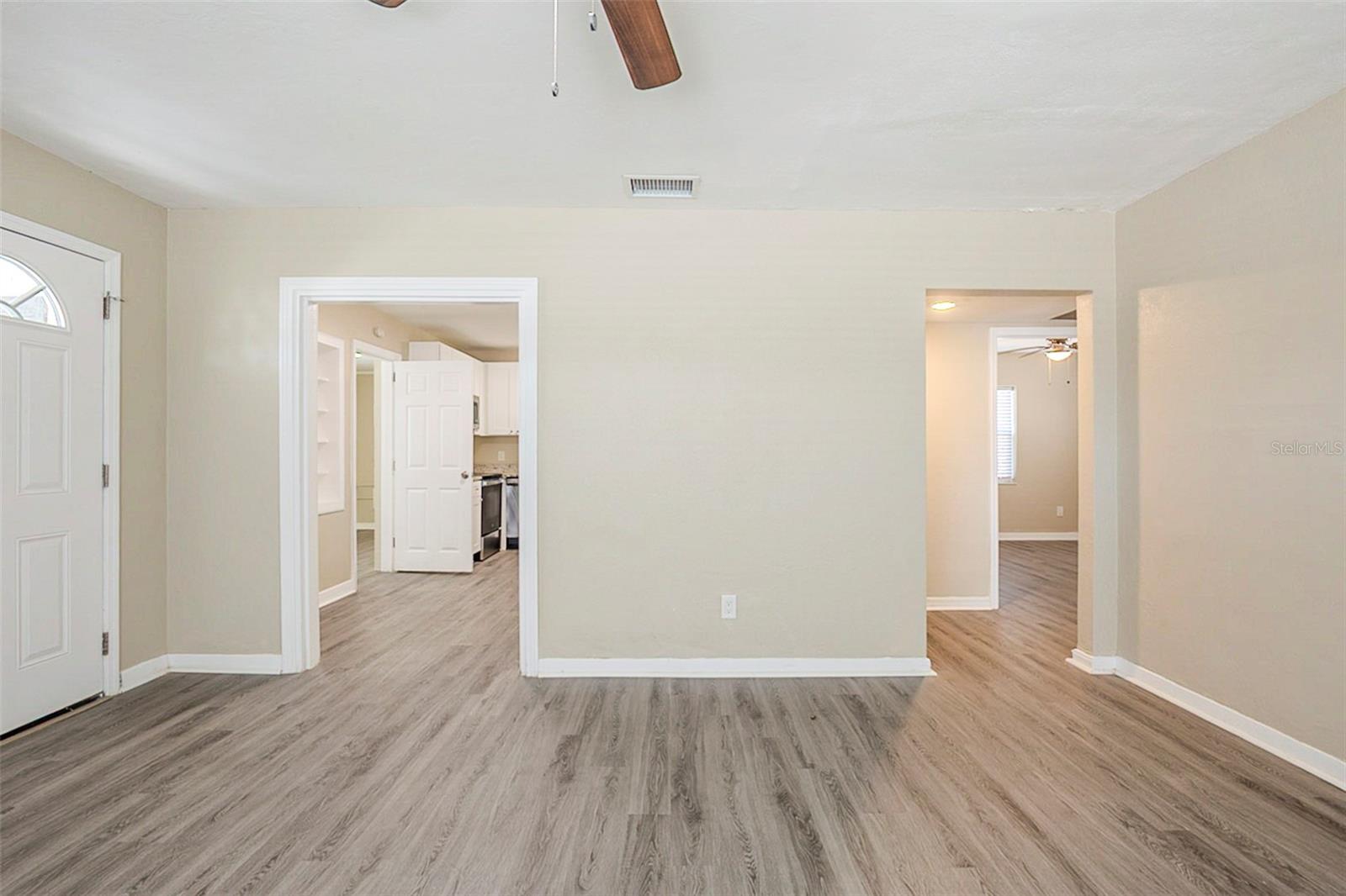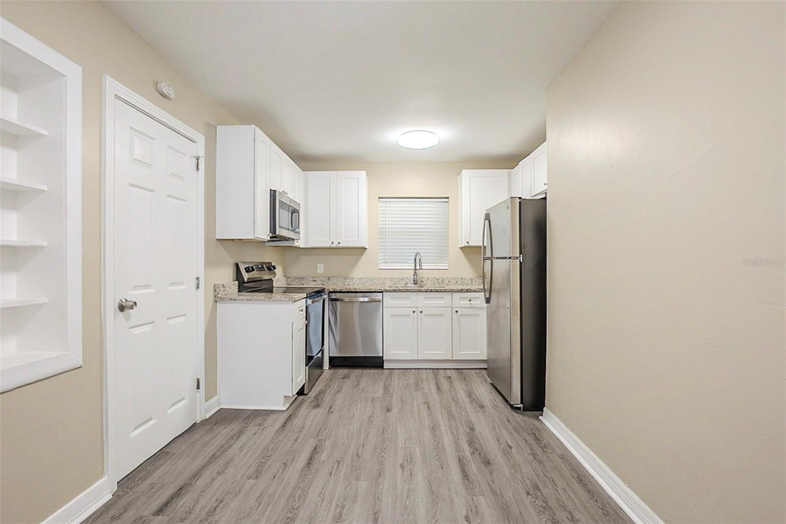 Charming single-story home offering a welcoming front porch and stylish light-colored vinyl flooring throughout the main living areas. The updated kitchen boasts stone countertops, crisp white cabinetry, and stainless steel appliances. The bathroom features tasteful tile flooring and modern finishes. Enjoy the convenience of a 1-car garage, additional driveway parking, and a fully fenced backyard perfect for relaxing or entertaining. Don’t miss out on this move-in ready home! Schedule a showing today!