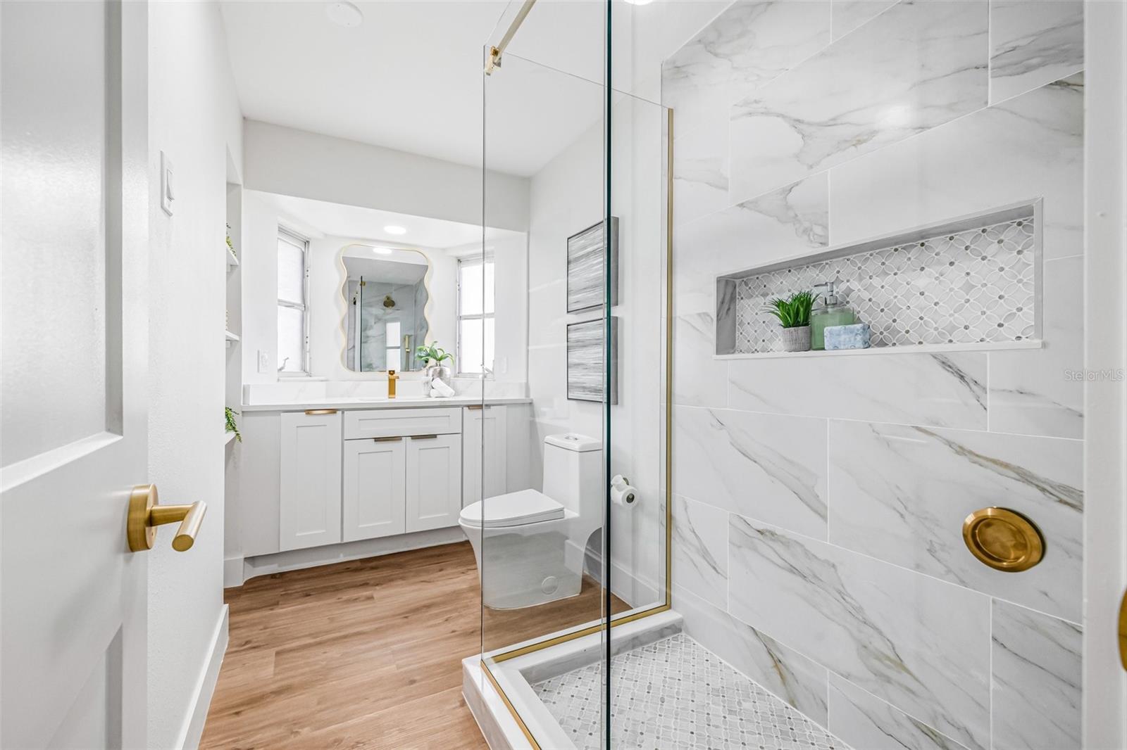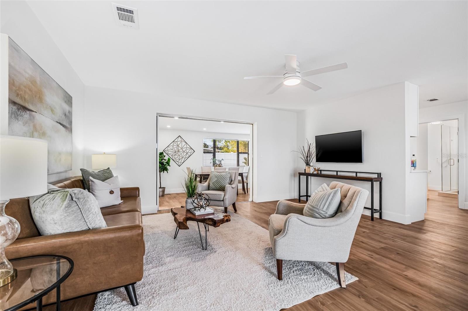 Welcome to this beautifully updated home nestled in a quiet, family-friendly neighborhood of Saint Petersburg, just minutes from the best of what the area has to offer! This home has stood strong through recent storms, receiving ZERO FLOOD DAMAGE from past hurricanes. With the beach only 10 minutes away and downtown Saint Petersburg within a quick 10-minute drive, you’ll be perfectly positioned to enjoy both the serene coastal lifestyle and the vibrant downtown scene. This could also be a great rental opportunity for an investor! Step inside to discover a home that has been thoughtfully renovated with modern touches throughout. NEW LVP waterproof flooring flows seamlessly through the open-concept living spaces, creating a stylish yet durable foundation. FRESH PAINT, both inside and out, gives the home a bright, welcoming feel from the moment you arrive. The BRAND-NEW KITCHEN is a true showstopper, featuring sleek quartz countertops, custom cabinetry, and top-of-the-line finishes that will inspire your inner chef. The BATHROOMS have been COMPLETELY REMODELED, including luxurious tile showers with full glass enclosures, offering a spa-like experience right at home. NEW LIGHTING throughout the house creates a warm, inviting ambiance, while the BRAND-NEW PRIVACY FENCE ensures peace and seclusion in your fully enclosed backyard, perfect for family gatherings or relaxing evenings. UPDATED LANDSCAPING adds to the curb appeal, making this home as beautiful on the outside as it is on the inside. This property offers not only comfort and style but also the peace of mind that comes with extensive updates and a safe, friendly neighborhood. It’s more than just a house—it’s a place to make memories and enjoy the best of Saint Petersburg living. Come see it today!