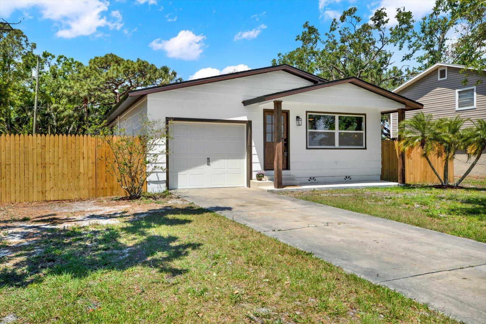 Welcome to 6220 Pershing St NE. No flooding or damage from Hurricane Helene or Milton! This bright & beautifully renovated TURN KEY home is located in desirable Northeast St. Petersburg. Unique to this property is its position at the end of the block, (quiet & no thru traffic)! Across the street is the new Speer YMCA and Mangrove Bay Middle School. Shores Acres Elementary is 1 mile away. Both are A-rated schools. This home is MOVE-IN READY, has a bright, open floor plan and every detail has been attended to! New Roof New A/C New Water Heater New Kitchen Appliances New lighting throughout Updated electric and plumbing New Garage Door with opener equipped with Wi-Fi and Bluetooth capability All new flooring New ceiling fans throughout Backyard Ring security camera / motion light The brand new open kitchen features quartz countertops, new stainless steel appliances, soft close cabinets/drawers. The Master Bedroom features French doors leading to a spacious deck overlooking the oversized backyard. The fully fenced-in backyard is ready for your imagination & preferred backyard design. Engineered Drawings available for a potential garage conversion to a 3/2. Come see for yourself this beautifully remodeled home! Conveniently located, just 4 miles to the Gandy Bridge, 4.5 miles to Downtown St. Petersburg and a half mile to 4th Street!