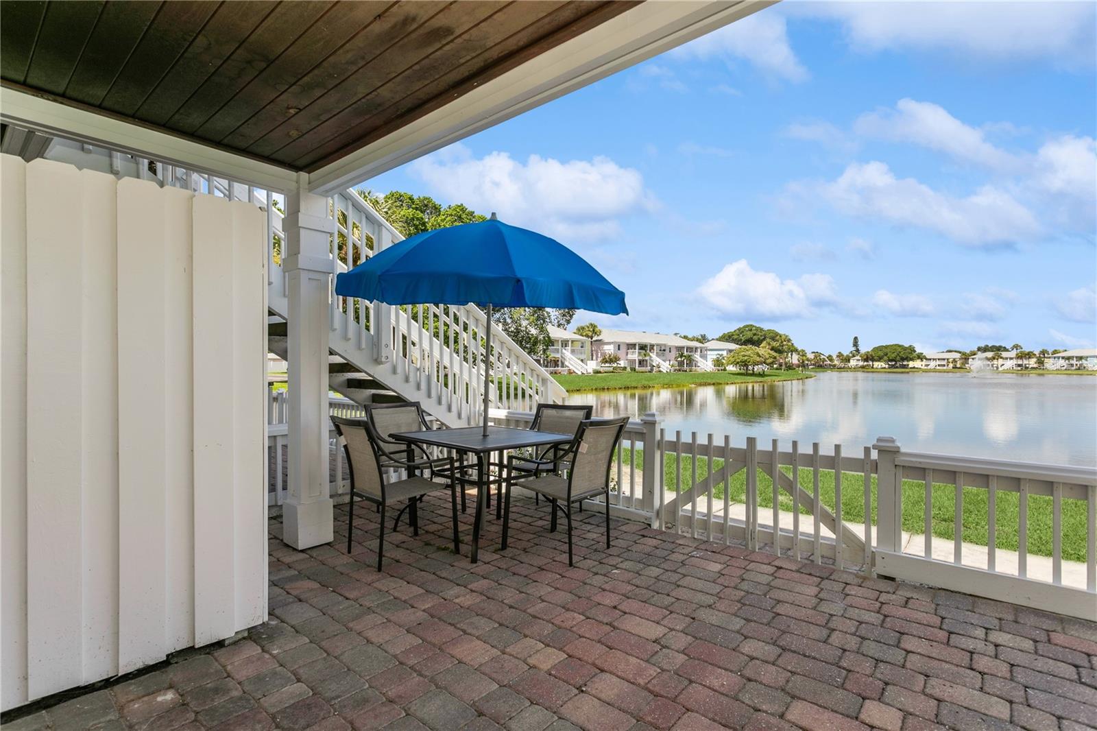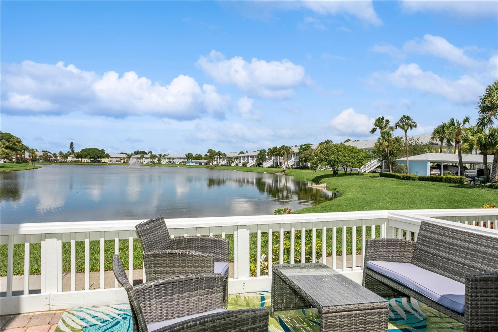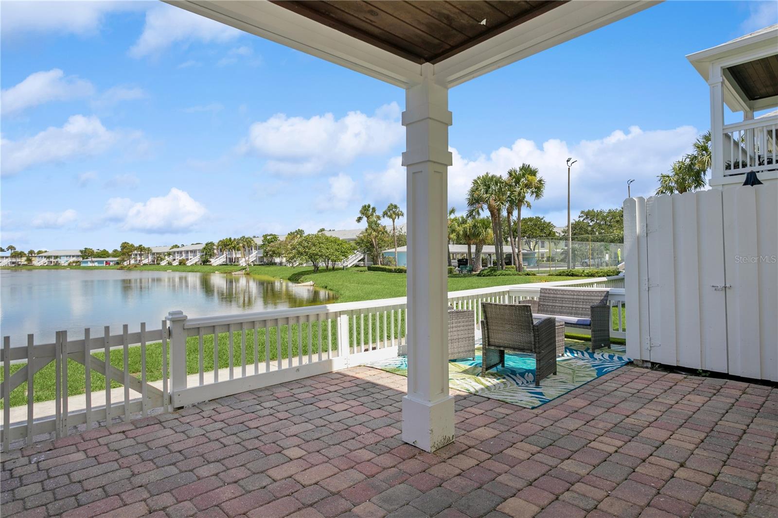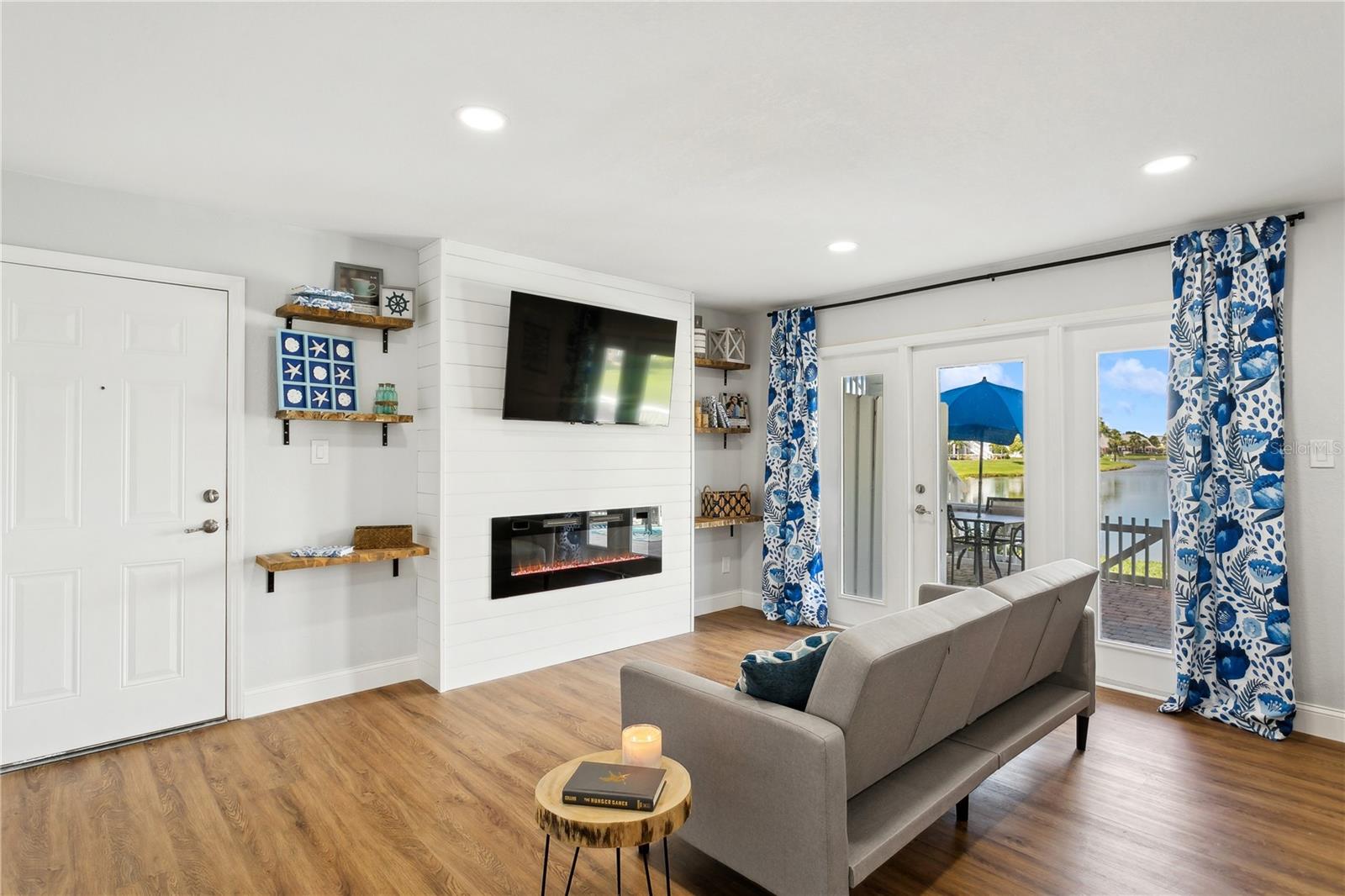 Come fall in love with this Waterfront FULLY RENOVATED GROUND FLOOR unit. This GROUND FLOOR unit comes FURNISHED and ready to occupy or rent out for the busy snowbird season around the corner. The building was recently painted on the exterior, and the interior has been beautifully renovated. The kitchen features designer color BLUE cabinets with GOLD ACCENTS and a SHIPLAP BACKSPLASH. This is paired with a rick honey colored 1.5” THICK ACACIA WOOD BUTCHER BLOCK countertop and 10" deep kitchen sink made of premium 16 gauge thick T-304(18/10) stainless steel. There’s also a NEW STAINLESS STEEL REFRIGERATOR, a DOUBLE OVEN, and a NEW MICROWAVE. Additionally, LIGHTED UPPER CABINETS make the space feel airy and bright. The kitchen outlet at the newly designed island has been updated with a USB adaptive plug, so you can plug in your phone or other USB devices conveniently. The unit features new water resistant LUXURY VINYL PLANK flooring throughout, along with ELEGANT 5 ¼” BASEBOARDS everywhere. The walls have been painted Olympus White and a SHIPLAP FIREPLACE has been CUSTOM DESIGNED for the space. The fireplace build out is flanked by wood shelving, the bottom of which is set to desk height to allow for addition of chairs and use as a laptop workstation. The bathroom has NEW TILE, FIXTURES, MIRROR, VANITY, TOILET, AND LIGHTING; along with a decorative shiplap and boat cleat accent that allows hanging of 6 towels so that all your guests will have a spot of their own. The fan in the bathroom also features a BUILT IN BLUETOOTH SPEAKER, so just connect with your phone and you’ll be singing in the shower to your favorite music. The master bedroom has a SHIPLAP ACCENT WALL and the second bedroom, with it’s beach cabana theme, has been designed to allow for two full beds so that you can sleep 4 comfortably in the second bedroom. Outside, you’ll love the OVERSIZED PATIO. Seriously, it’s huge, the photos don’t do it justice. And, the best part is the location on the water. Located at the end of the length of the pond allows for the LONGEST WATER VIEWS possible. You’ll love the vast views of water and wildlife from your patio, and from the large window in the kitchen and the 3 glass doors in the living room. The view is unforgettable, especially when you SEE IT AT SUNSET. Also, the unit has it’s own stackable WASHER AND DRYER, no need to head to the laundry room! Sold FULLY FURNISHED AND EQUIPPED. Now on to the community amenities… The condo fee includes Spectrum TV & internet, common area maintenance, insurance, water, trash, sewer and secure gated entry. Enjoy tennis, pickleball, swimming in the heated pool, lush landscaped grounds which offer acres to walk your dog around the pet-friendly community, dog park, and fitness center. Additionally, while this unit pays lower fees than sister community Waterside South, it does come with the use of all Waterside South amenities (clubhouse, hot tub, pools (heated in Winter), spas, fitness center, volleyball, shuffleboard, golf practice area, dog park, pub, etc) at nearby Waterside at Coquina Key South only 5 minutes away You are allowed short term rentals 3x/year less than 30 days; and no limit on rentals over 30 days.