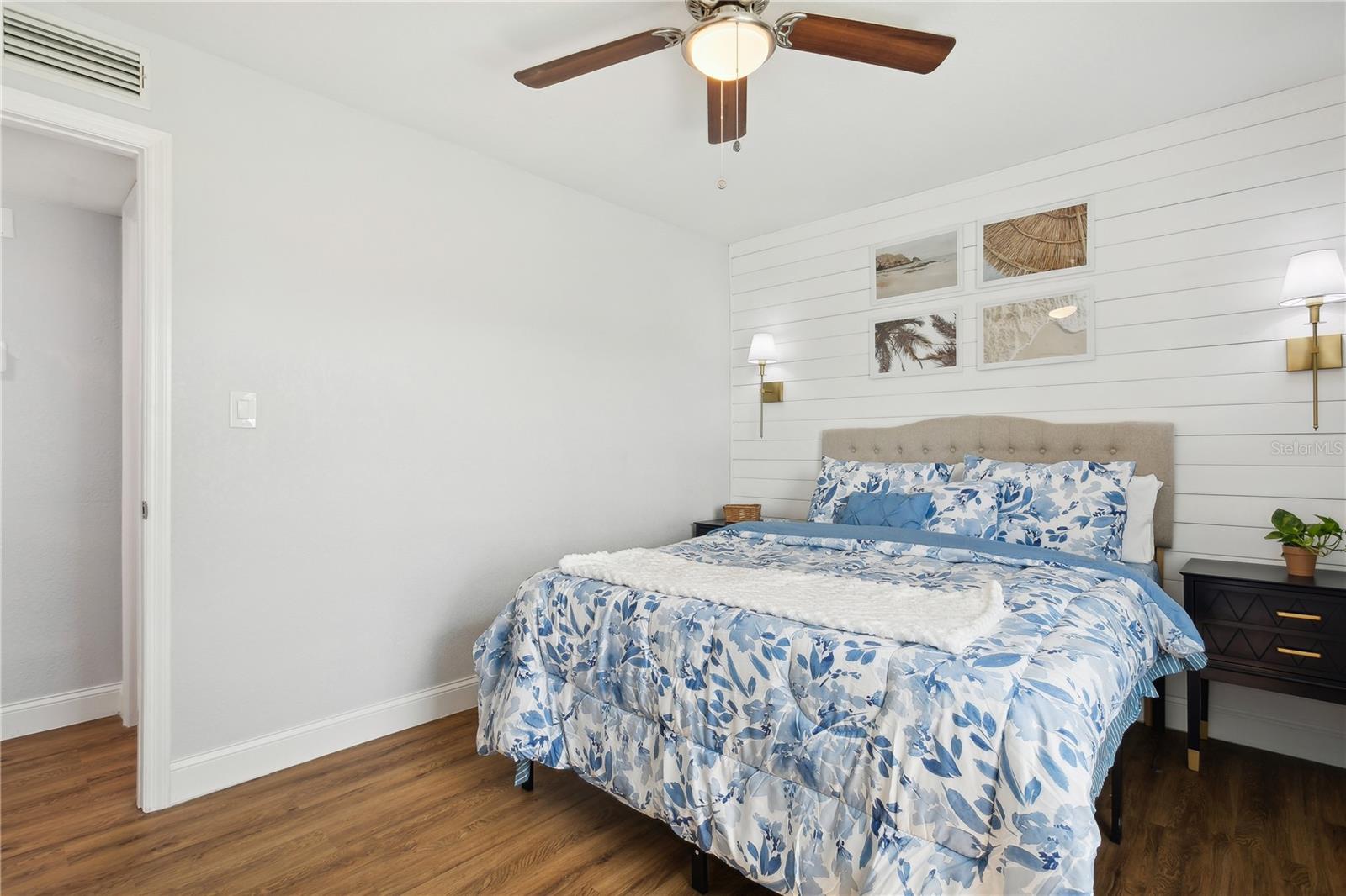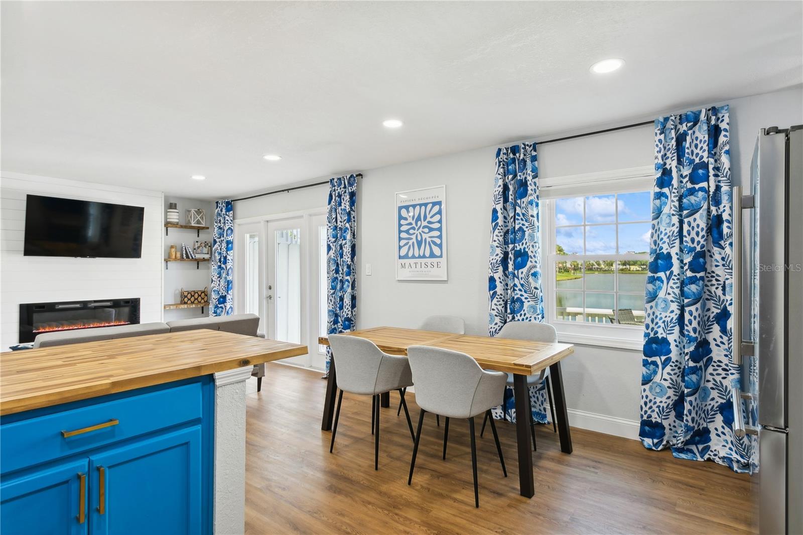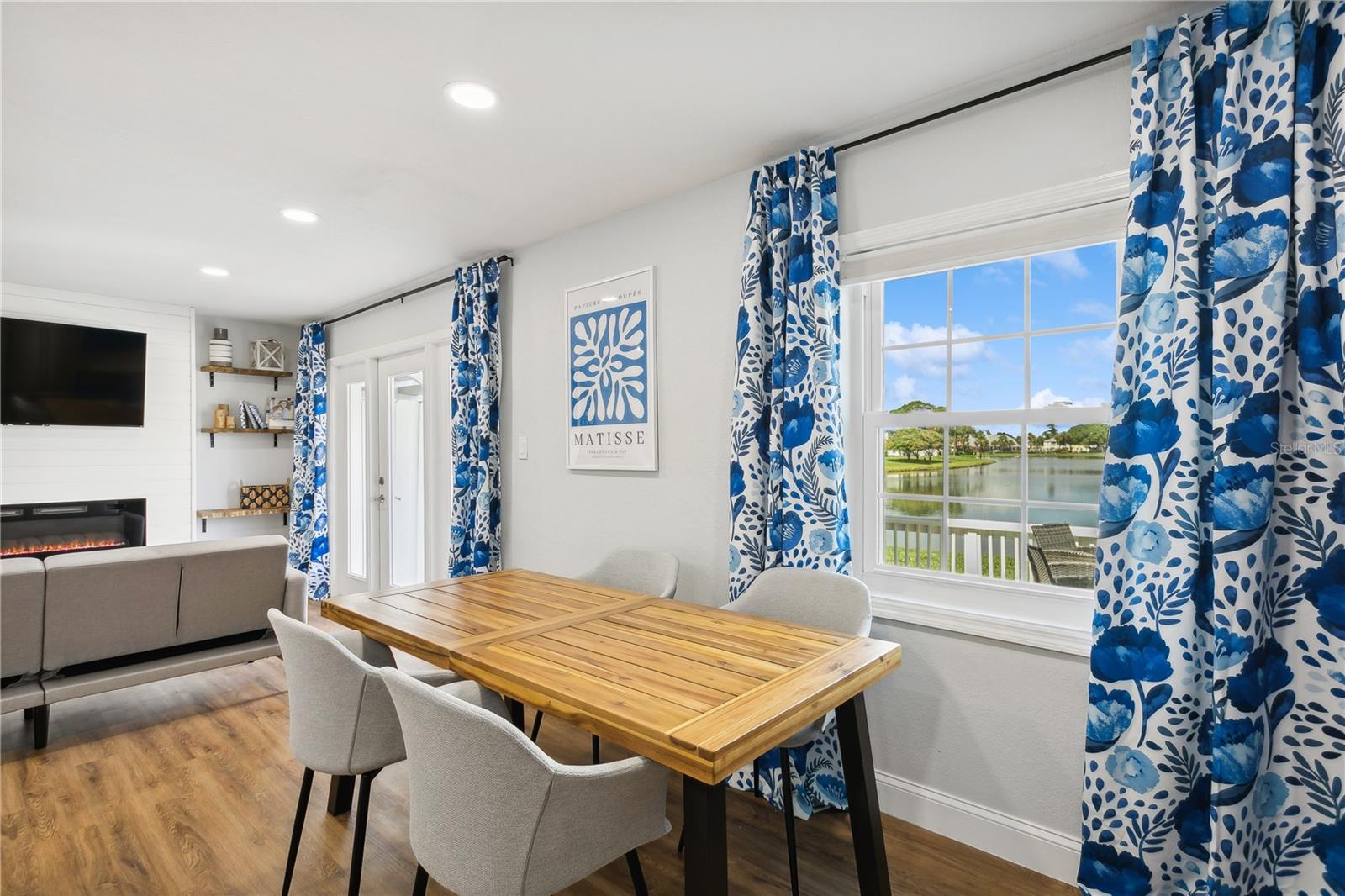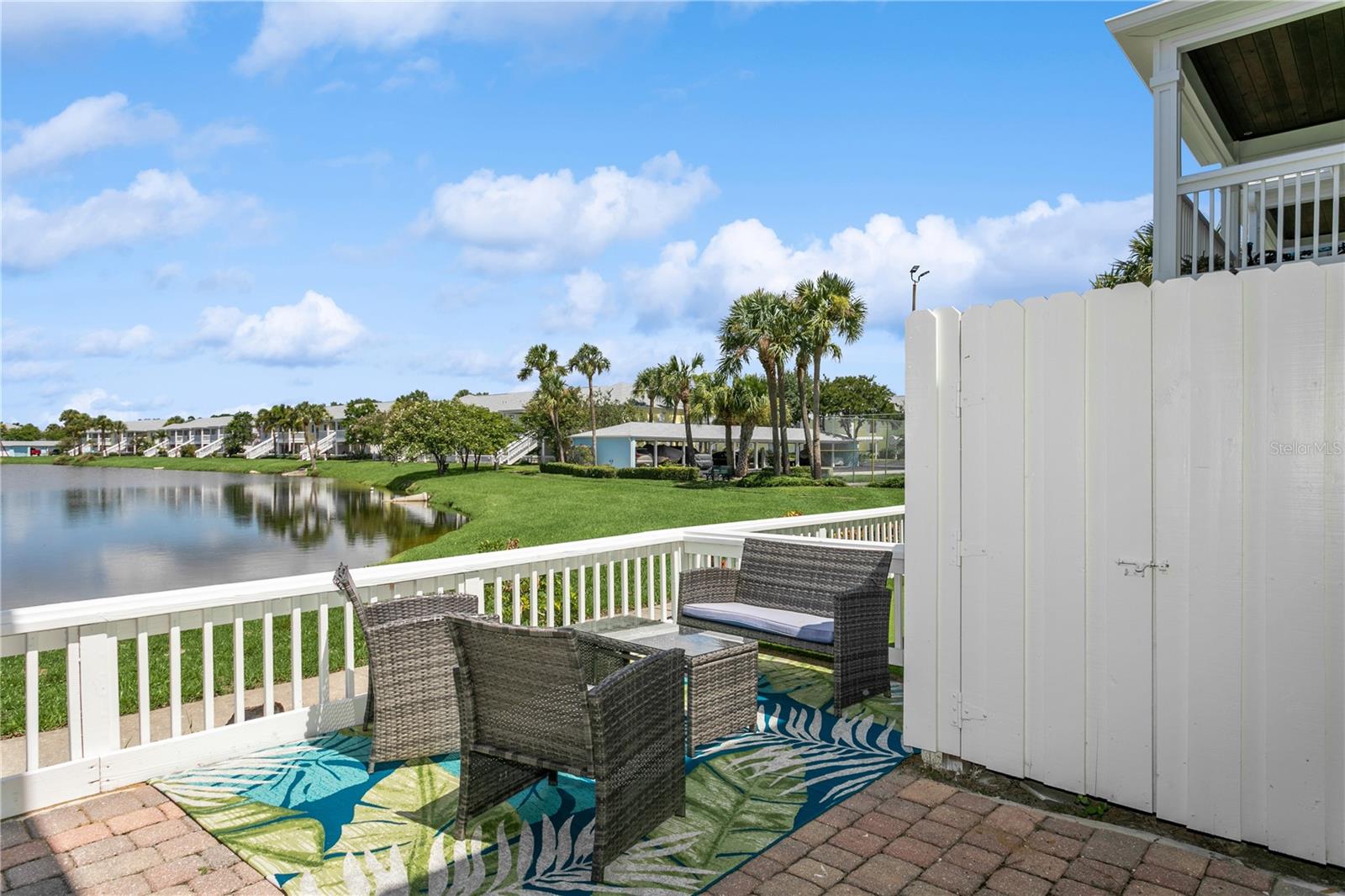 Come fall in love with this Waterfront FULLY RENOVATED GROUND FLOOR unit. This GROUND FLOOR unit comes FURNISHED and ready to occupy or rent out for the busy snowbird season around the corner. The building was recently painted on the exterior, and the interior has been beautifully renovated. The kitchen features designer color BLUE cabinets with GOLD ACCENTS and a SHIPLAP BACKSPLASH. This is paired with a rick honey colored 1.5” THICK ACACIA WOOD BUTCHER BLOCK countertop and 10" deep kitchen sink made of premium 16 gauge thick T-304(18/10) stainless steel. There’s also a NEW STAINLESS STEEL REFRIGERATOR, a DOUBLE OVEN, and a NEW MICROWAVE. Additionally, LIGHTED UPPER CABINETS make the space feel airy and bright. The kitchen outlet at the newly designed island has been updated with a USB adaptive plug, so you can plug in your phone or other USB devices conveniently. The unit features new water resistant LUXURY VINYL PLANK flooring throughout, along with ELEGANT 5 ¼” BASEBOARDS everywhere. The walls have been painted Olympus White and a SHIPLAP FIREPLACE has been CUSTOM DESIGNED for the space. The fireplace build out is flanked by wood shelving, the bottom of which is set to desk height to allow for addition of chairs and use as a laptop workstation. The bathroom has NEW TILE, FIXTURES, MIRROR, VANITY, TOILET, AND LIGHTING; along with a decorative shiplap and boat cleat accent that allows hanging of 6 towels so that all your guests will have a spot of their own. The fan in the bathroom also features a BUILT IN BLUETOOTH SPEAKER, so just connect with your phone and you’ll be singing in the shower to your favorite music. The master bedroom has a SHIPLAP ACCENT WALL and the second bedroom, with it’s beach cabana theme, has been designed to allow for two full beds so that you can sleep 4 comfortably in the second bedroom. Outside, you’ll love the OVERSIZED PATIO. Seriously, it’s huge, the photos don’t do it justice. And, the best part is the location on the water. Located at the end of the length of the pond allows for the LONGEST WATER VIEWS possible. You’ll love the vast views of water and wildlife from your patio, and from the large window in the kitchen and the 3 glass doors in the living room. The view is unforgettable, especially when you SEE IT AT SUNSET. Also, the unit has it’s own stackable WASHER AND DRYER, no need to head to the laundry room! Sold FULLY FURNISHED AND EQUIPPED. Now on to the community amenities… The condo fee includes Spectrum TV & internet, common area maintenance, insurance, water, trash, sewer and secure gated entry. Enjoy tennis, pickleball, swimming in the heated pool, lush landscaped grounds which offer acres to walk your dog around the pet-friendly community, dog park, and fitness center. Additionally, while this unit pays lower fees than sister community Waterside South, it does come with the use of all Waterside South amenities (clubhouse, hot tub, pools (heated in Winter), spas, fitness center, volleyball, shuffleboard, golf practice area, dog park, pub, etc) at nearby Waterside at Coquina Key South only 5 minutes away You are allowed short term rentals 3x/year less than 30 days; and no limit on rentals over 30 days.