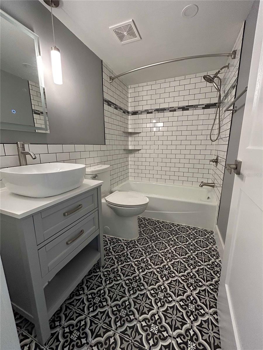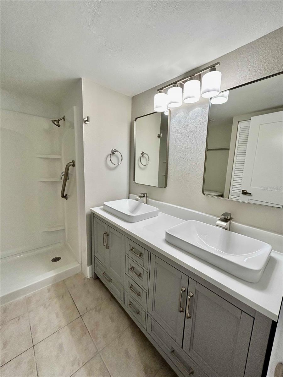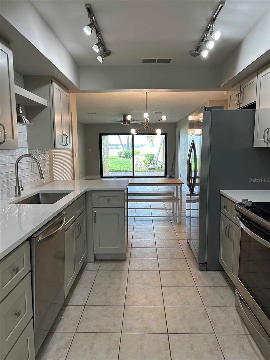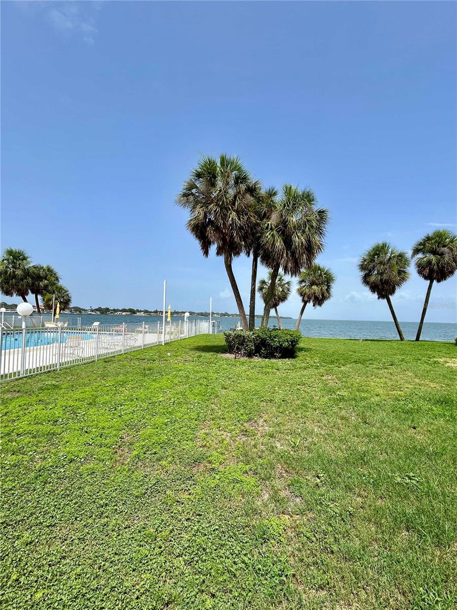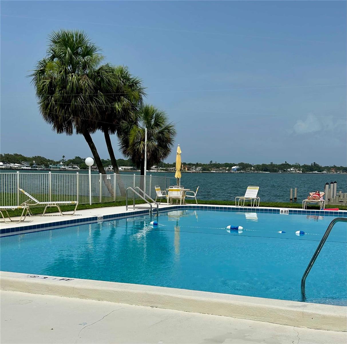 WATERFRONT living at Hidden Bay Villas means expansive, wide-open water views where Tampa Bay meets the Gulf of Mexico! This newly renovated condo features a fresh contemporary design with upgrades that are open and airy. The master suite has an ensuite bath and a roomy closet, and a dressing area with plenty of storage. The guest quarters are spacious, and a 2nd bath boasts a relaxing spa-like feel. The kitchen has new quartz countertops, a deep 18-gauge stainless steel sink and faucet, beautiful shaker-style cabinets, an additional storage pantry, a "flex space" (breakfast or office), a new water heater, and new stainless steel appliances. The quaint dining area and large living room open onto a private lanai (that can be screened in), and the heated pool is just steps away. There is a dedicated laundry room with a full-size washer/dryer. Stay cool with a new, energy-efficient 2-ton HVAC, smart Nest thermostat, and ceiling fans in every room. The bedrooms have woodgrain LVP flooring, and ceramic tile runs throughout the bathrooms, kitchen, and main living area. New hurricane impact windows/doors. Two blocks away, Sky Beach Resort has live music and great eats, water sports, pickleball, and a marina (with slips available). Take advantage of nature trails, disc golf, picnic areas on Boca Ciega Bay, and a public boat launch at close by Maximo Park. The location is ideal, with I-275 access making downtown an easy destination. Drive or use the bike trail to the Bayway, Ft DeSoto, and St Pete Beach. The HOA fee includes cable and high-speed internet, covers master flood insurance, grounds care, plus all utilities except electric. Combining waterfront living and convenient access to nearby attractions makes this the ideal location to live, work, and play! This beautiful home has so much, you must see it to believe it.