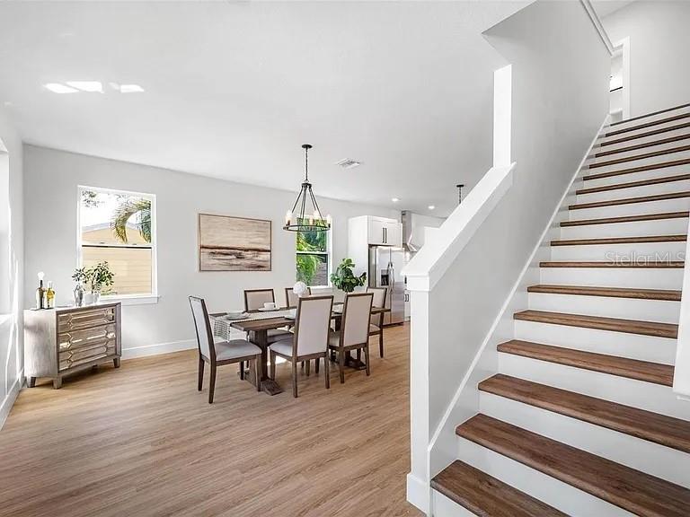 Brand-New 2025 Luxury Compound: Main Residence + Massive Income-Producing Guest House The Main Residence The 2,048 sq. ft. main home is defined by its wide, open-concept layout with tons of natural light and high ceilings. The floor plan centers on a spacious Great Room and a large formal dining area, seamlessly connected by a kitchen featuring quartz countertops and stainless steel appliances. The layout includes three bedrooms, three bathrooms, with a large dining room and massive family living room. The primary suite serves as a private retreat, offering ample space for a king-size layout, a large walk-in closet, and a luxury bath with dual vanities, a freestanding soaking tub, and a separate glass shower. Finishes include luxury vinyl plank flooring and impact-rated windows throughout. The Detached Guest Residence (ADU) The 1,422 sq. ft. auxiliary structure offers complete independence. The upper level houses a full 2-bedroom, 2-bathroom apartment with a private office and balcony that can be rented out for additional income or as a guest house. The ground level features a 410 sq. ft one car garage, AND a fully finished air conditioned flex lounge, complete with a full bathroom and kitchen with its own dedicated entrance. Perfect for a studio, gym, storage, or home office that is separate from the main house. The ADU has separate entrances for the ground floor and upstairs living areas, ideal for privacy. Both floors have their own dedicated HVAC units. The property includes an oversized driveway accommodating 5-6 vehicles easily, as well as a yard that is big enough for a pool. Located in the Tyrone corridor, minutes from Gulf beaches and downtown St. Petersburg. This property combines luxury living with income generation potential and tons of space!