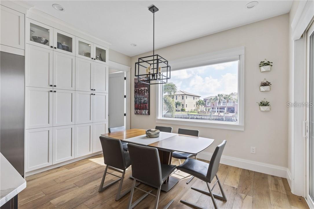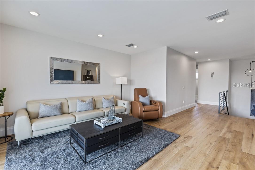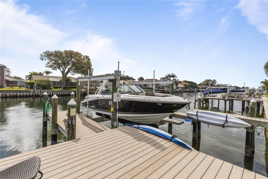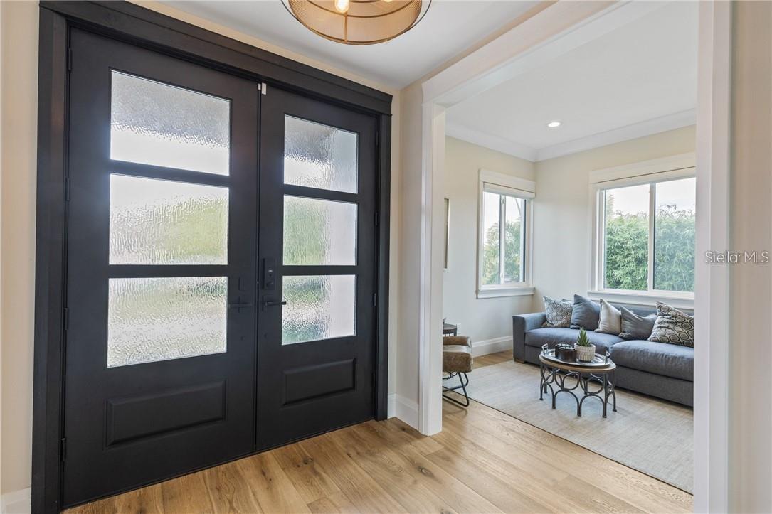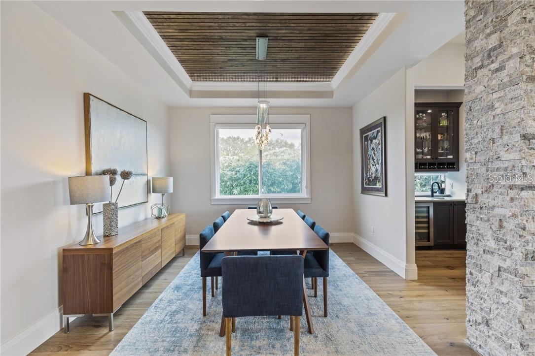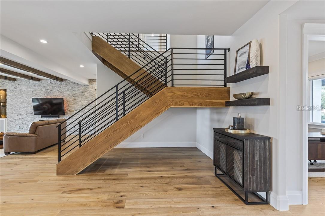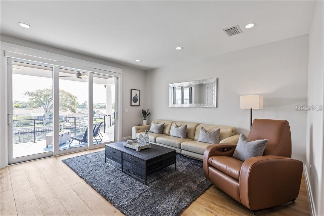 A spectacular custom waterfront estate with a clean California Modern design, this exceptional home stands out in one of St. Petersburg’s most sought-after neighborhoods. Built with an impressive level of detail and craftsmanship, it offers a rare combination of style, comfort, and functionality. Don't miss the video walk-thru: vimeo.com/1172020405 The front exterior makes a strong first impression with extensive stonework, a marble walkway, and custom composite wood Eden Coast 3-car garage doors. Inside, the open-concept layout is enhanced by 8-inch wide French oak flooring throughout and airy 10-foot ceilings. Just beyond the home office with custom built-ins, architectural columns with modern stone accents add character and definition to the main living space. The kitchen is thoughtfully designed with Cambria Britannica countertops, KitchenCraft cabinetry, Thermador appliances, and matte black finishes. An oversized walk-in pantry and butler’s pantry with a sink and wine refrigerator provide excellent prep and storage space. The large one-piece quartz island seats five comfortably, with additional room for dining in the breakfast area. The great room features wood ceiling beams, a striking stone accent wall, and built-in cabinetry with custom wood paneling that continues into the dining room ceiling, creating a cohesive and polished look. The first-floor primary suite offers water views and a private bath entered through custom barn doors. The bathroom includes floor-to-ceiling marble tile, a soaking tub, a large walk-in shower, and matte black fixtures. The spacious 16.5' x 7' walk-in closet is paired with a private laundry room in the suite, and there is an additional laundry room upstairs. Motorized blinds add everyday convenience throughout the home. Upstairs, the custom oak staircase with open risers, iron railing, and statement chandelier leads to a large loft area. Through the 8-foot sliders, the balcony offers beautiful Tampa Bay views along with marble flooring and wood-beamed ceilings. The second level also includes four oversized bedrooms with French oak flooring and three full bathrooms finished with marble floors, designer tile, and quartz countertops. The outdoor living area is equally well designed. Hurricane-rated 8-foot sliding doors open to a covered outdoor kitchen with custom granite counters, weatherproof cabinetry, a 38-inch stainless Delta Heat grill with hood, and a beverage center with sink. The backyard is set up for year-round enjoyment with a gas-heated pool and spa, tumbled marble decking, and a seating area centered around a fire table activated at the push of a button. For boating, the property offers custom dockage and a high-speed lift capable of handling a vessel up to 24,000 pounds, with access to sailboat water. The Synlawn artificial turf backyard includes a putting green and offers a low-maintenance alternative to natural grass. Additional features include a Sonos sound system and generator-ready wiring. Homes with this level of finish and attention to detail rarely become available. This is a unique opportunity to own a custom waterfront residence in a premier St. Petersburg location. Photography, renderings, floor plans, descriptions, current furnishings, dimensions, square footage, and features are approximate, for illustrative purposes only, and subject to change without notice. Buyer to verify all information through personal inspection. Equal Housing Opportunity.