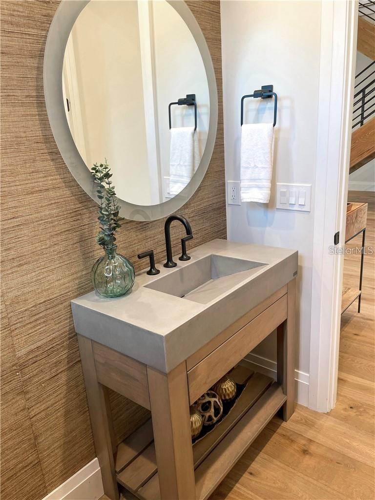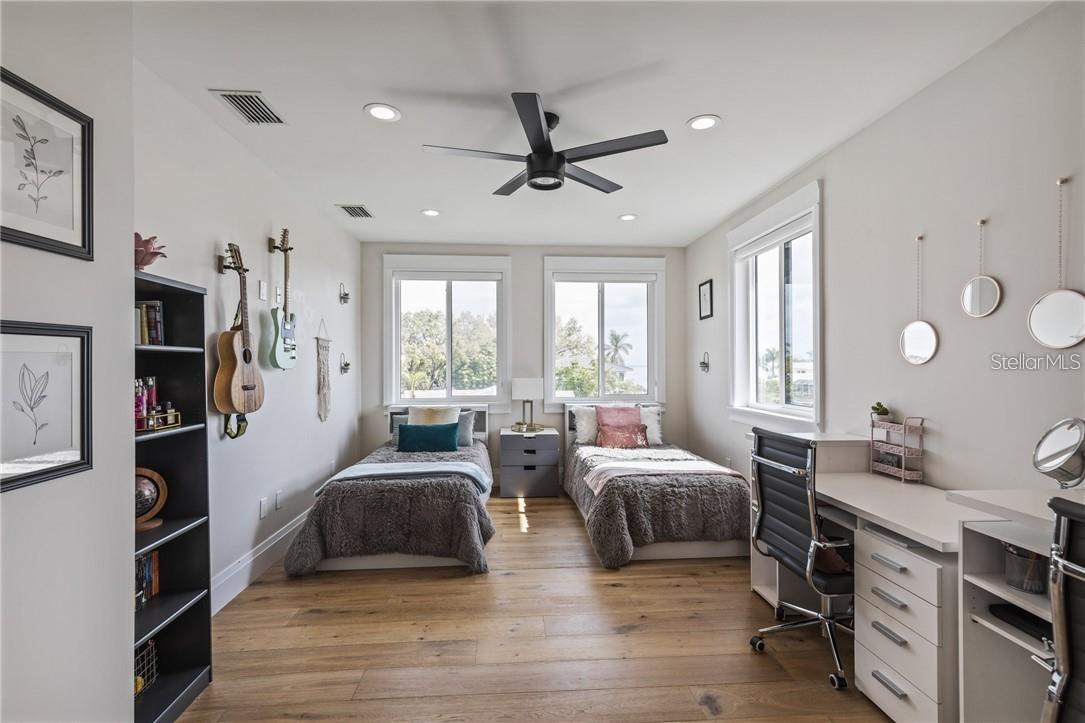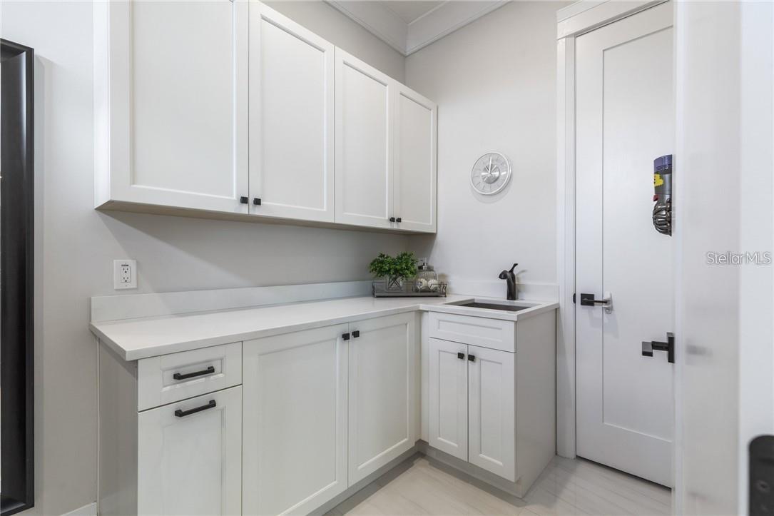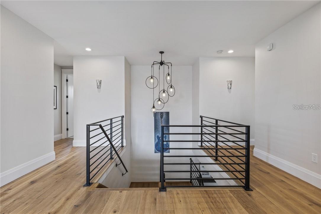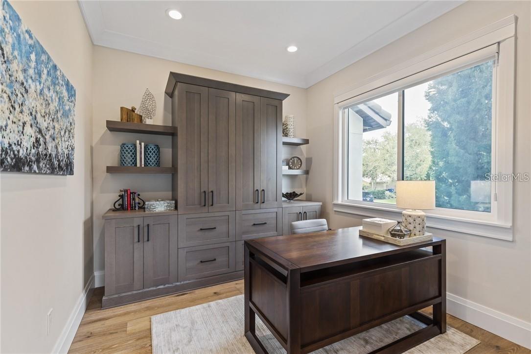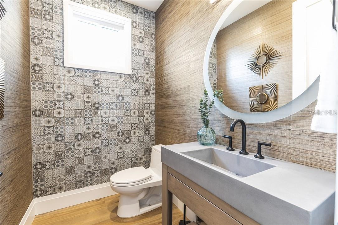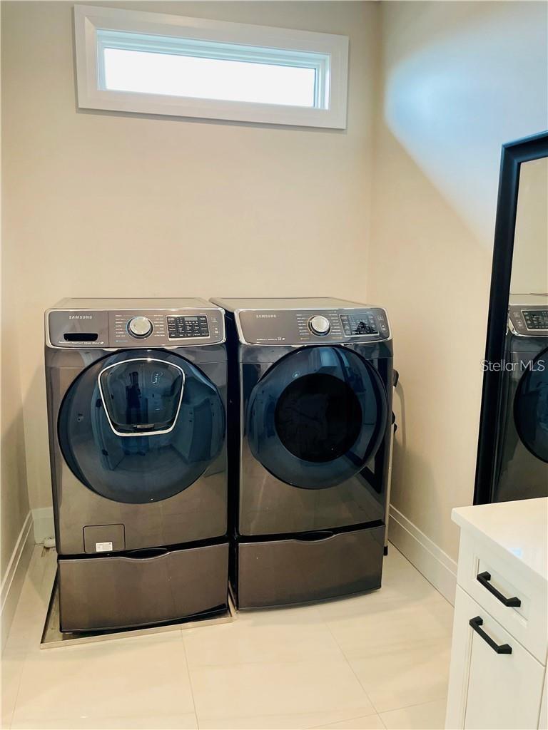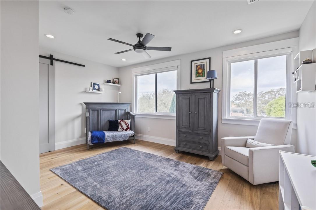 A spectacular custom waterfront estate with a clean California Modern design, this exceptional home stands out in one of St. Petersburg’s most sought-after neighborhoods. Built with an impressive level of detail and craftsmanship, it offers a rare combination of style, comfort, and functionality. Don't miss the video walk-thru: vimeo.com/1172020405 The front exterior makes a strong first impression with extensive stonework, a marble walkway, and custom composite wood Eden Coast 3-car garage doors. Inside, the open-concept layout is enhanced by 8-inch wide French oak flooring throughout and airy 10-foot ceilings. Just beyond the home office with custom built-ins, architectural columns with modern stone accents add character and definition to the main living space. The kitchen is thoughtfully designed with Cambria Britannica countertops, KitchenCraft cabinetry, Thermador appliances, and matte black finishes. An oversized walk-in pantry and butler’s pantry with a sink and wine refrigerator provide excellent prep and storage space. The large one-piece quartz island seats five comfortably, with additional room for dining in the breakfast area. The great room features wood ceiling beams, a striking stone accent wall, and built-in cabinetry with custom wood paneling that continues into the dining room ceiling, creating a cohesive and polished look. The first-floor primary suite offers water views and a private bath entered through custom barn doors. The bathroom includes floor-to-ceiling marble tile, a soaking tub, a large walk-in shower, and matte black fixtures. The spacious 16.5' x 7' walk-in closet is paired with a private laundry room in the suite, and there is an additional laundry room upstairs. Motorized blinds add everyday convenience throughout the home. Upstairs, the custom oak staircase with open risers, iron railing, and statement chandelier leads to a large loft area. Through the 8-foot sliders, the balcony offers beautiful Tampa Bay views along with marble flooring and wood-beamed ceilings. The second level also includes four oversized bedrooms with French oak flooring and three full bathrooms finished with marble floors, designer tile, and quartz countertops. The outdoor living area is equally well designed. Hurricane-rated 8-foot sliding doors open to a covered outdoor kitchen with custom granite counters, weatherproof cabinetry, a 38-inch stainless Delta Heat grill with hood, and a beverage center with sink. The backyard is set up for year-round enjoyment with a gas-heated pool and spa, tumbled marble decking, and a seating area centered around a fire table activated at the push of a button. For boating, the property offers custom dockage and a high-speed lift capable of handling a vessel up to 24,000 pounds, with access to sailboat water. The Synlawn artificial turf backyard includes a putting green and offers a low-maintenance alternative to natural grass. Additional features include a Sonos sound system and generator-ready wiring. Homes with this level of finish and attention to detail rarely become available. This is a unique opportunity to own a custom waterfront residence in a premier St. Petersburg location. Photography, renderings, floor plans, descriptions, current furnishings, dimensions, square footage, and features are approximate, for illustrative purposes only, and subject to change without notice. Buyer to verify all information through personal inspection. Equal Housing Opportunity.