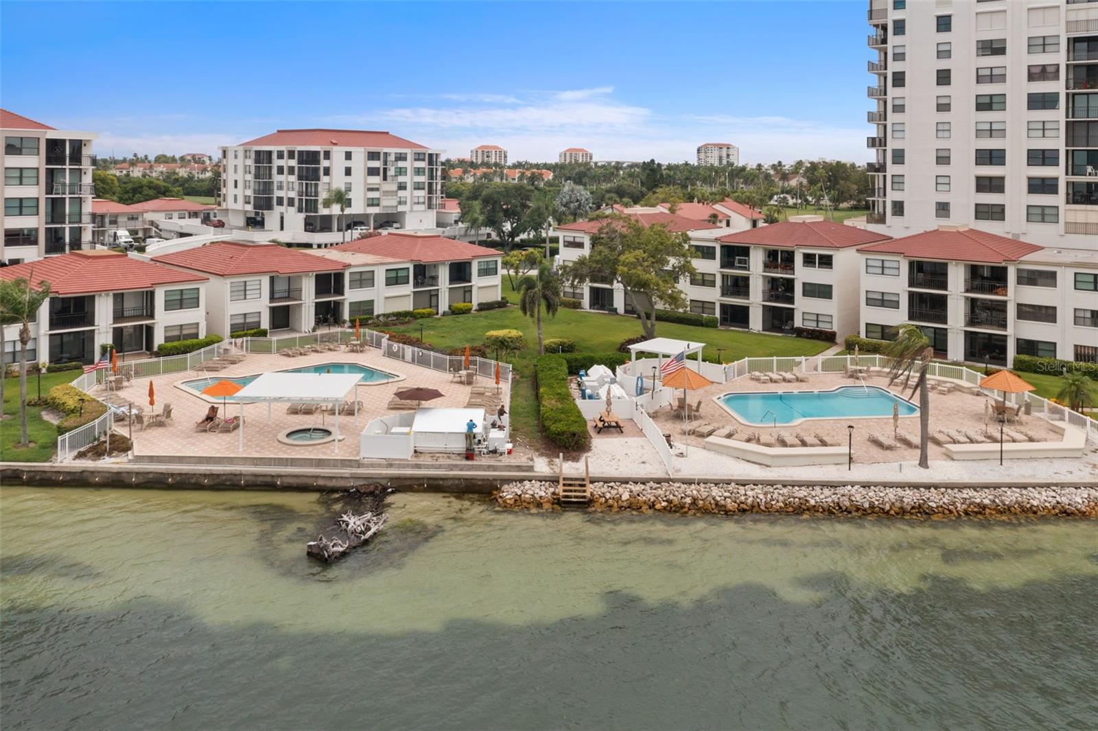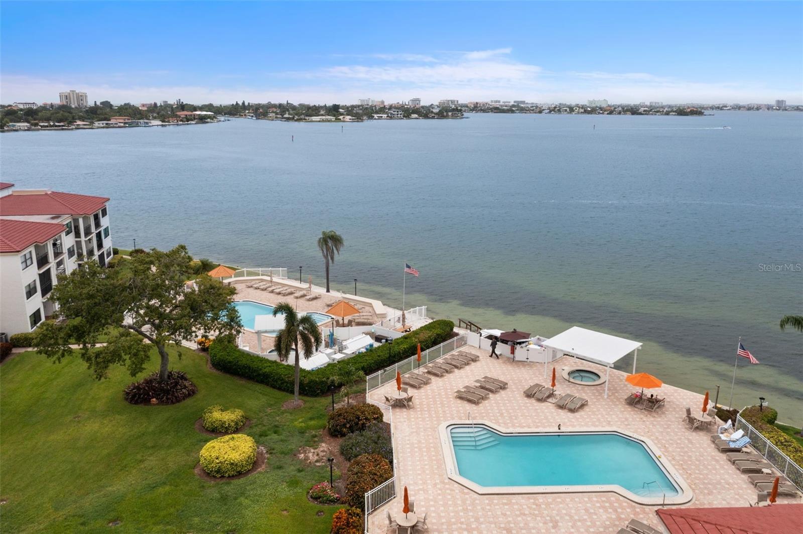Recent Price Adjustment! Do not miss your opportunity to call this home! Casa Del Mar, within Isla Del Sol Yacht and Country Club is one of the most coveted places to live and vacation. Beautiful waterfront building with fishing pier, resort-style heated pool & spa, both of which overlook the bay, recreational room with fitness equipment, spacious recreation room, perfect for get-togethers with friends, family, and/or neighbors. Step out on your balcony and check out the views of the Boca Ciega Bay. Hurricane impact windows and sliding doors frame the stunning water views. Some of the many features of the unit include an interior laundry, an assigned covered parking space, and plenty of guest parking. Inside the kitchen, you have custom cabinetry, premium grade granite countertops, stainless steel appliances, wine fridge, and eat in kitchen area. Large 20x20 ceramic tile throughout, with exception of the living space which is newly carpeted. Laundry closet with Washable and Dryer for convenience. Large walk-in closet in master and 2 closets in entry. Nest Thermostat and NuvoH20 water softener system. Centrally located, this beautiful resort style lifestyle is within easy and quick access to award winning beaches, Ft DeSoto Park, Pass-A-Grill, St Pete Beach. The Isla del Sol Shoppers Village is close by for shopping, dining, or grabbing a cup of coffee. Approx. 2 miles to I-275 grants quick access to downtown Tampa, St. Petersburg, where you will have an abundance of museums, restaurants, theaters, and sporting venues. Easy drive to both Tampa Intl and St.Pete-Clearwater Airports. Additionally, Isla Del Sol Yacht & Country Club offers 5 Memberships if you desire to participate in the Yachting/Marina, Golf, Racquet or Social Events at the Country Club.