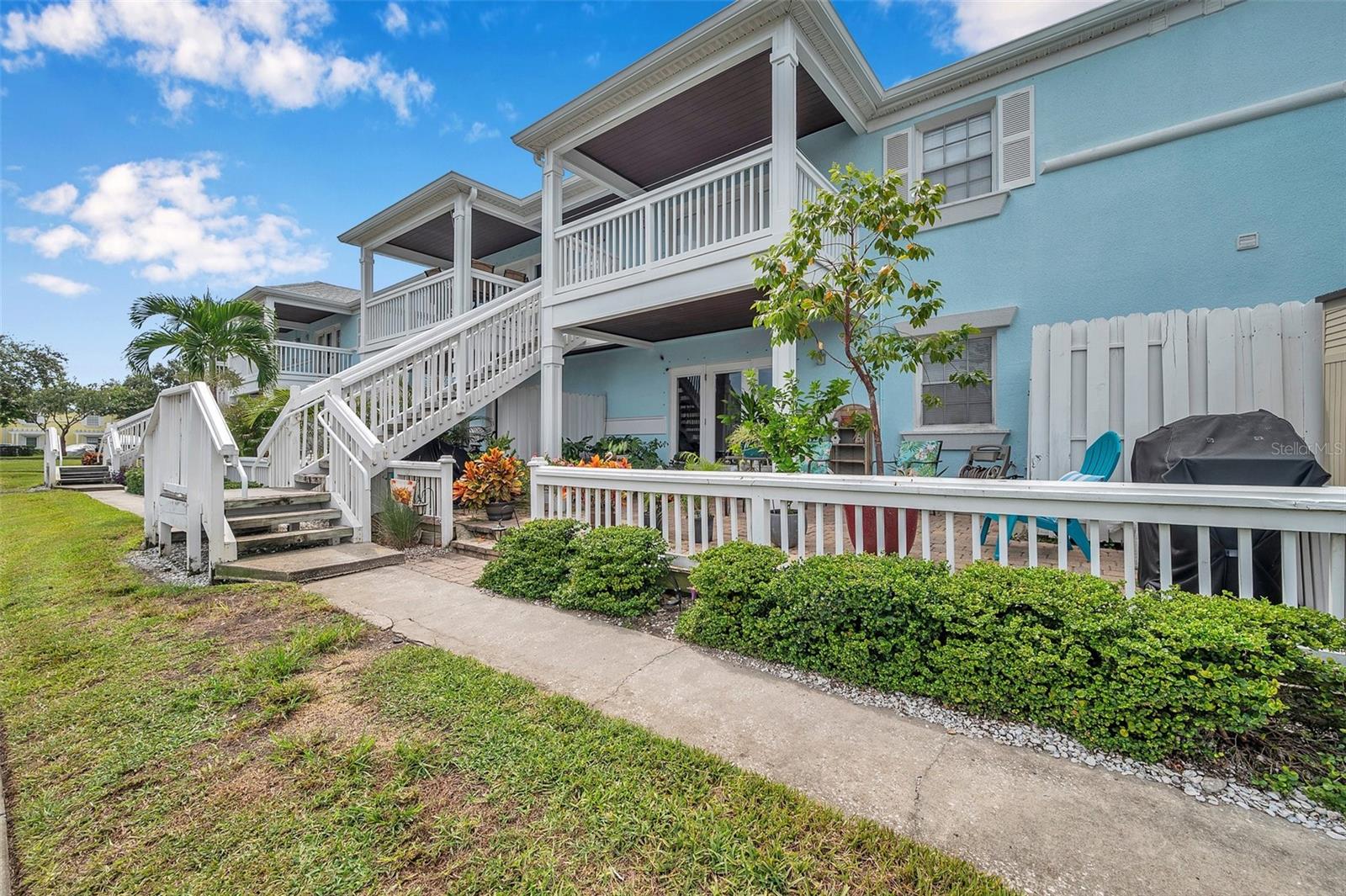 Highly sought after FIRST FLOOR 2 bedroom, 1 bath unit located in the resort style Community at Waterside at Coquina Key. Minutes from downtown St. Petersburg and a short drive to the world renowned Gulf Coast beaches. This unit includes ceramic tile flooring in kitchen, dinning room, living room, and bath. Both bedrooms have wood laminate flooring. This lovely unit has been freshly painted and has ceiling fans in both bedrooms and living room. A large private brick patio on a serene canal, offers the perfect outdoor haven where you can relax, enjoy the coastal breezes and take in the sights of the playful dolphins and manatees, as well as other wild life. Resort includes 2 heated pools, one on Tampa Bay, take in breath taking sunset views. Pickleball, basketball, sand volleyball, shuffleboard and tennis are available for your enjoyment. Residents have the option to lease or purchase, dry docks or wet slips when available, providing seamless access to Tampa Bay. HOA includes 24 Hour Guarded Security gate, cable TV, exterior insurance, pest control, grounds maintenance, pool maintenance, trash, water, recreational facilities, escrow reserves, exterior repairs add exceptional value and peace of mind. Don't miss your chance to own this tropical retreat on the exclusive island of Coquina Key. Waterside is a pet friendly community.