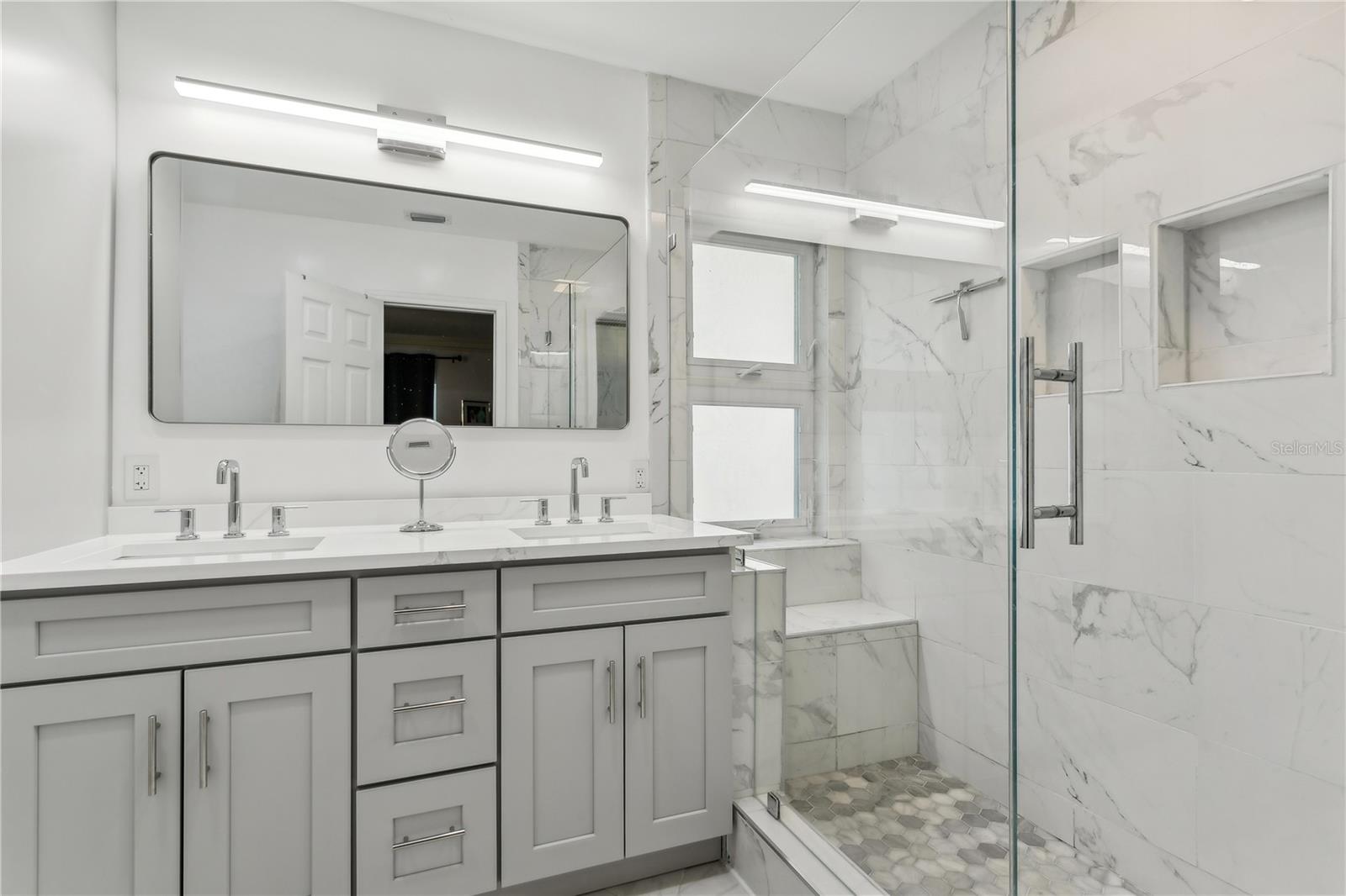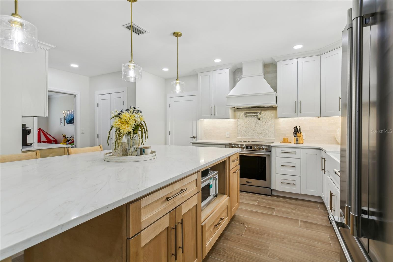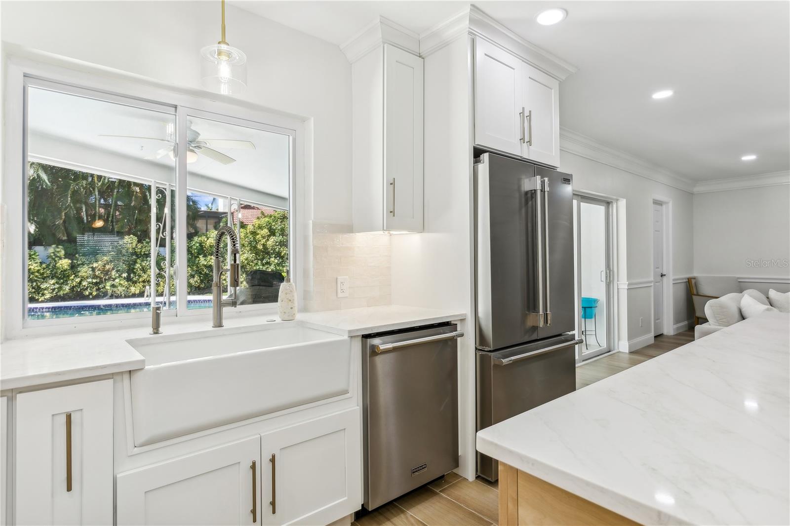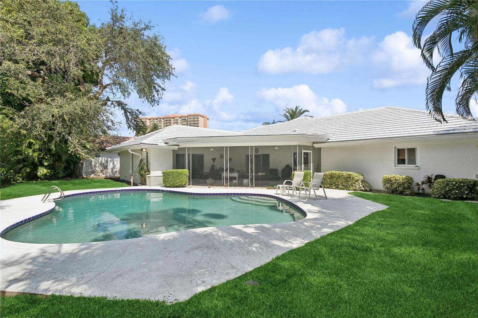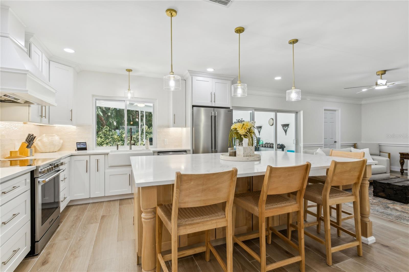Welcome to Bayway Isles, a highly sought-after gated community just across the bridge from the award-winning St. Pete Beach, Pass-a-Grille, and Treasure Island. Only 15 minutes from the vibrant downtown St. Petersburg, you'll have easy access to fine dining, museums, and boutique shopping. This recently and beautifully renovated single-story pool home offers 3 bedrooms and 2 bathrooms. The BRAND NEW KITCHEN showcases solid wood cabinetry, stone countertops, under cabinet lighting, new stainless-steel appliances, and a large island ideal for gathering. A newly added spacious pantry and breakfast bar complete the chef’s dream setup. The kitchen flows seamlessly into the light-filled family room, making it perfect for entertaining. The newly installed hardwood-style porcelain tile flooring extends throughout the home. Both full bathrooms have been tastefully updated with modern finishes, including new tile, cabinets, and plumbing fixtures. Step outside to your oversized private backyard oasis, featuring a large in-ground pool surrounded by lush landscaping. Relax on the screened-in porch during cool summer evenings. Additional highlights include hurricane impact windows and sliding doors, a brand-new 2024 HVAC system, new fans throughout, 2 car garage, large indoor laundry room with new cabinetry, formal living room and dining room.