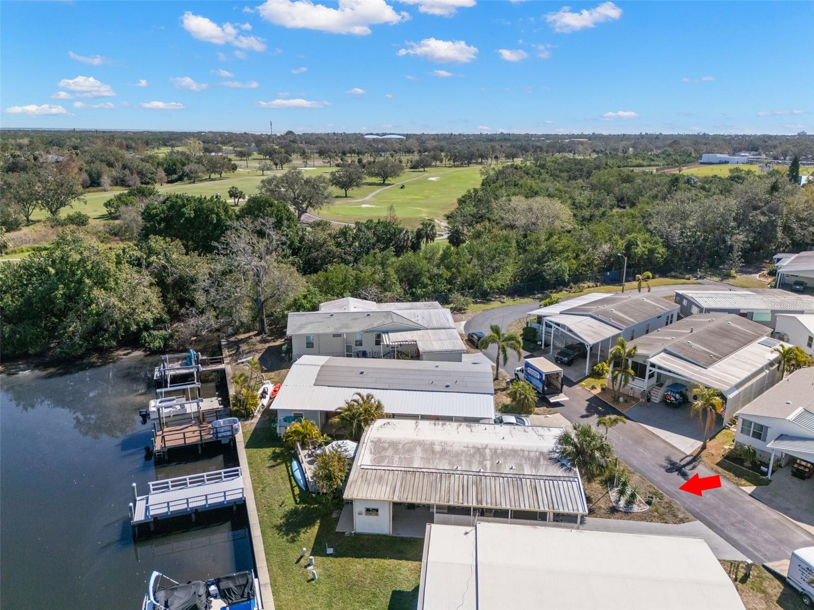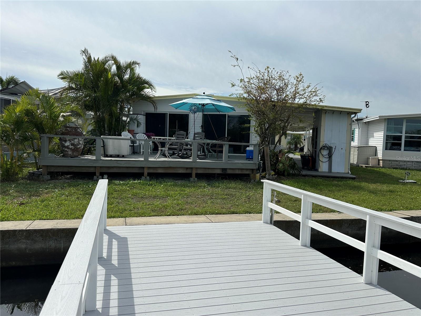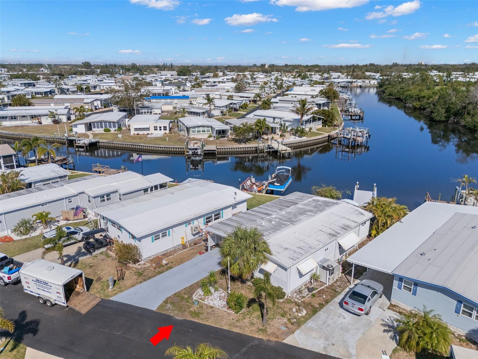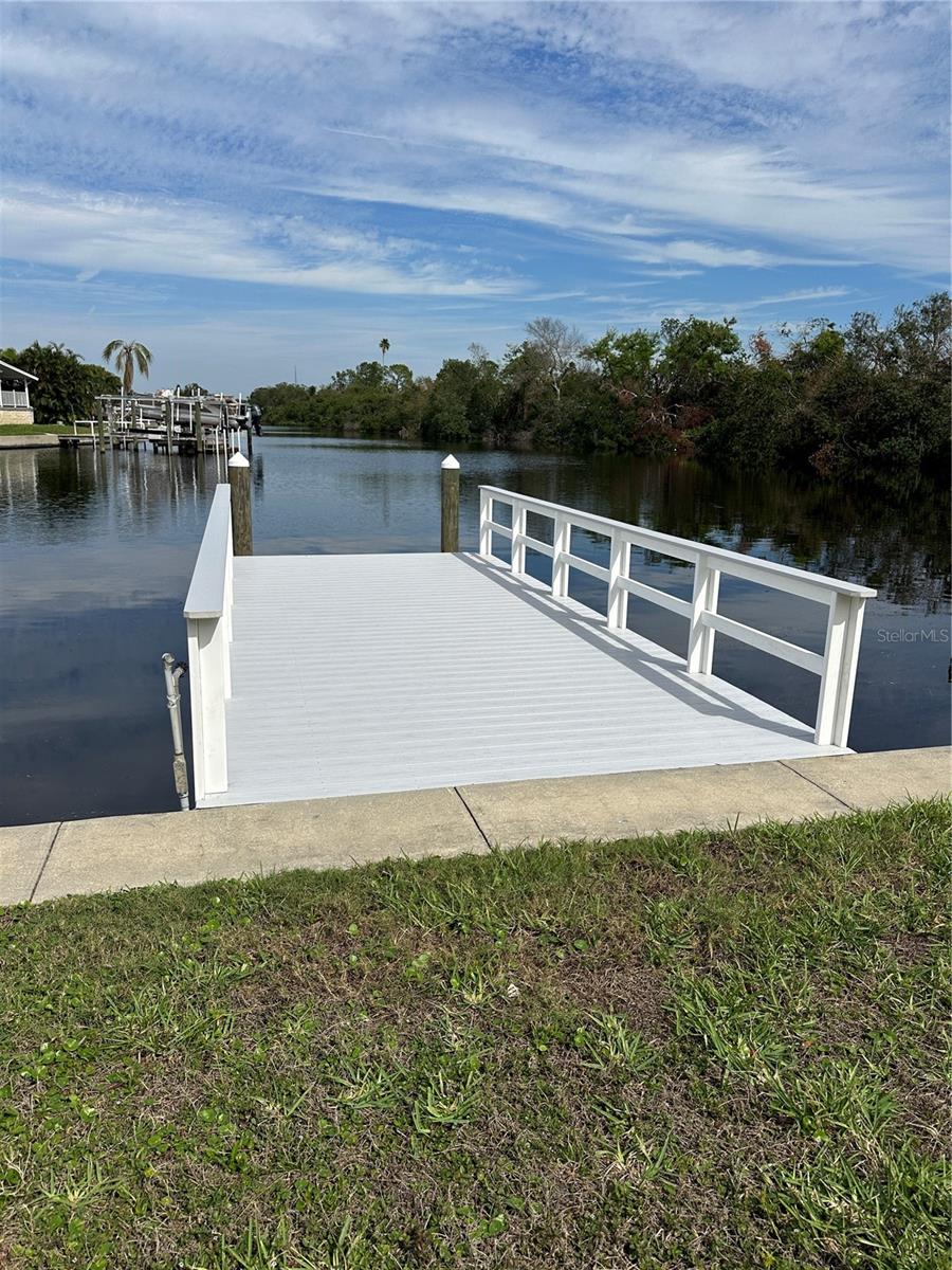 WATERFRONT LIFESTYLE AVAILABLE!! This home has damage from Hurricanes Helene and Milton. Renovate this home or remove it and replace it with a stilted new home with parking below and a garage. The lot would support a 1200 sq ft home. This home has a spectacular unobstructed view of the waterfront, and it has a new 10 X25 (June 2024) composite dock that will accommodate a 25 ft boat and lift. Watch the dolphins and manatees as they swim by or jump in your boat and fish in Tampa Bay! The Bay is a 20-minute boat ride with no bridges. The possibilities are endless! Price includes share for the lot and ownership in the community. Located in dog area and close to the dog park. Home is located in Americana Cove, a 55+ waterfront community with low HOA $360, and lots of amenities including heated pool, newly updated fitness room, billiards, clubhouse, 24 hr manned gate and many clubs and activities. Community is located only 10 minutes from DT St Pete, 15 mins to airports and 25 mins to beaches. This is a great opportunity to build your forever home in a community that has a lot to give!! Cash only. Management requires 675 or higher credit score from all applicants. Check it out today!!