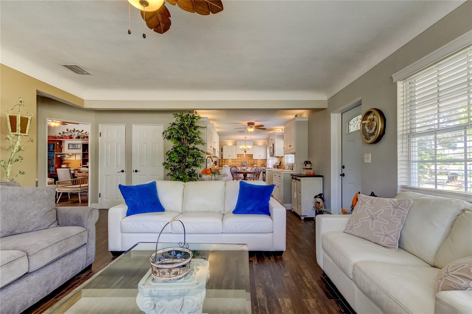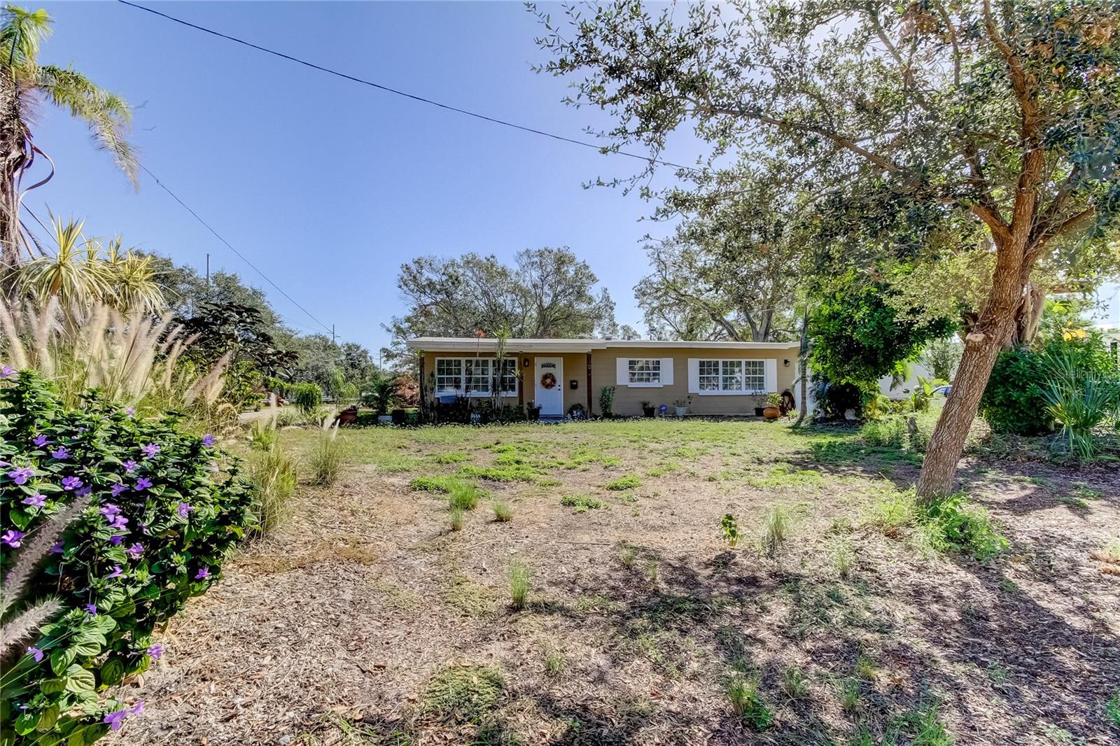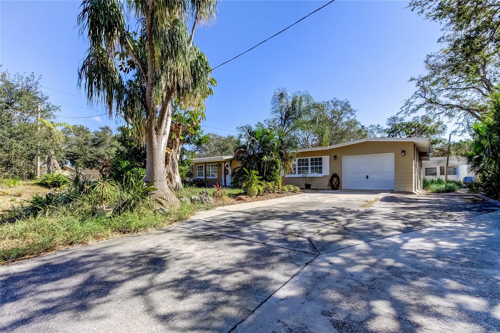 HIGH & DRY!! This lovely property is situated in the PASADENA ON THE GULF community, and is located in FLOOD ZONE X and DID NOT incur any flooding or hurricane damage and is ONLY 2.5 MILES TO THE BEACHES! This charming CORNER LOT with 0.29 ACRES, offers its new owners the peace of mind that a NEW ROOF was installed in 2022, a new AC SYSTEM installed in 2019 and the TANKLESS WATER HEATER with water purification system installed in 2018! This beautiful home was completely renovated in 2018 and features neutral colors, tropical leaf ceiling fans, newer light fixtures, custom blinds and carefree porcelain tile in every room (no carpet anywhere!). The kitchen boasts a galley style design with under cabinet lighting, solid wood cabinets with crown molding, plant shelving, tons of tiled countertop space, decorative backsplash and stainless steel appliances. The separate dining area has additional cabinets plus shelving and there’s even a built-in desk in the hallway. The remodeled bathroom with stylish décor and linen closet will not disappoint! Additional enhancements include the upgraded 200 amp electrical panel, new sewer drainage system in 2024, double wide driveway and solid interior and exterior doors. French doors accentuate the entrance to the Primary Bedroom Suite which is a blank canvas needing finish work and offers the perfect opportunity to maximize this space turn it into a room that suits your needs such as an additional family room, home office, playroom, fitness room, etc.! This amazing property with its expansive backyard, has a wood deck where you can relax and unwind, enjoy outdoor barbecues and activities with family and friends, and is ideal for additional storage for your boat, RV, etc., or explore the possibility of adding a pool to enhance your backyard oasis! If you enjoy a brisk walk or energizing bike ride, the Pinellas Trail is just steps from your front door! Whether your guilty pleasure is beach activities, boating, fishing, cycling, golf, retail therapy, fine or casual cuisine, this home’s prime location has it all! Golf enthusiasts can visit the Pasadena Yacht & Country Club and downtown St. Pete is just a short drive to attend a sporting event, visit the new Pier, admire the many museums and art galleries, bask in the vibrant nightlife or take a stroll and visit the unique shops and taste a variety of cuisines at the trendy restaurants! Enjoy quick access to I-275 which allows for easy travel to Tampa International Airport or head south to Bradenton/Sarasota. Now is the time to lavish in the Florida lifestyle with an amazing property in a fabulous location!