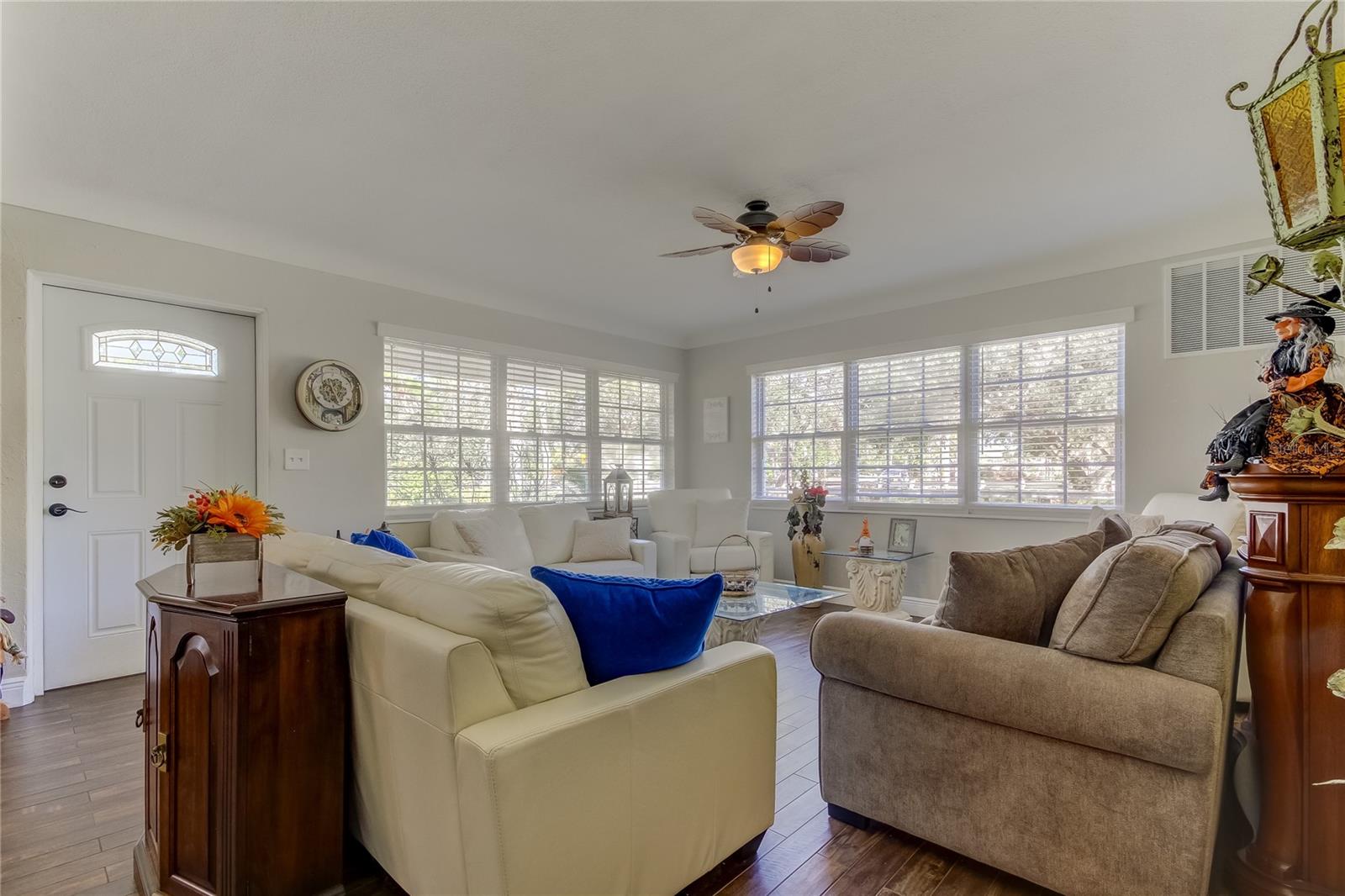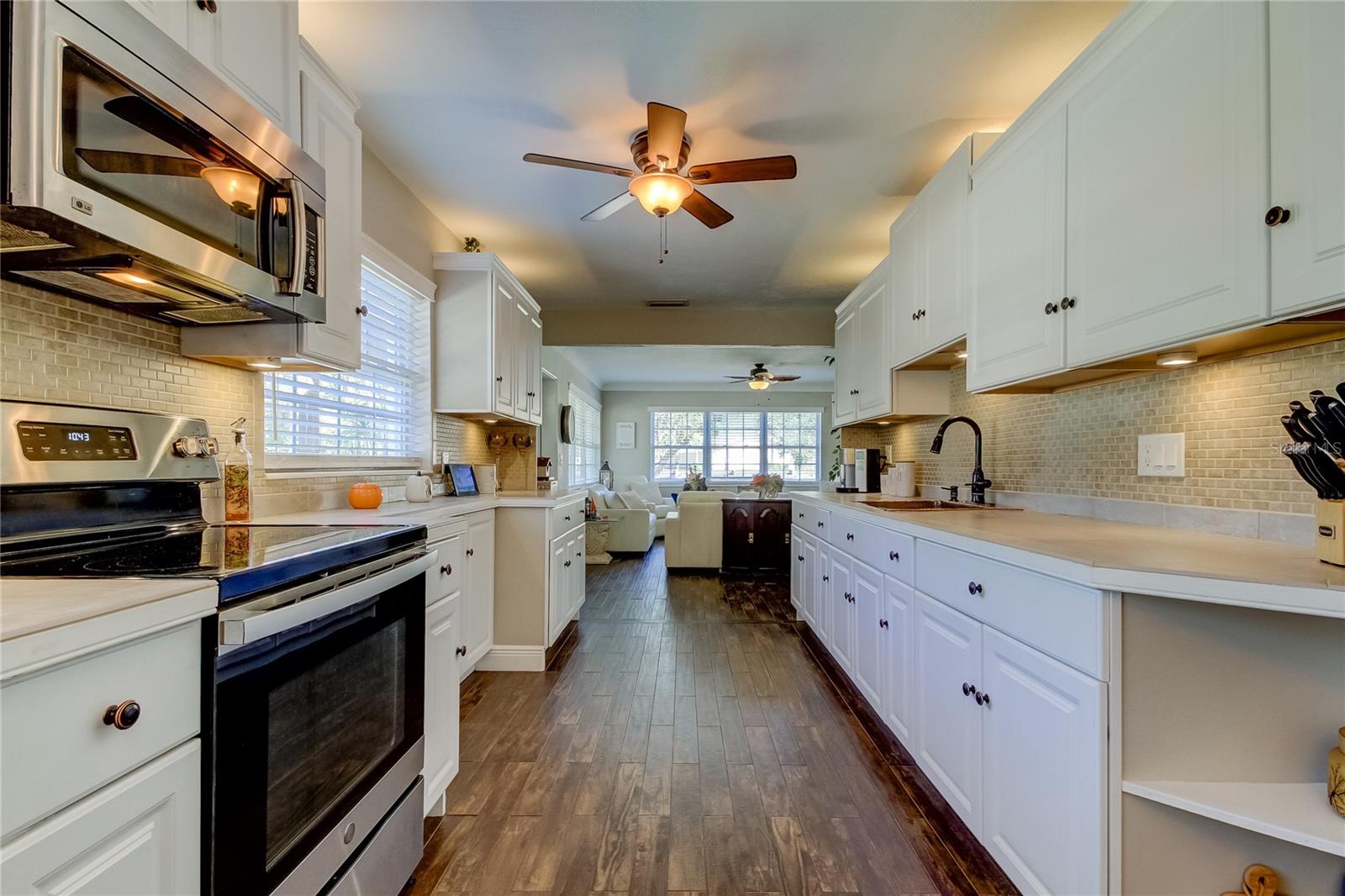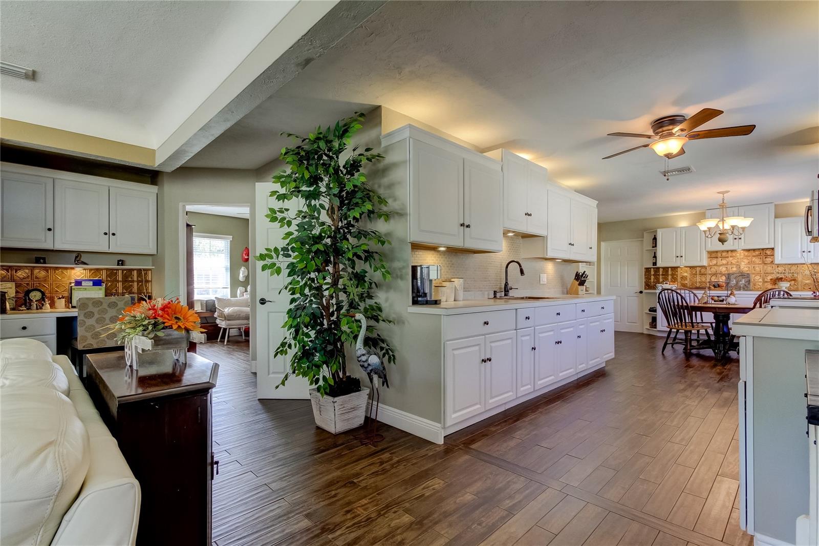 HIGH & DRY!! This lovely property is situated in the PASADENA ON THE GULF community, and is located in FLOOD ZONE X and DID NOT incur any flooding or hurricane damage and is ONLY 2.5 MILES TO THE BEACHES! This charming CORNER LOT with 0.29 ACRES, offers its new owners the peace of mind that a NEW ROOF was installed in 2022, a new AC SYSTEM installed in 2019 and the TANKLESS WATER HEATER with water purification system installed in 2018! This beautiful home was completely renovated in 2018 and features neutral colors, tropical leaf ceiling fans, newer light fixtures, custom blinds and carefree porcelain tile in every room (no carpet anywhere!). The kitchen boasts a galley style design with under cabinet lighting, solid wood cabinets with crown molding, plant shelving, tons of tiled countertop space, decorative backsplash and stainless steel appliances. The separate dining area has additional cabinets plus shelving and there’s even a built-in desk in the hallway. The remodeled bathroom with stylish décor and linen closet will not disappoint! Additional enhancements include the upgraded 200 amp electrical panel, new sewer drainage system in 2024, double wide driveway and solid interior and exterior doors. French doors accentuate the entrance to the Primary Bedroom Suite which is a blank canvas needing finish work and offers the perfect opportunity to maximize this space turn it into a room that suits your needs such as an additional family room, home office, playroom, fitness room, etc.! This amazing property with its expansive backyard, has a wood deck where you can relax and unwind, enjoy outdoor barbecues and activities with family and friends, and is ideal for additional storage for your boat, RV, etc., or explore the possibility of adding a pool to enhance your backyard oasis! If you enjoy a brisk walk or energizing bike ride, the Pinellas Trail is just steps from your front door! Whether your guilty pleasure is beach activities, boating, fishing, cycling, golf, retail therapy, fine or casual cuisine, this home’s prime location has it all! Golf enthusiasts can visit the Pasadena Yacht & Country Club and downtown St. Pete is just a short drive to attend a sporting event, visit the new Pier, admire the many museums and art galleries, bask in the vibrant nightlife or take a stroll and visit the unique shops and taste a variety of cuisines at the trendy restaurants! Enjoy quick access to I-275 which allows for easy travel to Tampa International Airport or head south to Bradenton/Sarasota. Now is the time to lavish in the Florida lifestyle with an amazing property in a fabulous location!