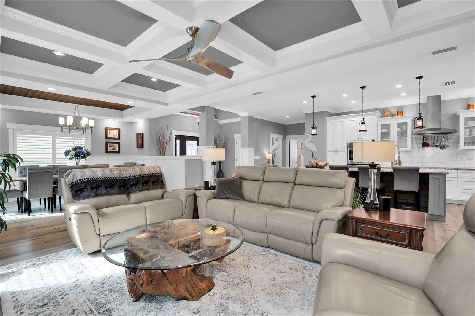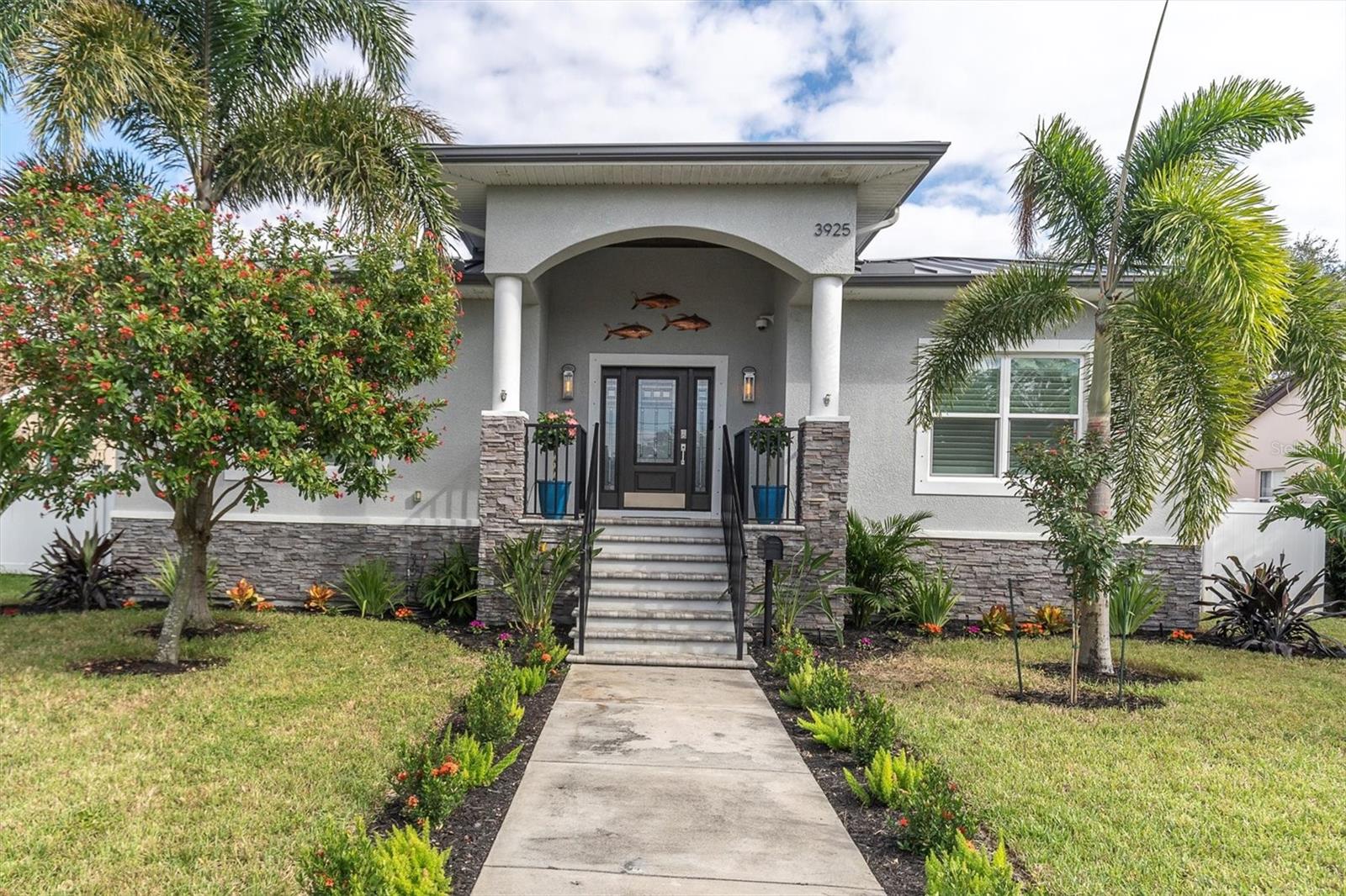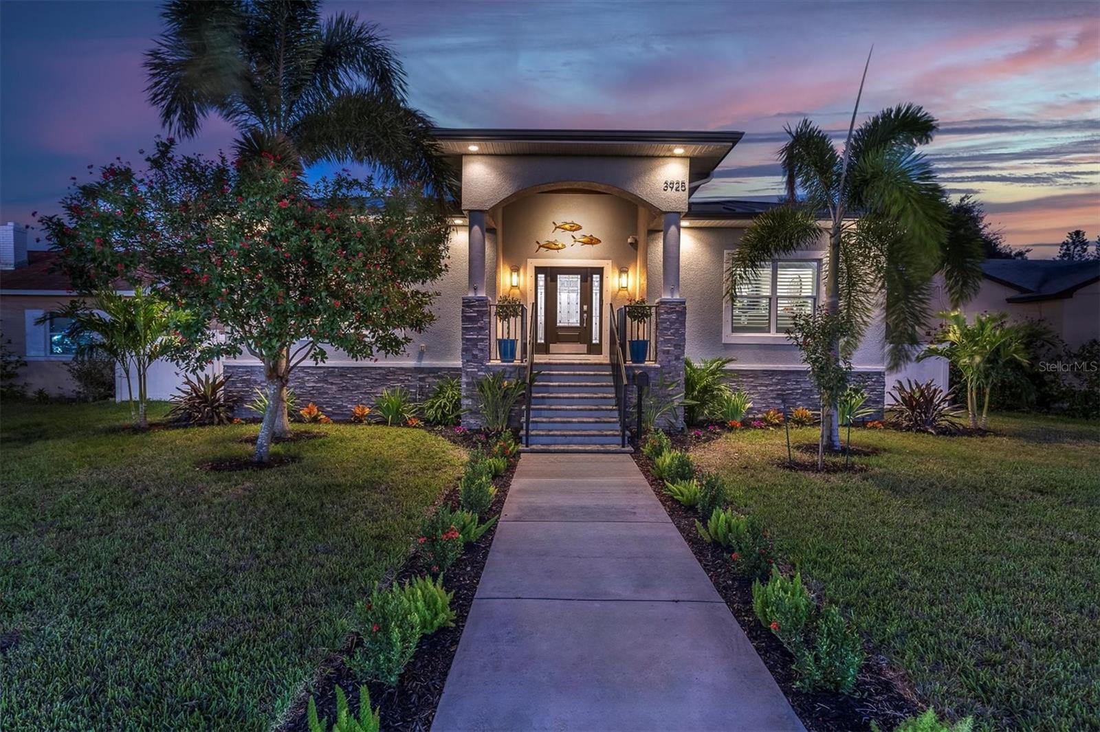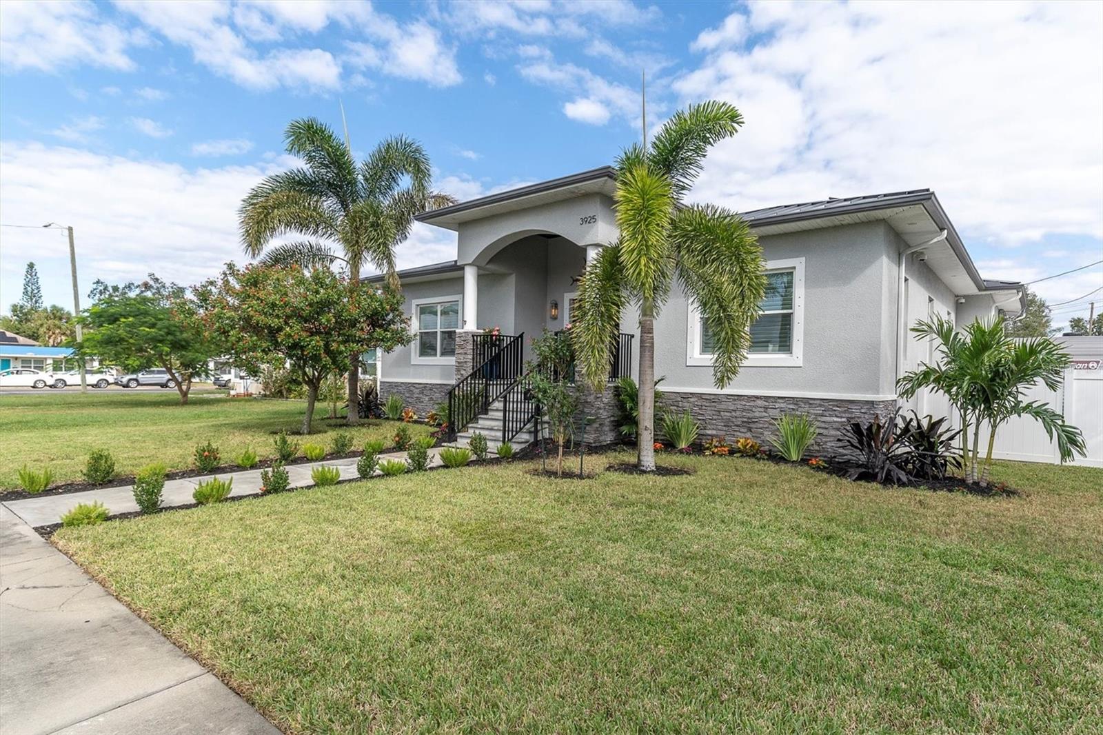 Welcome to your forever Florida Home in St Petersburg, Florida “the sunshine city”. This magnificent home was unaffected by recent hurricanes. It blends luxury and timeless sophistication with the Florida lifestyle. Open concept design with 9 foot ceilings features a chef’s kitchen with a generous island with tons of counter space, solid wood cabinetry, GE Café double oven, Wolf range hood w/ remote blower, Oversized GE cooktop and granite countertops perfect for hosting gatherings and preparing meals. Note extensive custom wood work including coffered and wood tray ceilings, board and batten, wood plantation shutters, solid wood interior doors and crown molding throughout elevating its “wow factor”. A spacious split bedroom floorplan provides both comfort and privacy with every detail thoughtfully designed. The oversized primary suite serves as a private retreat featuring a generous living area perfect for relaxation or a personal study. All block construction featuring foam insulation provides an exceptionally quiet interior. Designed for energy efficiency this property comes equipped with superior insulation, top of the line heat pump, and a huge solar system that will keep utility costs to a minimum. Also included is a whole home portable generator with hookup in the case of power outage. Dedicated, long RV/boat parking area equipped with an electric hookup.Located in desirable North East Park close to Downtown St Pete and within walking distance to Whole Foods, Publix, gym, and shopping.
