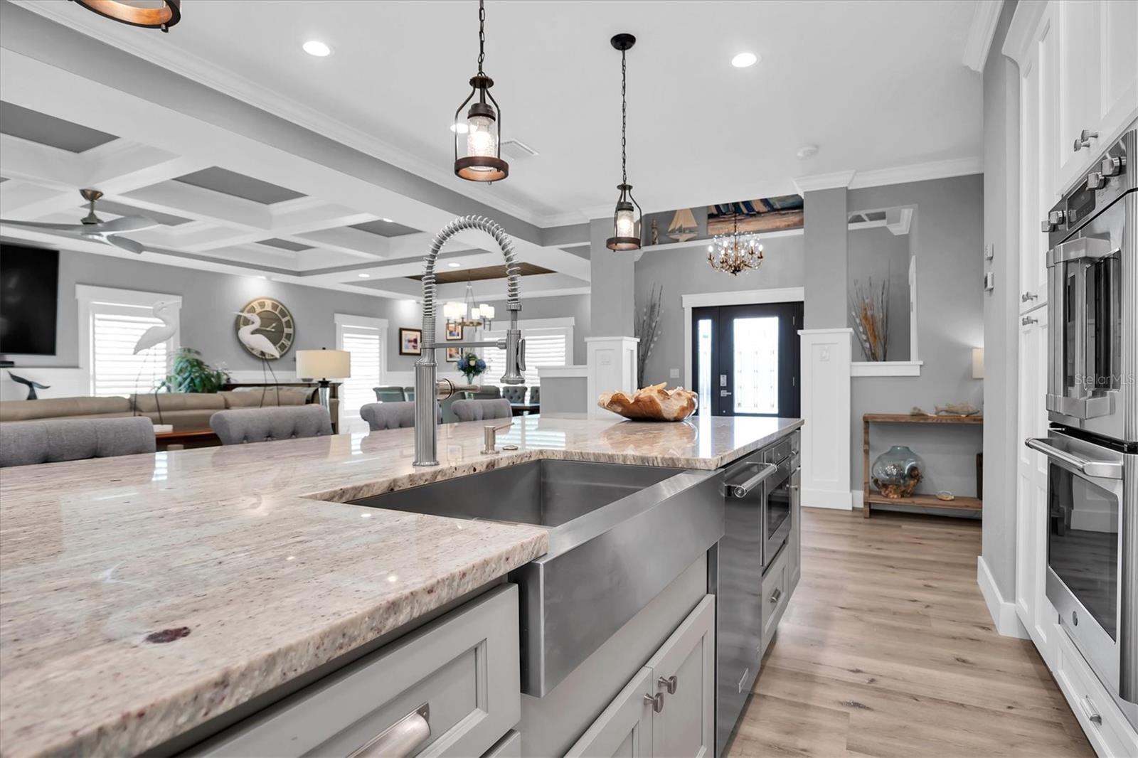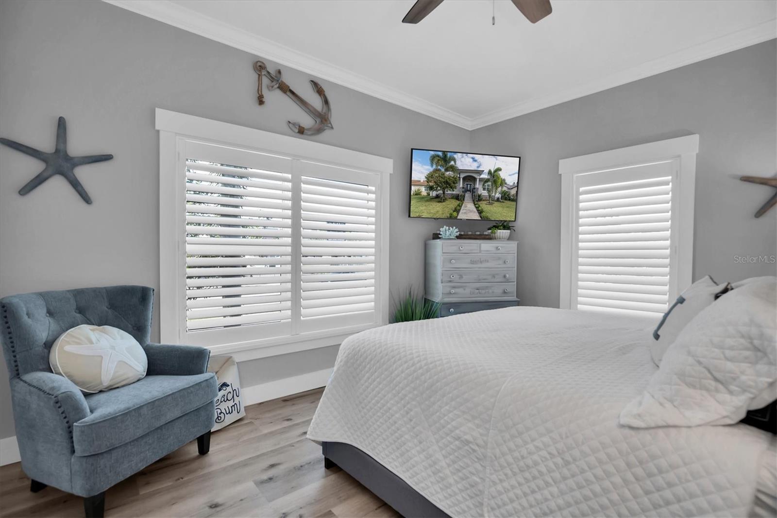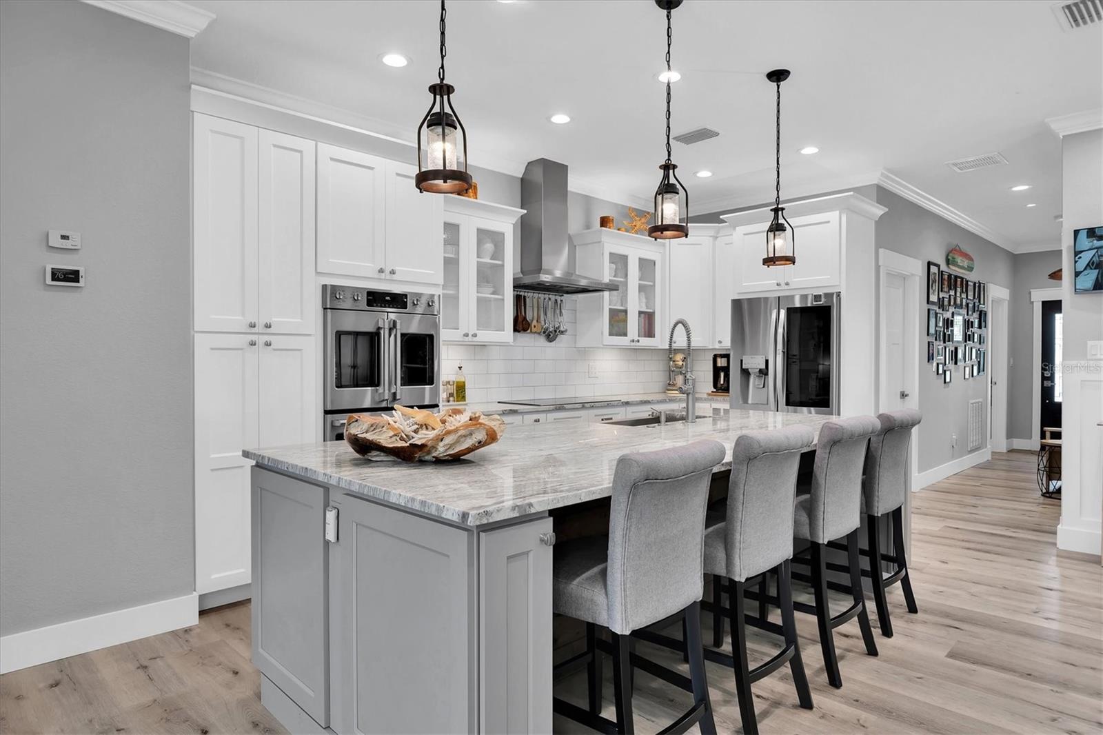 Welcome to your forever Florida Home in St Petersburg, Florida “the sunshine city”. This magnificent home was unaffected by recent hurricanes. It blends luxury and timeless sophistication with the Florida lifestyle. Open concept design with 9 foot ceilings features a chef’s kitchen with a generous island with tons of counter space, solid wood cabinetry, GE Café double oven, Wolf range hood w/ remote blower, Oversized GE cooktop and granite countertops perfect for hosting gatherings and preparing meals. Note extensive custom wood work including coffered and wood tray ceilings, board and batten, wood plantation shutters, solid wood interior doors and crown molding throughout elevating its “wow factor”. A spacious split bedroom floorplan provides both comfort and privacy with every detail thoughtfully designed. The oversized primary suite serves as a private retreat featuring a generous living area perfect for relaxation or a personal study. All block construction featuring foam insulation provides an exceptionally quiet interior. Designed for energy efficiency this property comes equipped with superior insulation, top of the line heat pump, and a huge solar system that will keep utility costs to a minimum. Also included is a whole home portable generator with hookup in the case of power outage. Dedicated, long RV/boat parking area equipped with an electric hookup.Located in desirable North East Park close to Downtown St Pete and within walking distance to Whole Foods, Publix, gym, and shopping.