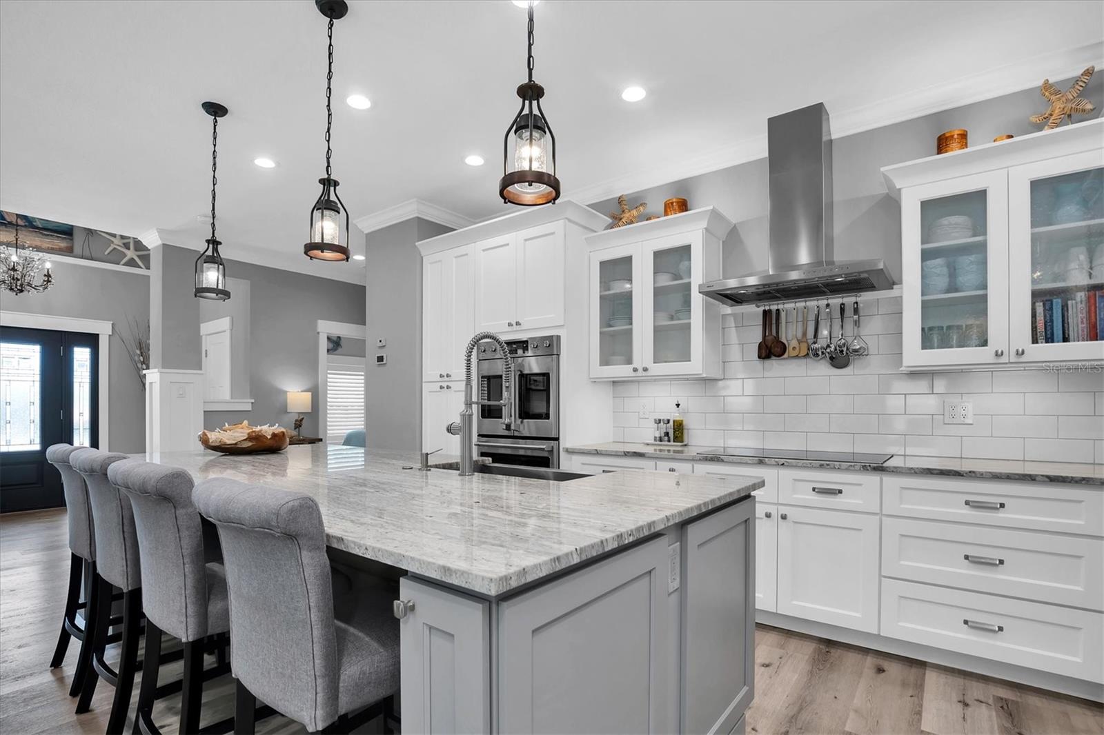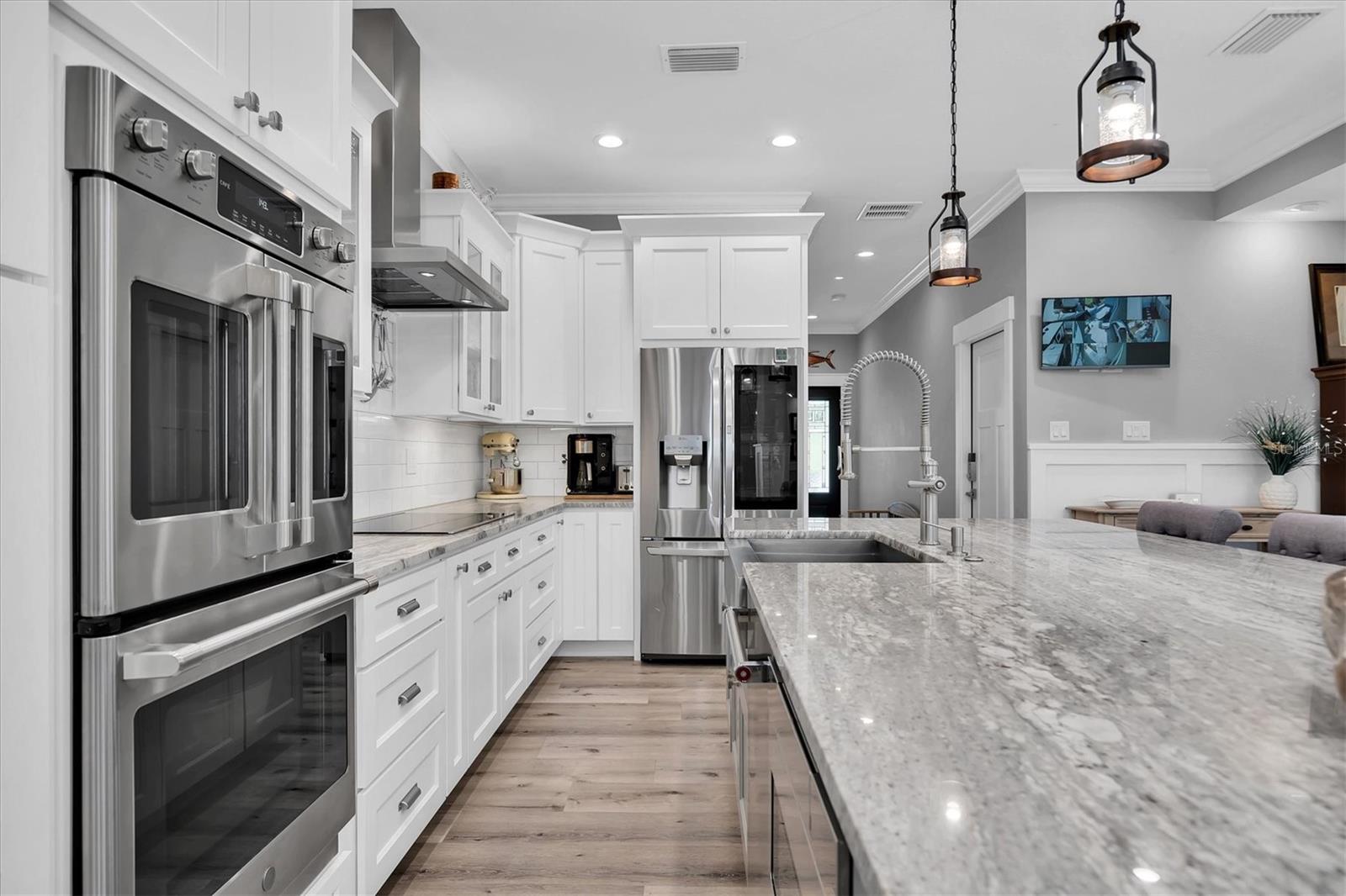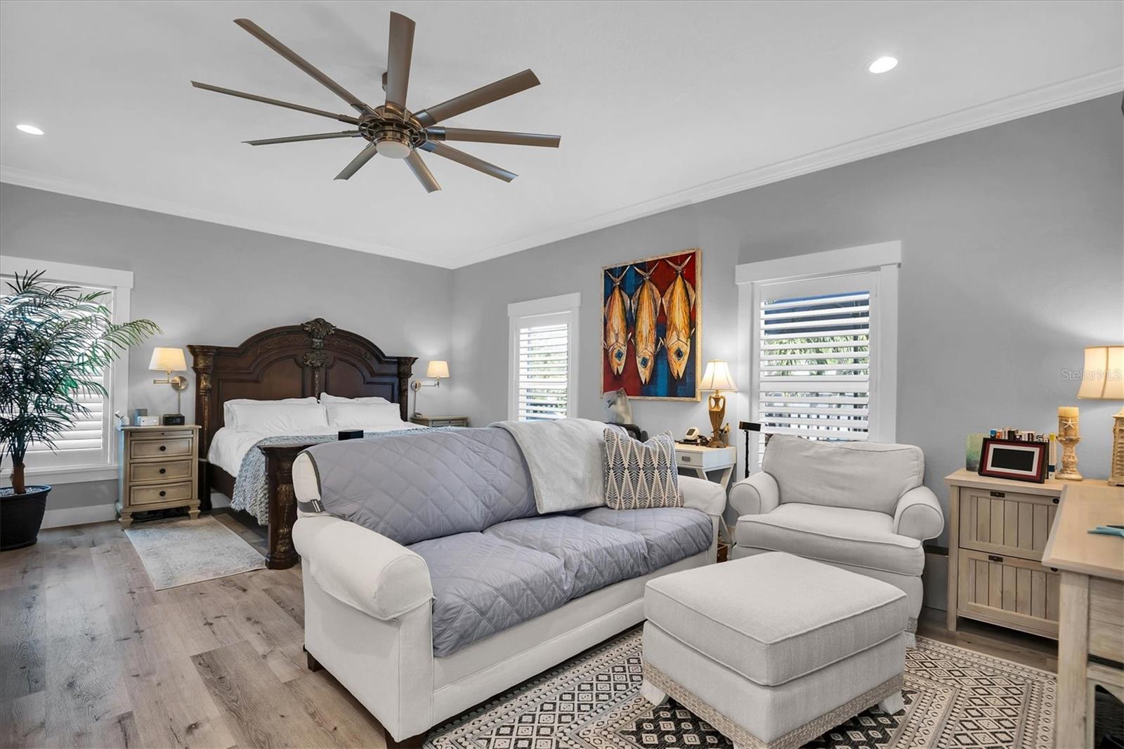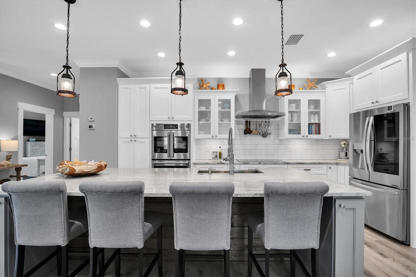 Welcome to your forever Florida Home in St Petersburg, Florida “the sunshine city”. This magnificent home was unaffected by recent hurricanes. It blends luxury and timeless sophistication with the Florida lifestyle. Open concept design with 9 foot ceilings features a chef’s kitchen with a generous island with tons of counter space, solid wood cabinetry, GE Café double oven, Wolf range hood w/ remote blower, Oversized GE cooktop and granite countertops perfect for hosting gatherings and preparing meals. Note extensive custom wood work including coffered and wood tray ceilings, board and batten, wood plantation shutters, solid wood interior doors and crown molding throughout elevating its “wow factor”. A spacious split bedroom floorplan provides both comfort and privacy with every detail thoughtfully designed. The oversized primary suite serves as a private retreat featuring a generous living area perfect for relaxation or a personal study. All block construction featuring foam insulation provides an exceptionally quiet interior. Designed for energy efficiency this property comes equipped with superior insulation, top of the line heat pump, and a huge solar system that will keep utility costs to a minimum. Also included is a whole home portable generator with hookup in the case of power outage. Dedicated, long RV/boat parking area equipped with an electric hookup.Located in desirable North East Park close to Downtown St Pete and within walking distance to Whole Foods, Publix, gym, and shopping.