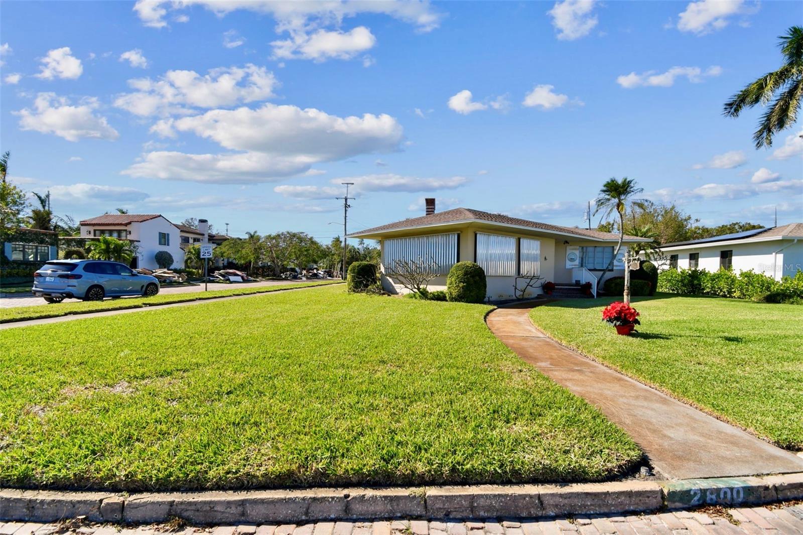 Situated on the most coveted brick street in Saint Petersburg, this oversized corner lot is truly a slice of Paradise. With its prime waterfront location, this .41 acre property offers stunning panoramic views of Coffee Pot Bayou. Sip your morning coffee on the deeded private dock (2021) as you indulge in the sunrise and playful dolphins. The avid boater will appreciate direct access to Tampa Bay and The Gulf of Mexico. Waterfront Coffee Pot Park is only two blocks away, with a playground and plenty of green space for your pets. This oasis provides an unparalleled luxurious lifestyle with an average of 361 days of Sunshine per year! You'll spend evenings strolling on Coffee Pot Boulevard towards vibrant Downtown St. Pete. Explore the iconic St. Pete Pier, Mahaffey Theater, World class restaurants on Beach Drive, shopping, concerts at Janus Landing, University of South Florida, Dali Museum, Tropicana Field, Museum of Fine Arts, Saturday Morning Fresh Market, Chihuly's art exhibition, Vinoy Park, etc. Tampa International Airport is 25 minutes away. St. Pete Beach Voted #1 Beach in the USA is a quick 20 minute drive. Property was affected by Hurricane Helene & being sold AS IS for land value. Bring your architect, designer, contractor and build a jaw dropping exquisite estate.