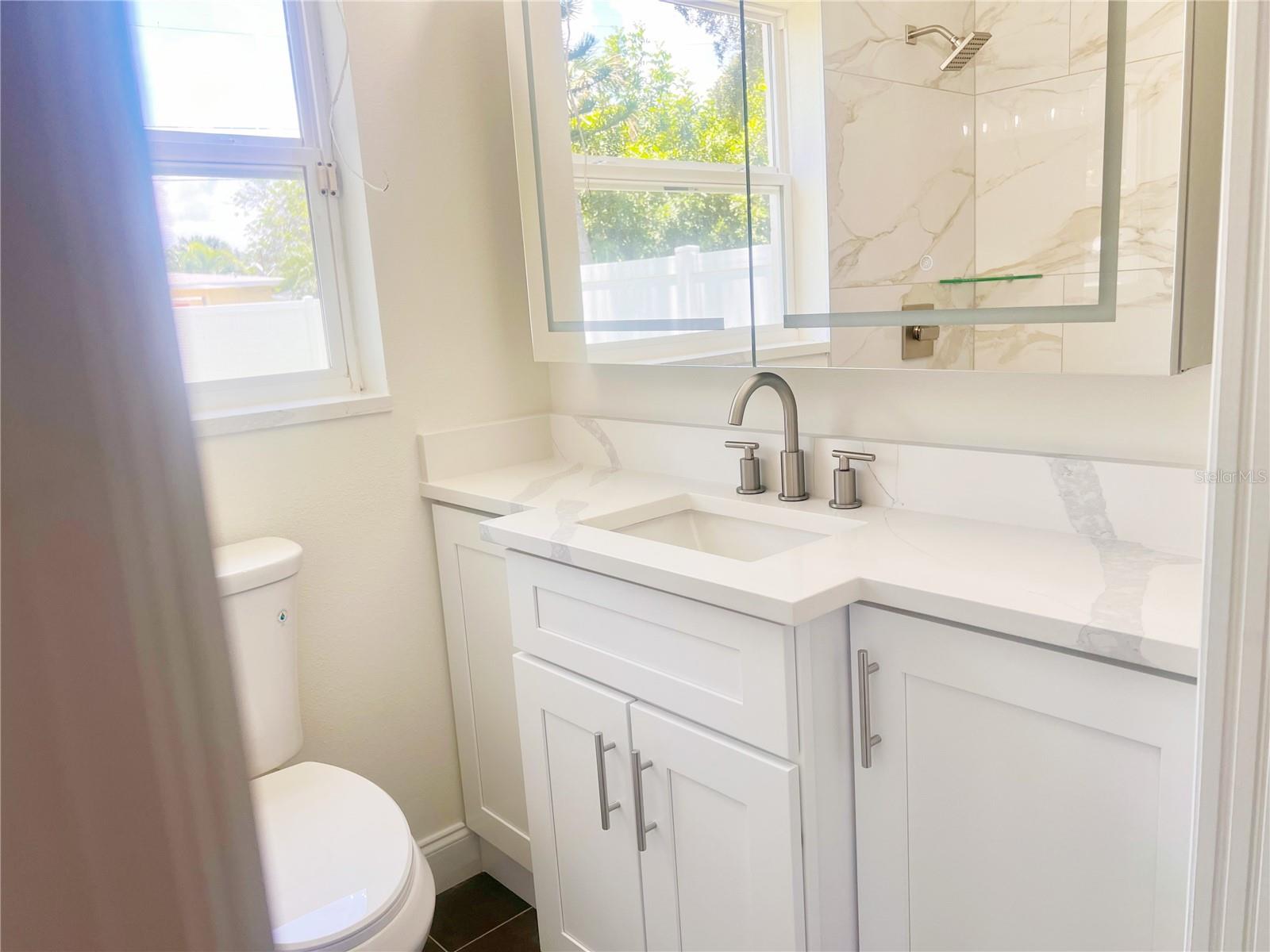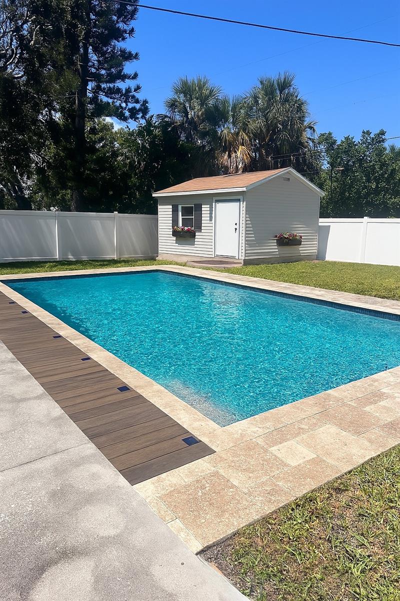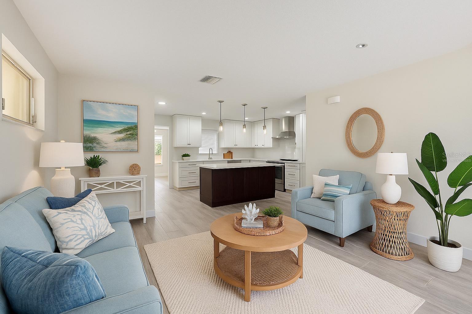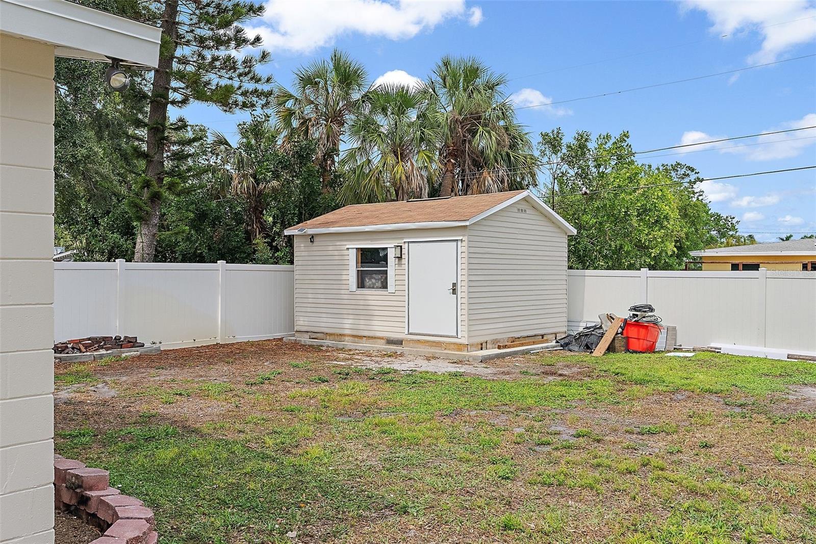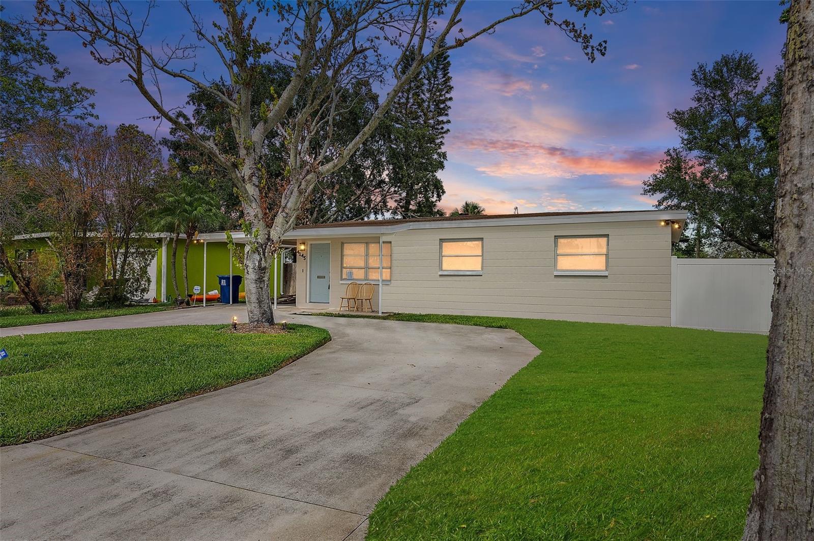 One or more photo(s) has been virtually staged. ABSOLUTELY MUST SEE!! Welcome to one of the most stunningly renovated homes in the neighborhood. The kitchen is elegant with solid wood cabinetry, soft-touch closing doors and drawers, a rich chocolate brown island and modern quartz countertops. The bathrooms are beautifully elegant, featuring large tiles and electric mirrors allowing for multiple tones of lighting. The flooring is wood look ceramic tile in the main living areas and brand new carpet. Nearly 11,000 square foot lot, and an RV hookup in place complete with water, sewer, electric and cable. The lot is fully enclosed with durable white PVC fencing, providing both privacy and security. An irrigation system utilizing reclaimed water ensures that landscaping remains healthy and vibrant year-round. A freestanding shed on a concrete pad offers convenient storage or workspace, while a carport and circular driveway provide abundant parking for vehicles, guests, or recreational needs. The neighborhood is tight knit community and residents enjoy the close proximity to great private and public schools as well as just a few minutes drive to the vibrant downtown St. Pete area. There's plenty of shopping with two Publix grocery stores, a Whole Foods, Fresh Market and Trader Joes all within a close radius.