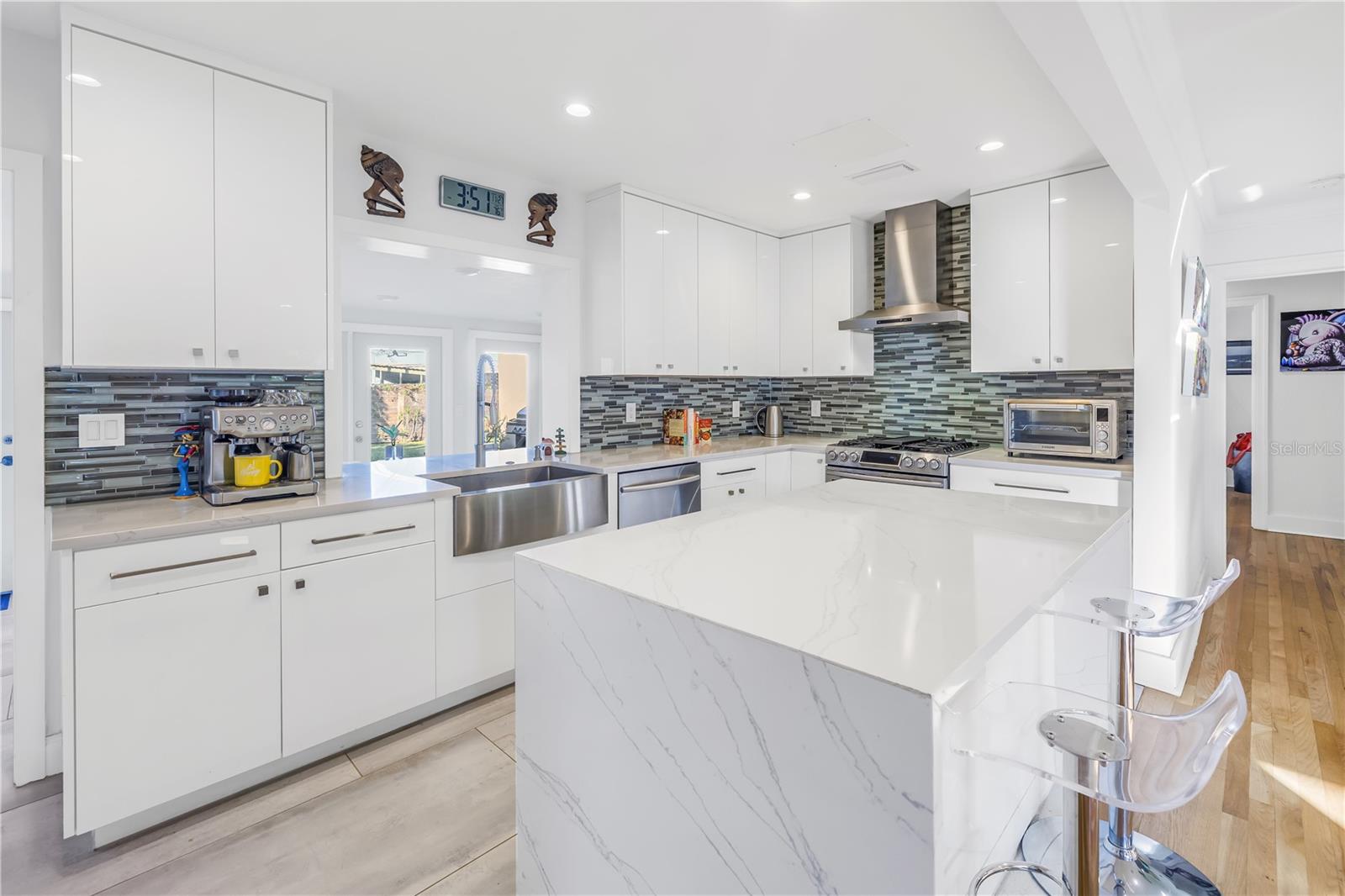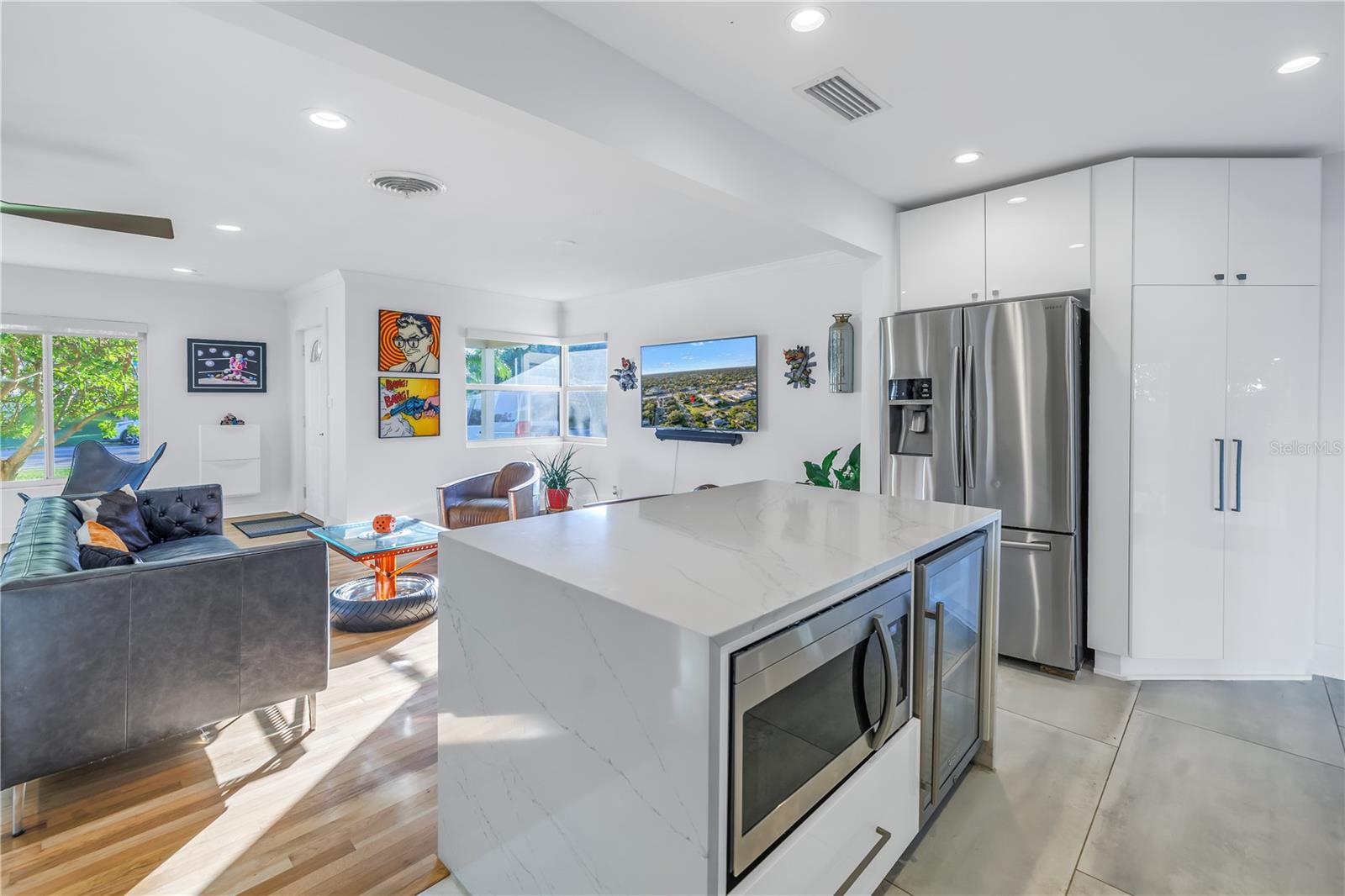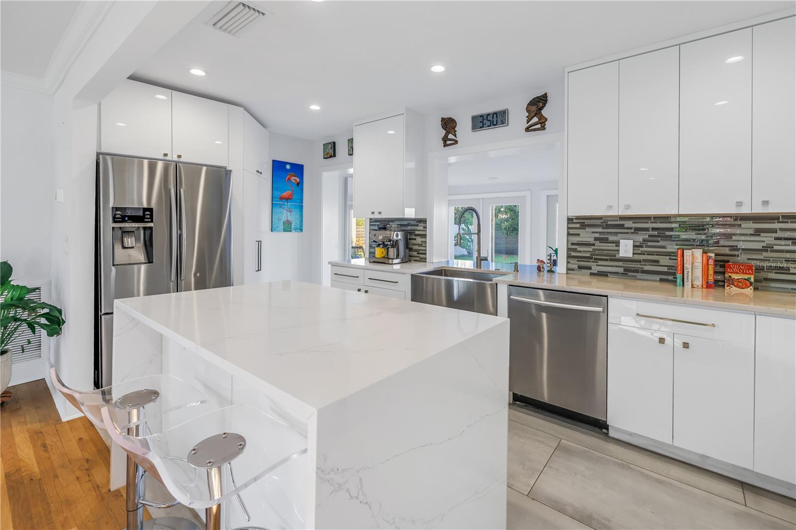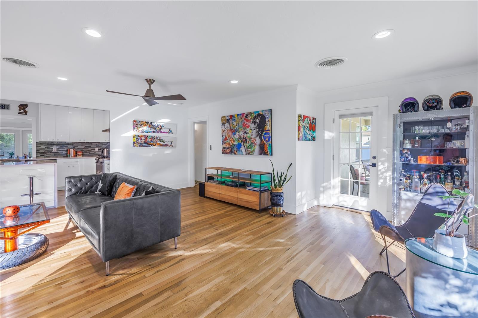 NO FLOOD INSURANCE REQUIRED - HIGH AND DRY. (Sellers moving out). This charming, 2-bedroom, 2-bathroom home in the highly sought-after Coffee Pot Bayou neighborhood is a true gem! Located on the north end of Historic Old Northeast, you're just a few blocks from the serene waters of the inner bay, offering the perfect lifestyle for outdoor enthusiasts. Whether you enjoy kayaking from Coffee Pot Park, biking to the iconic St. Pete Pier, or simply exploring the vibrant local area, this location offers it all. An abundance of shops and restaurants are mere steps away including a hop-skip-jump to Fresh Market AND Trader Joes!! The home itself has been thoughtfully updated, seamlessly blending modern conveniences with classic charm. The master suite features a luxurious rain shower, sleek tile, and a spacious 72-inch soaking tub, providing a relaxing retreat. The original hardwood floors throughout the home add warmth and character, while the guest bathroom showcases unique tilework. For those who love to cook, the chef-inspired kitchen will impress. It boasts hand-crafted cabinetry, a farmhouse sink, premium gas range, top-tier Samsung appliances, and a 36-bottle dual-zone wine fridge. The quartz waterfall island with a built-in microwave is both stylish and functional, creating the perfect culinary haven. Natural light floods the open living space through bay windows, and French doors lead to a private backyard oasis. The outdoor area is an entertainer’s dream, featuring a decked seating area with plenty of space for a pool. The potted planters and outdoor grill are ready to help you embrace the Florida lifestyle. Additional amenities include a full laundry room with LG washer and dryer, a utility sink for added convenience, and a rare attached one-car garage with extra storage. The roof was replaced in 2017, and the HVAC system was updated in 2019, ensuring peace of mind for years to come. With its prime location, modern updates, and eclectic style, this home is priced to sell quickly—don't miss out on the opportunity to make it yours! FLOOD ZONE X.
